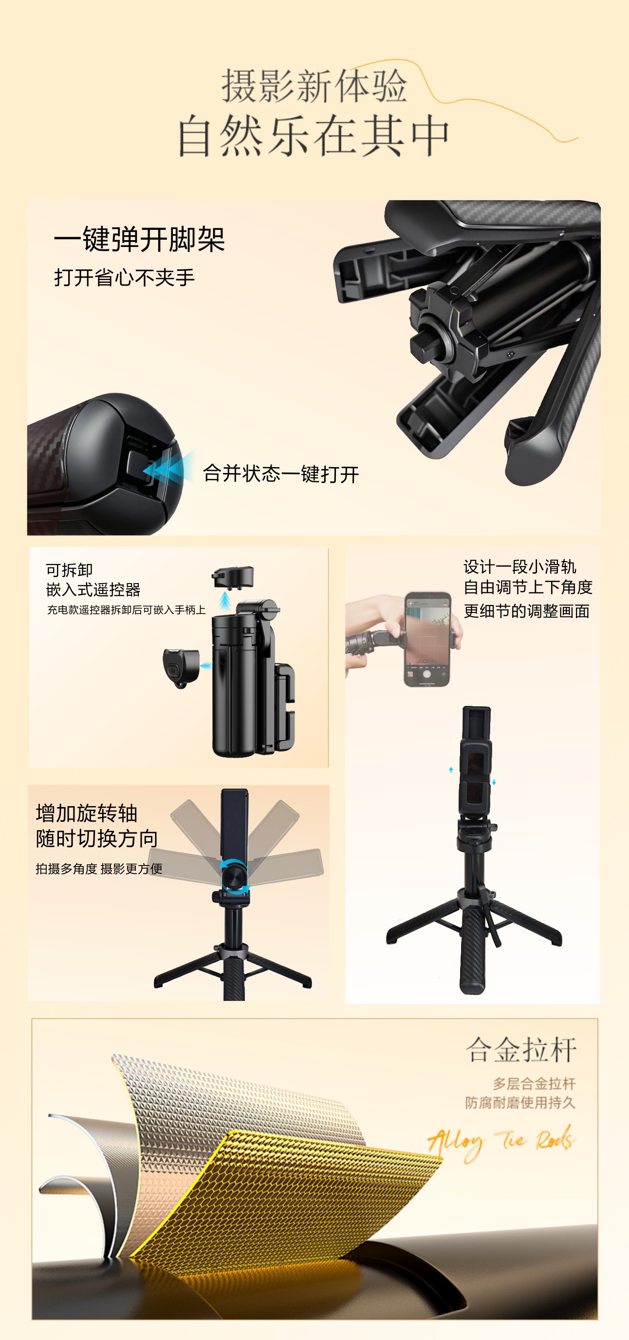 셀카봉 스탠드, 4각 스탠드, 블루투스 촬영 보조기, 핸들, 여행용 휴대용, 휴대폰 촬영, 핸드헬드 라이브 방송, 사진 촬영스토어 가기