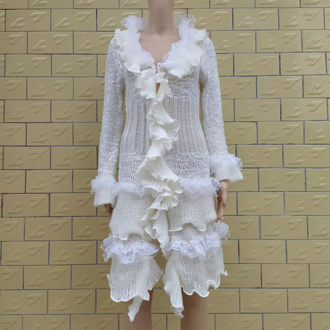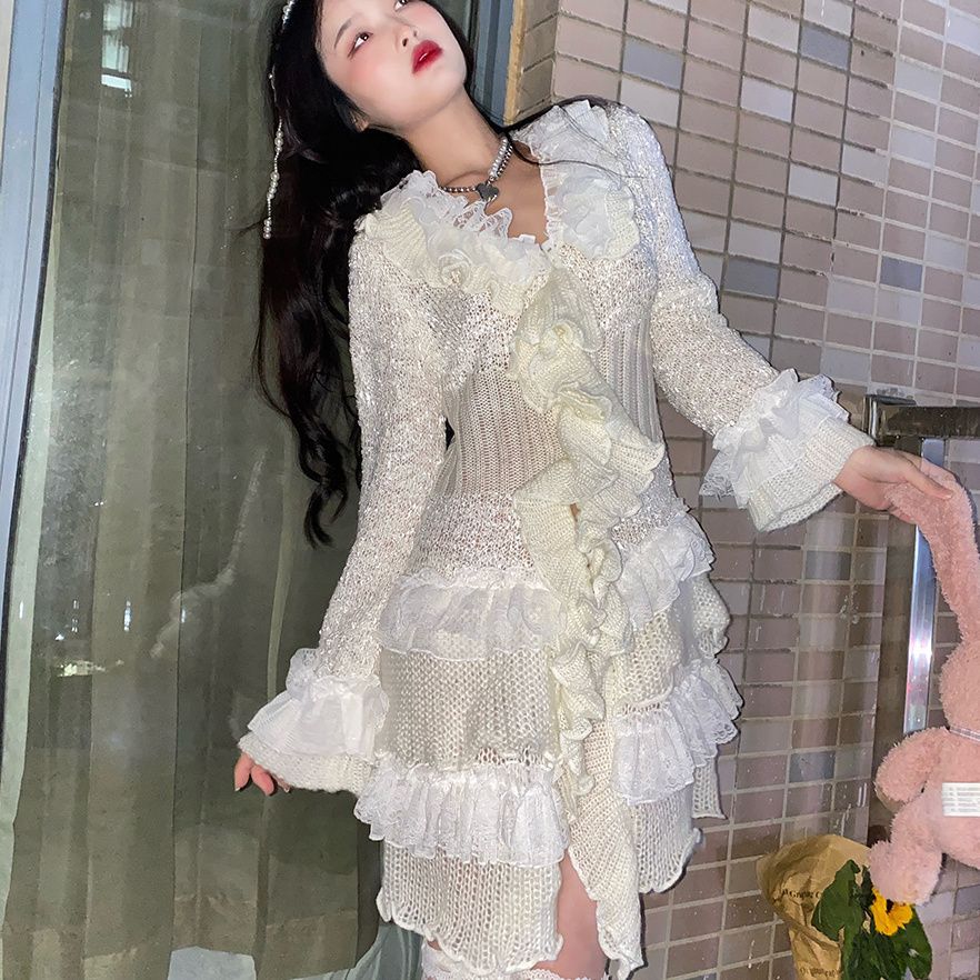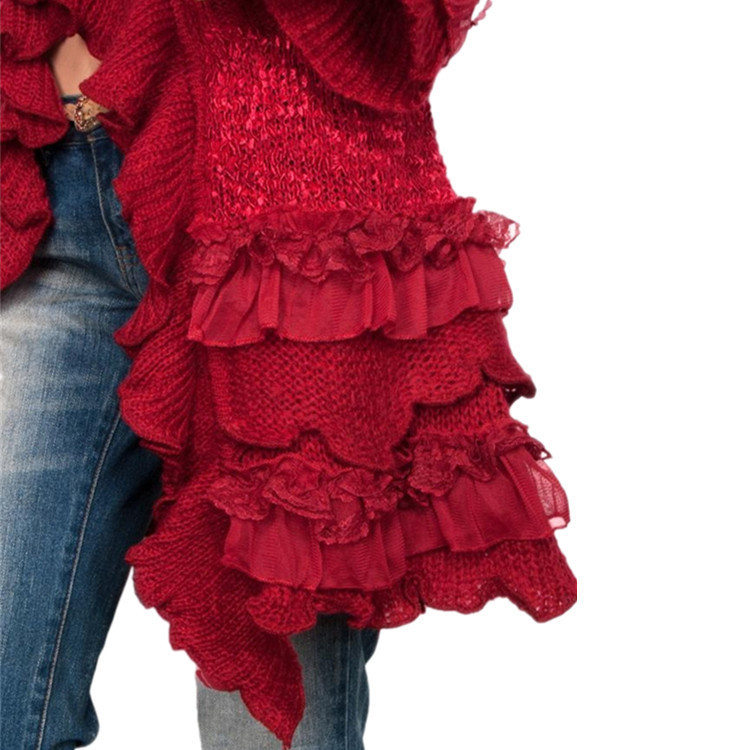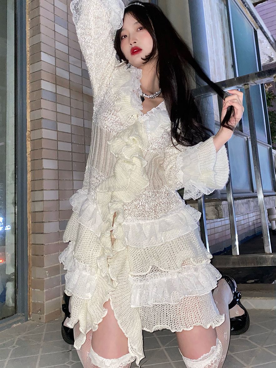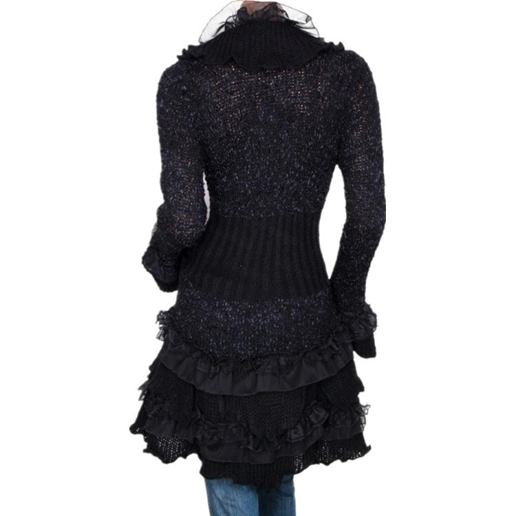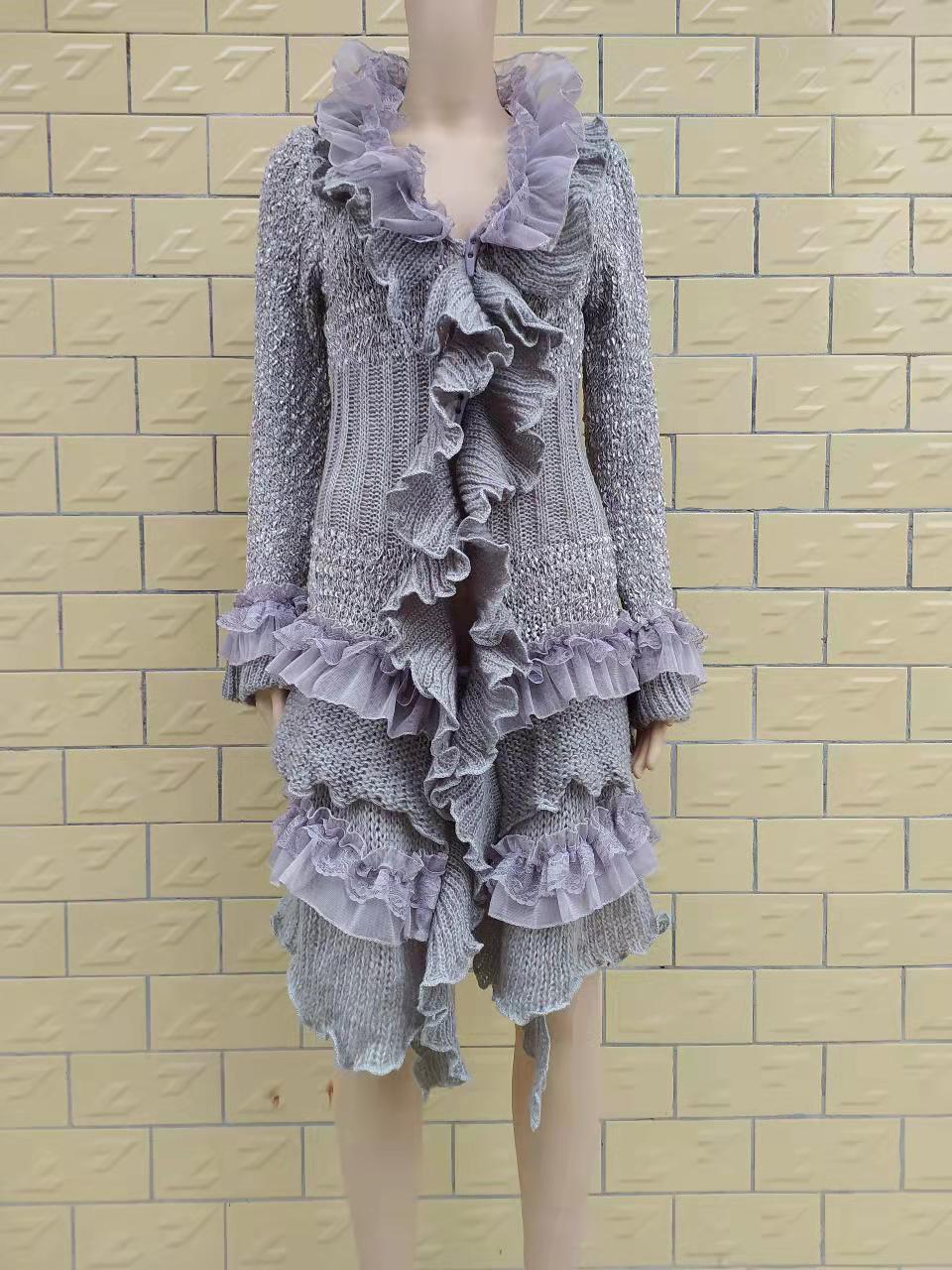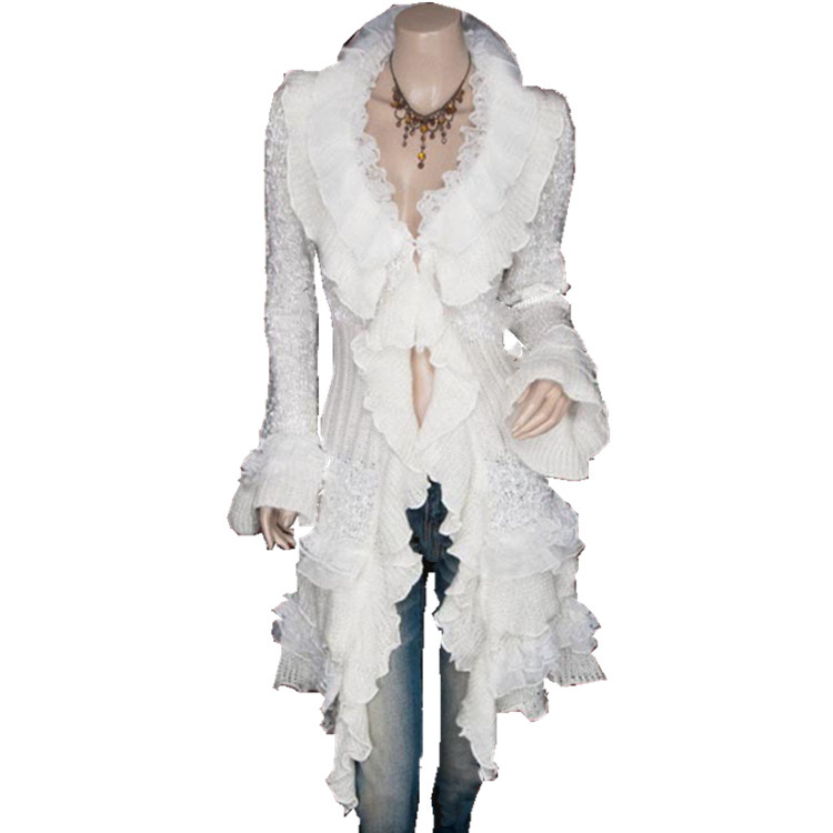 AliExpress 카디건 스웨터 여성 니트웨어 2025 새로운 싱글 브레스트 레이스 트럼펫 슬리브 중간 길이 코트