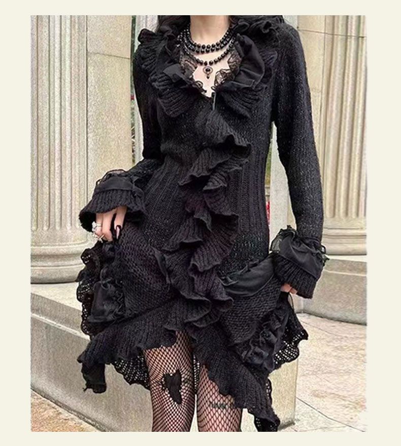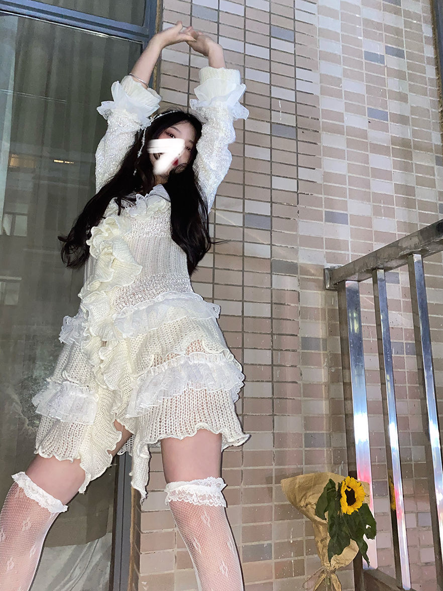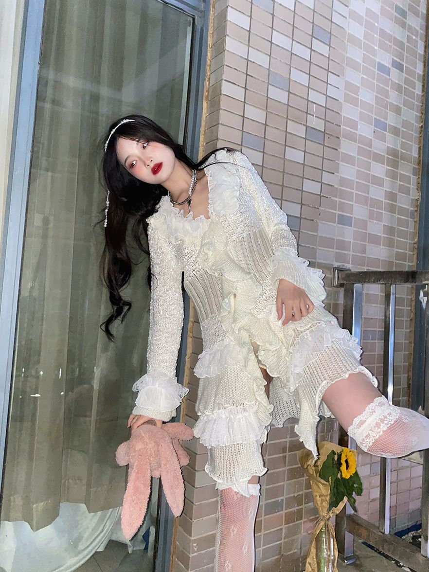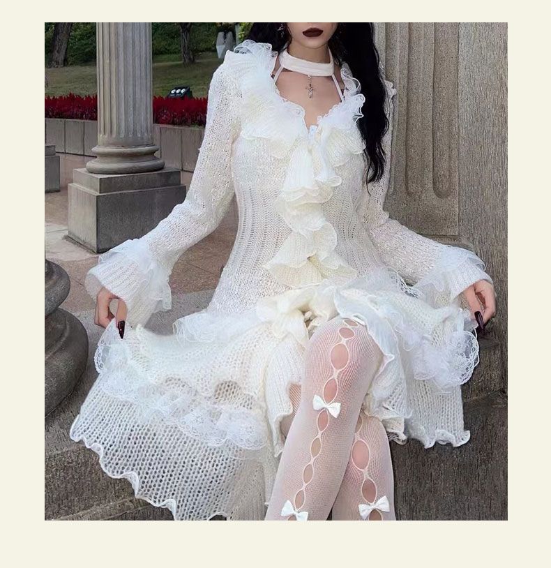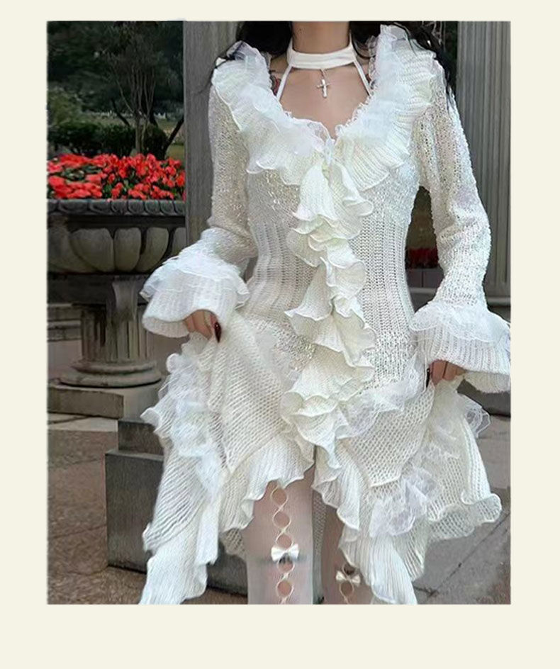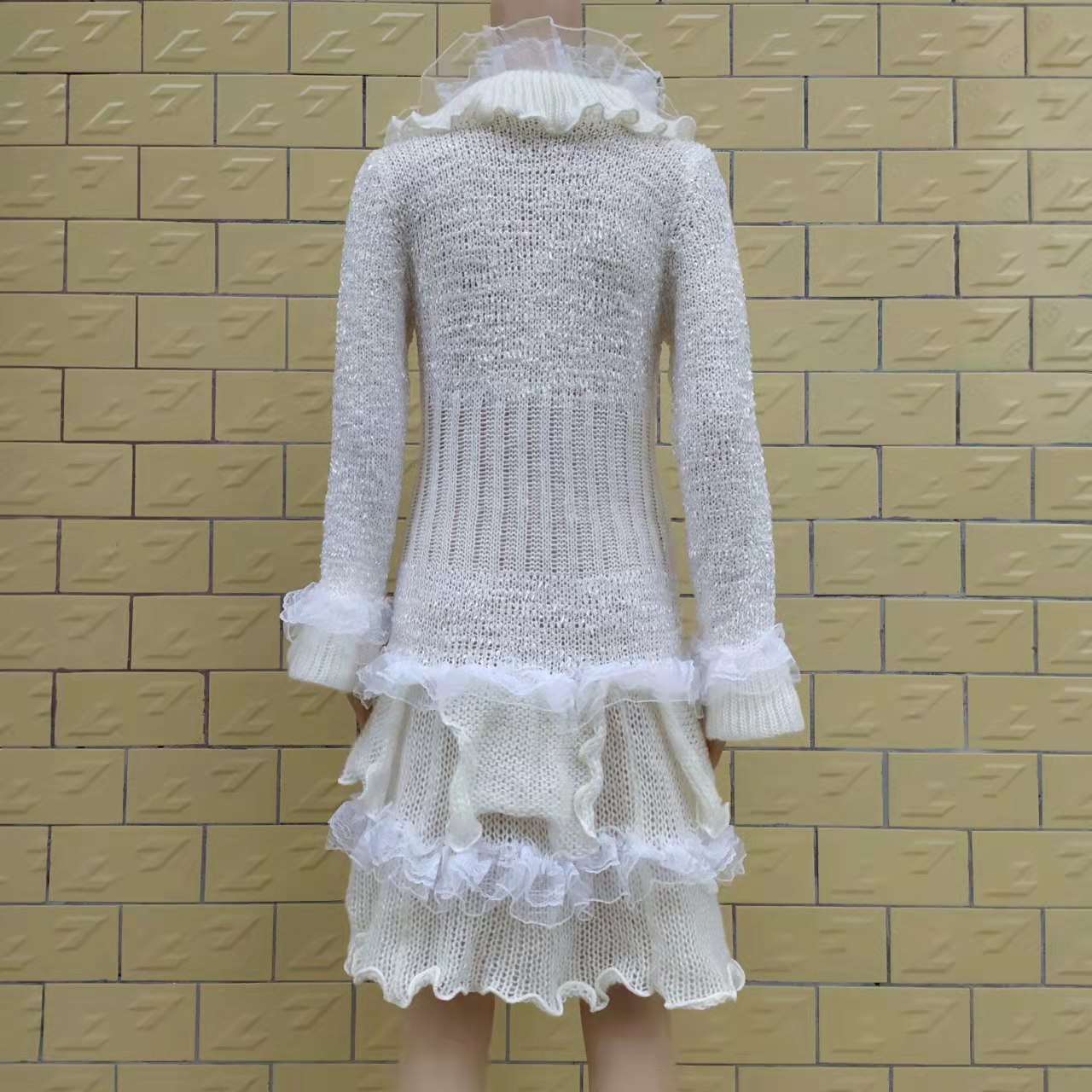 AliExpress 카디건 스웨터 여성 니트웨어 2025 새로운 싱글 브레스트 레이스 트럼펫 슬리브 중간 길이 코트