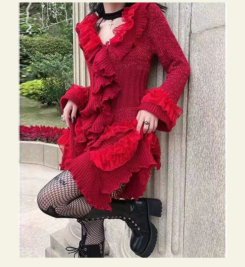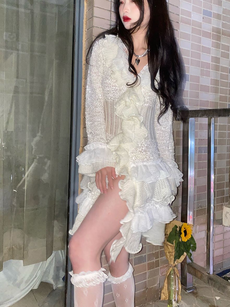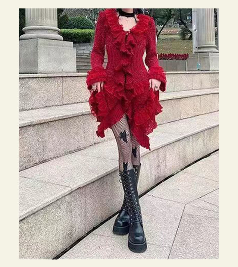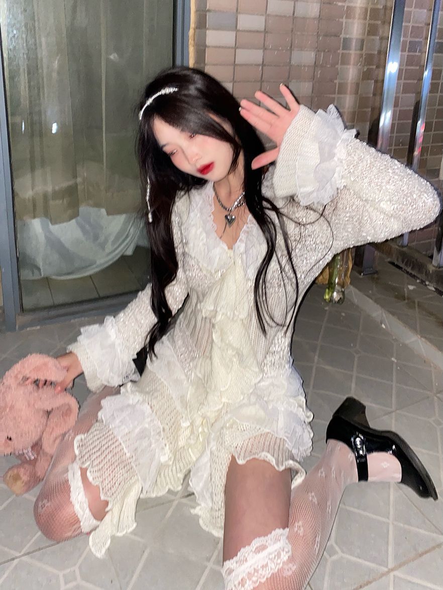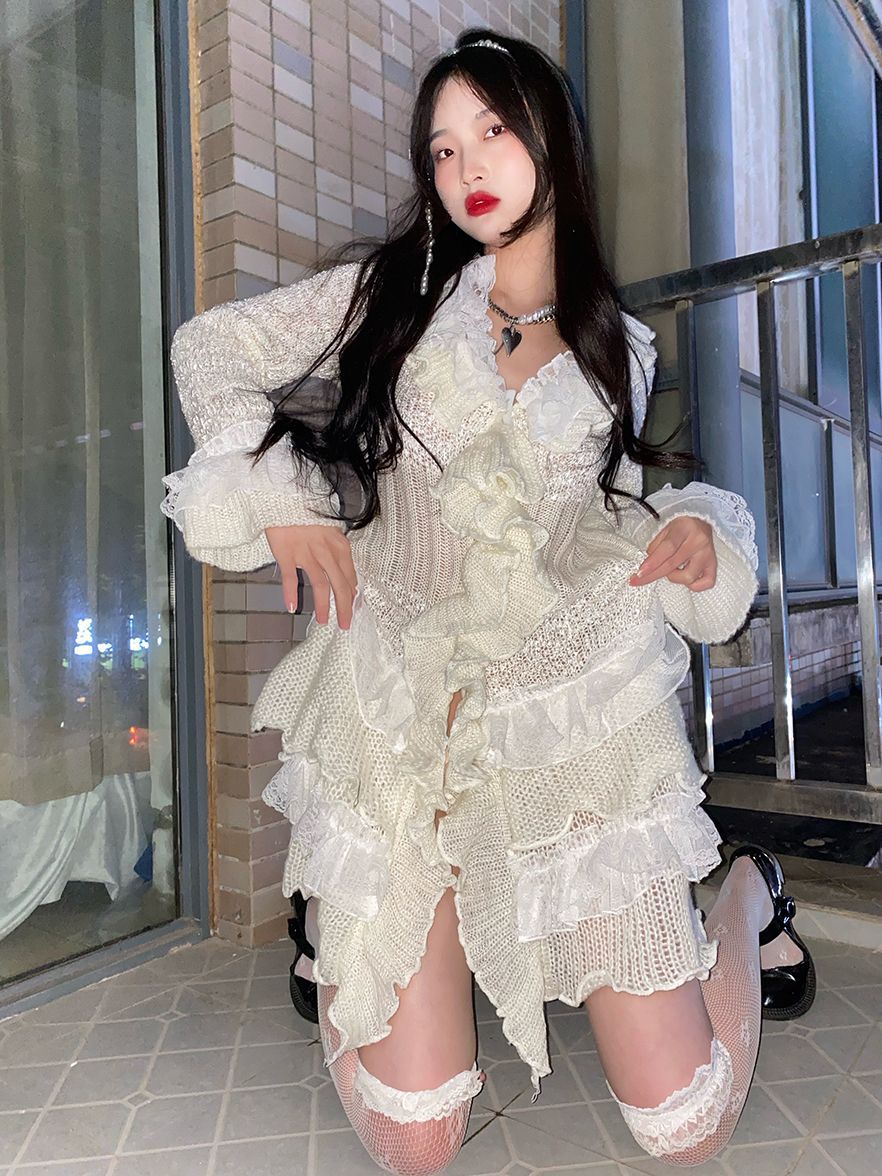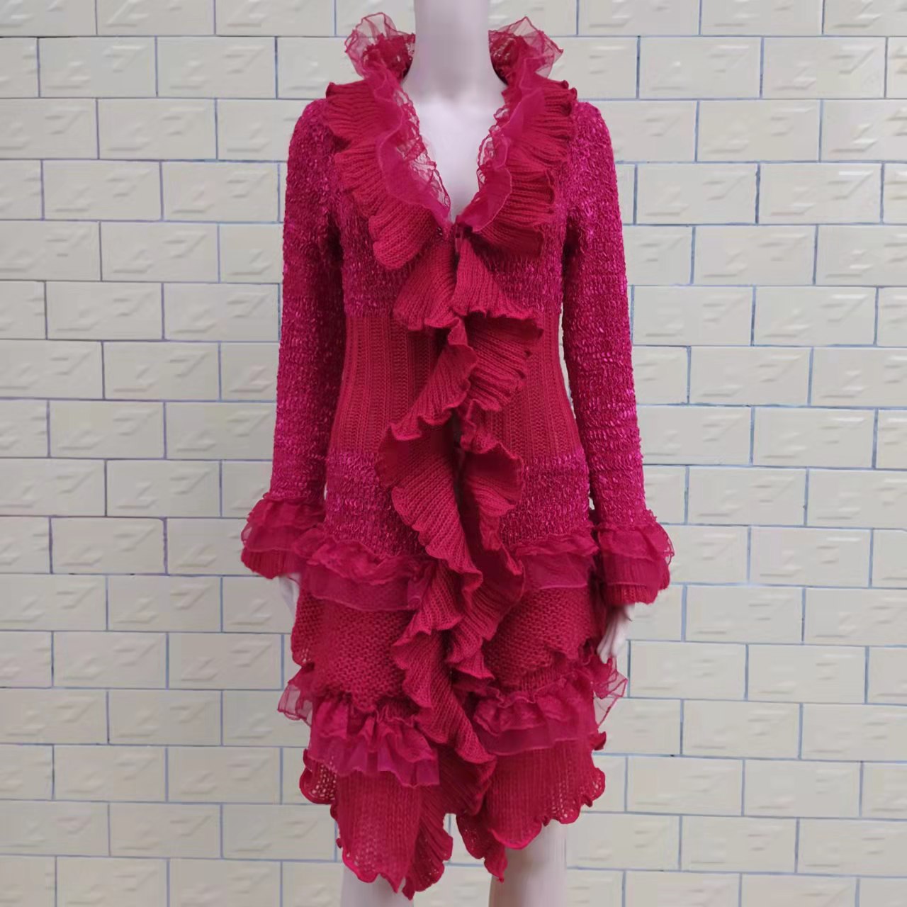 AliExpress 카디건 스웨터 여성 니트웨어 2025 새로운 싱글 브레스트 레이스 트럼펫 슬리브 중간 길이 코트스토어 가기