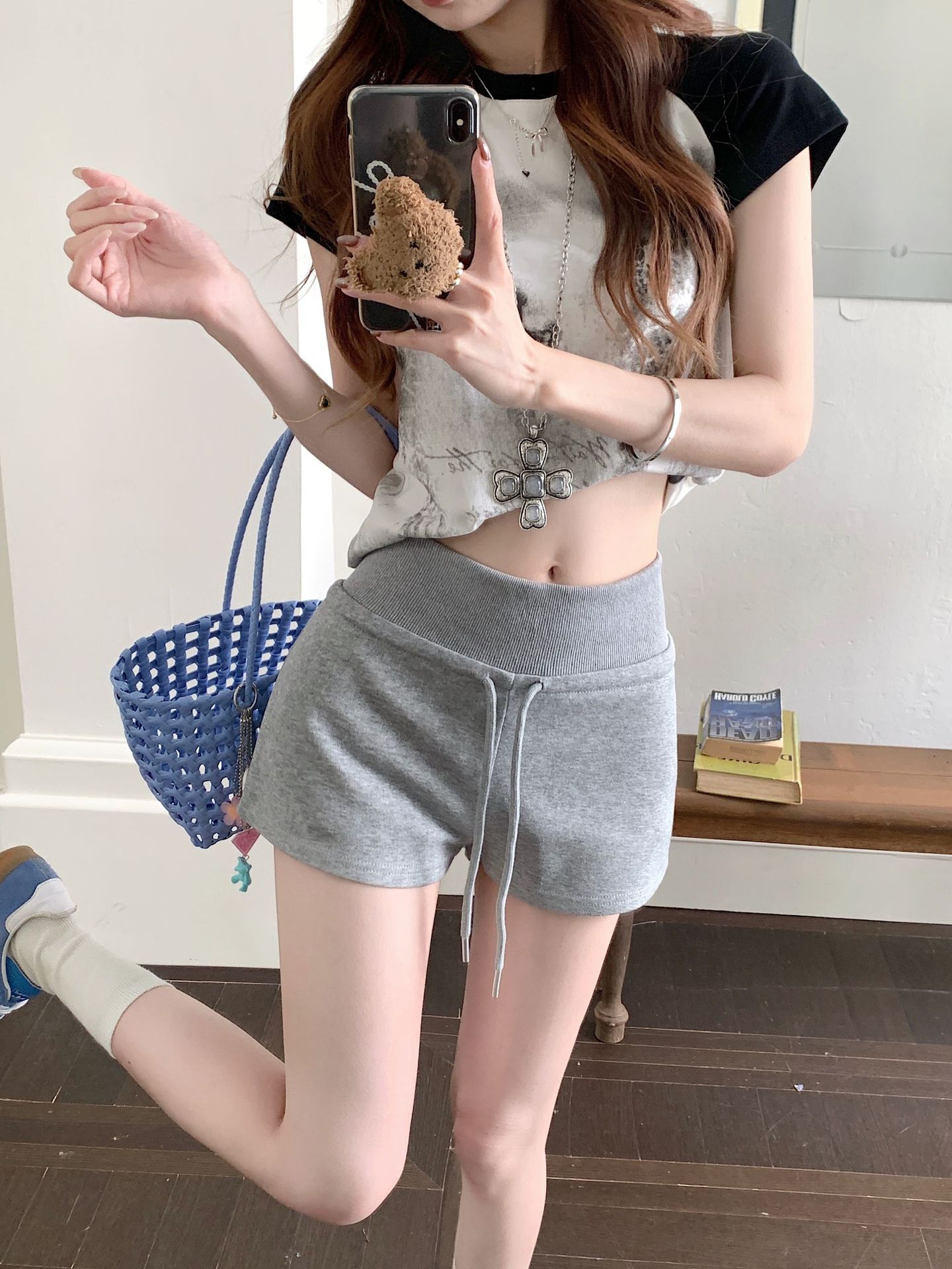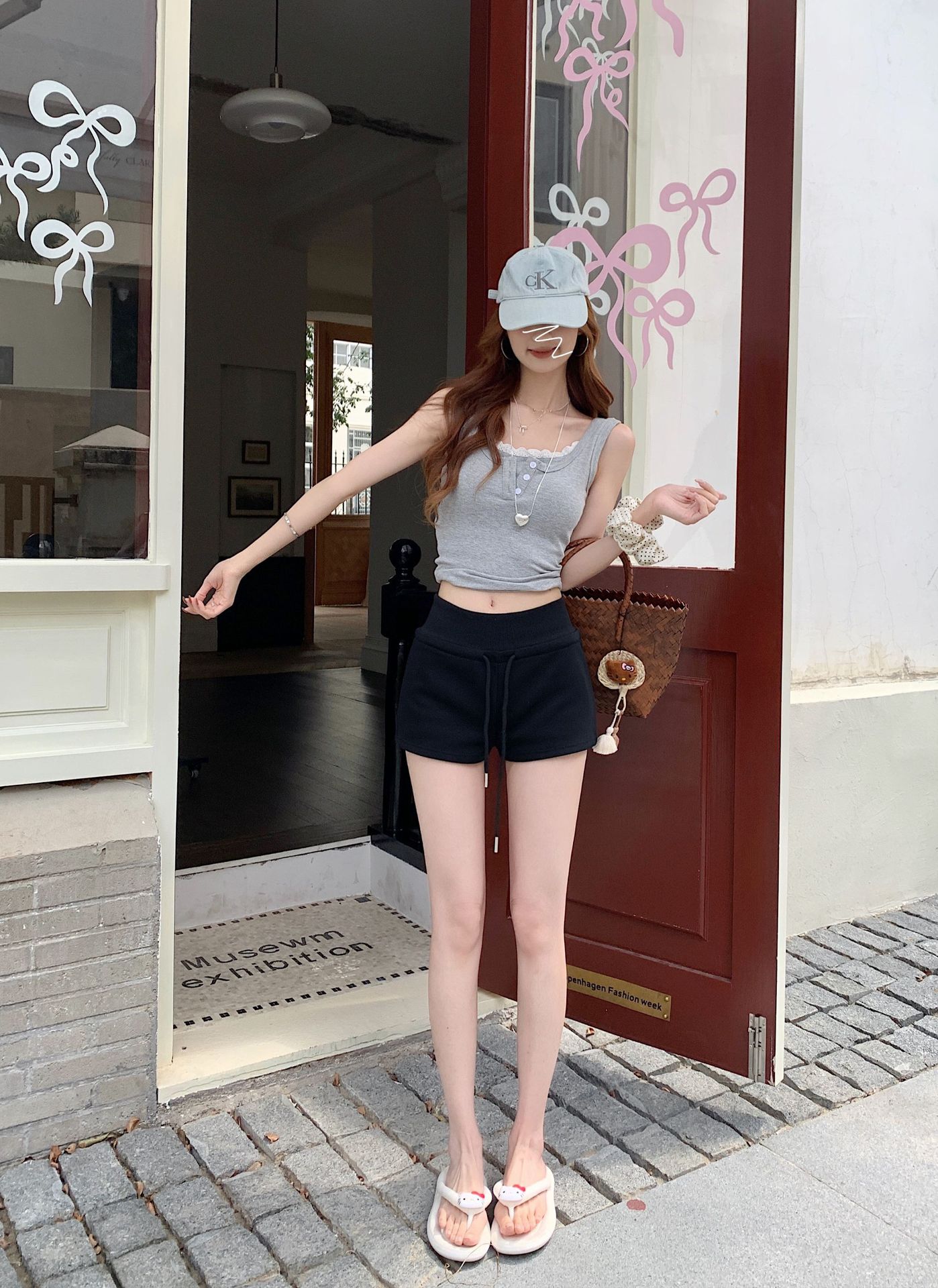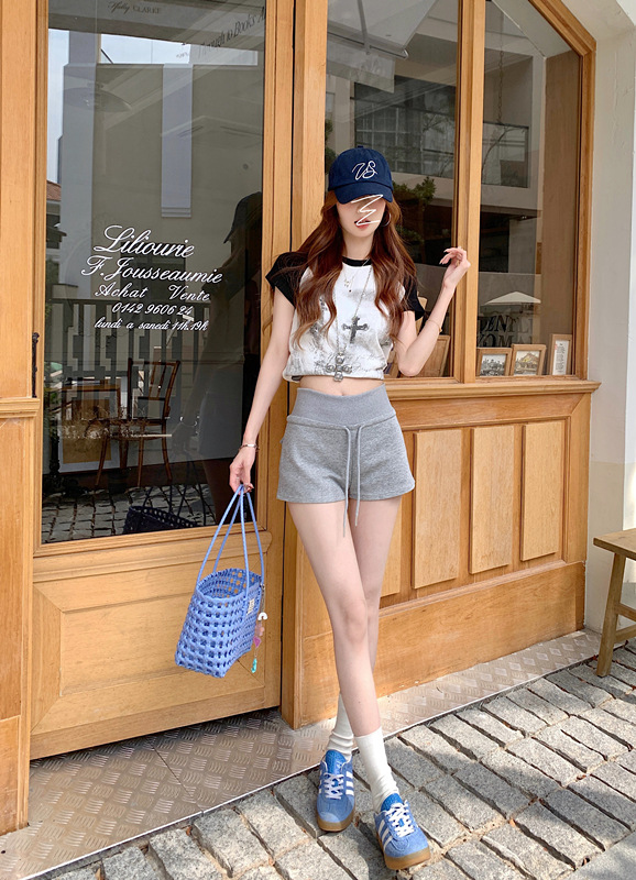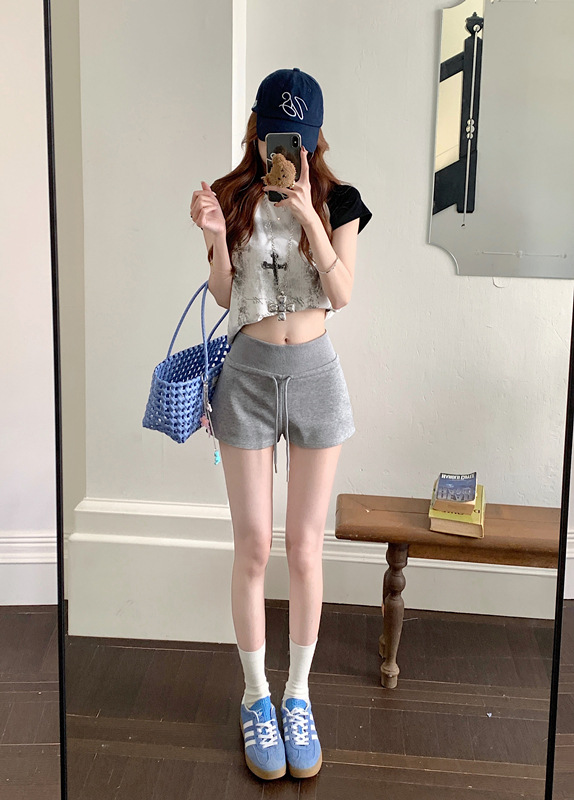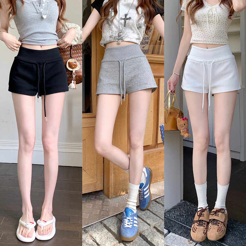 TikTok 품질 블랙 캐주얼 스포츠 반바지 여성 여름 2025 새로운 미국 스타일 하이 웨이스트 슬림 핏 A 자형 핫 팬츠스토어 가기