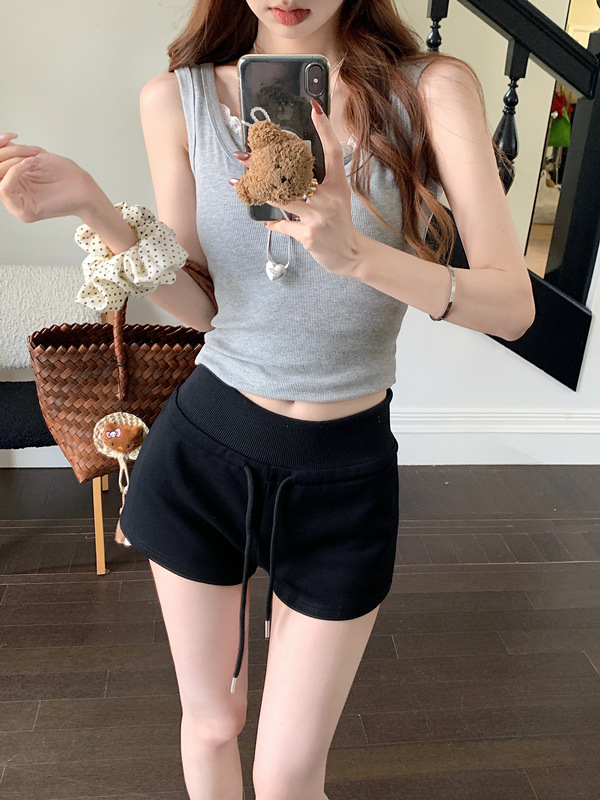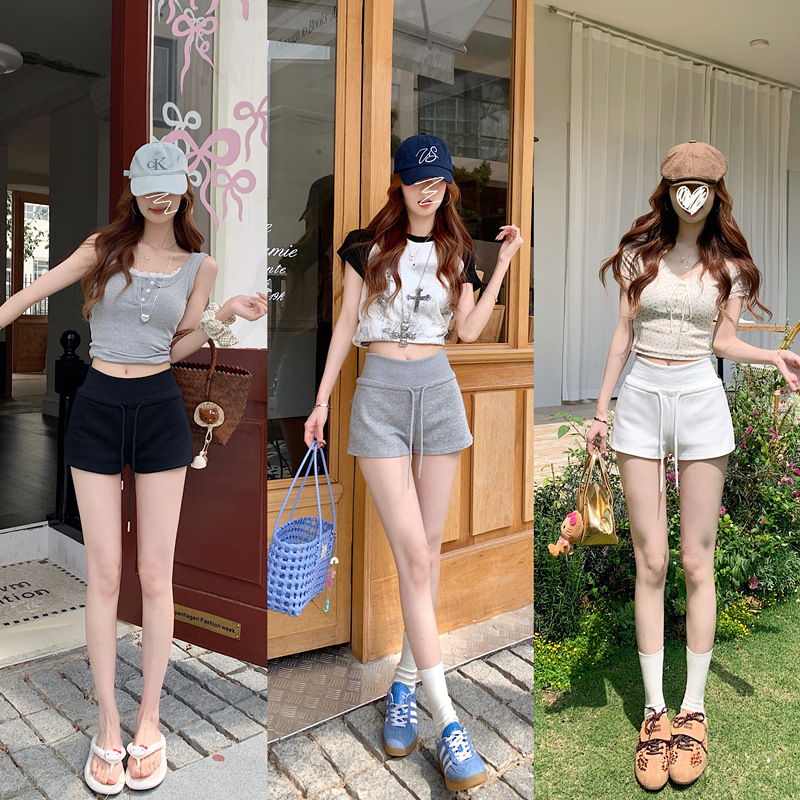 TikTok 품질 블랙 캐주얼 스포츠 반바지 여성 여름 2025 새로운 미국 스타일 하이 웨이스트 슬림 핏 A 자형 핫 팬츠