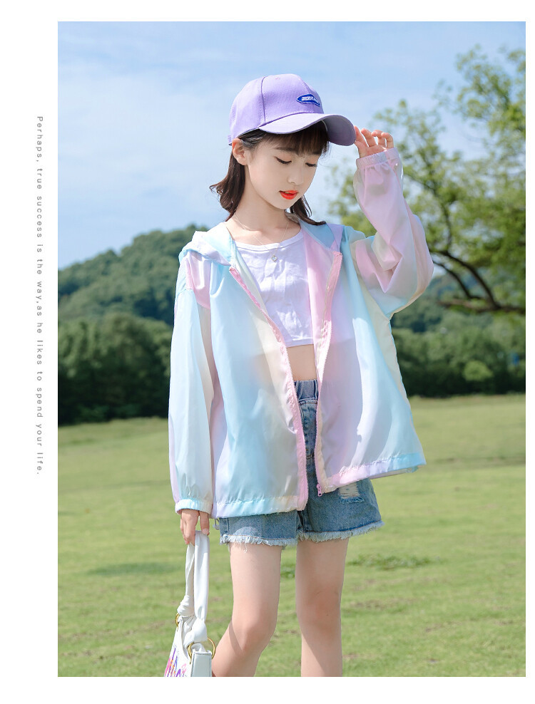 2025 새로운 여름 소녀의 선 스크린 옷 어린이 피부 옷 경량 통기성 어린 소녀의 얼음 실크 여름 코트