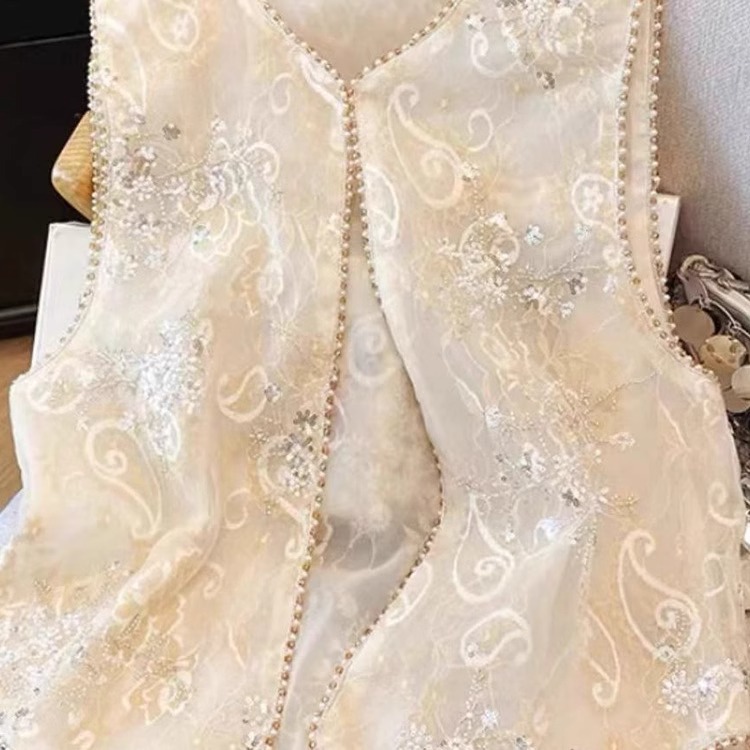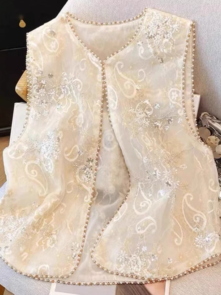 새로운 중국 스타일 국가 스타일 자수 구슬 조끼 여자 2025 봄 새로운 우아한 느슨한 올 매치 쁘띠 탑스토어 가기