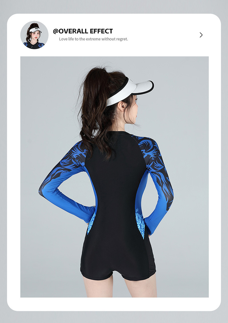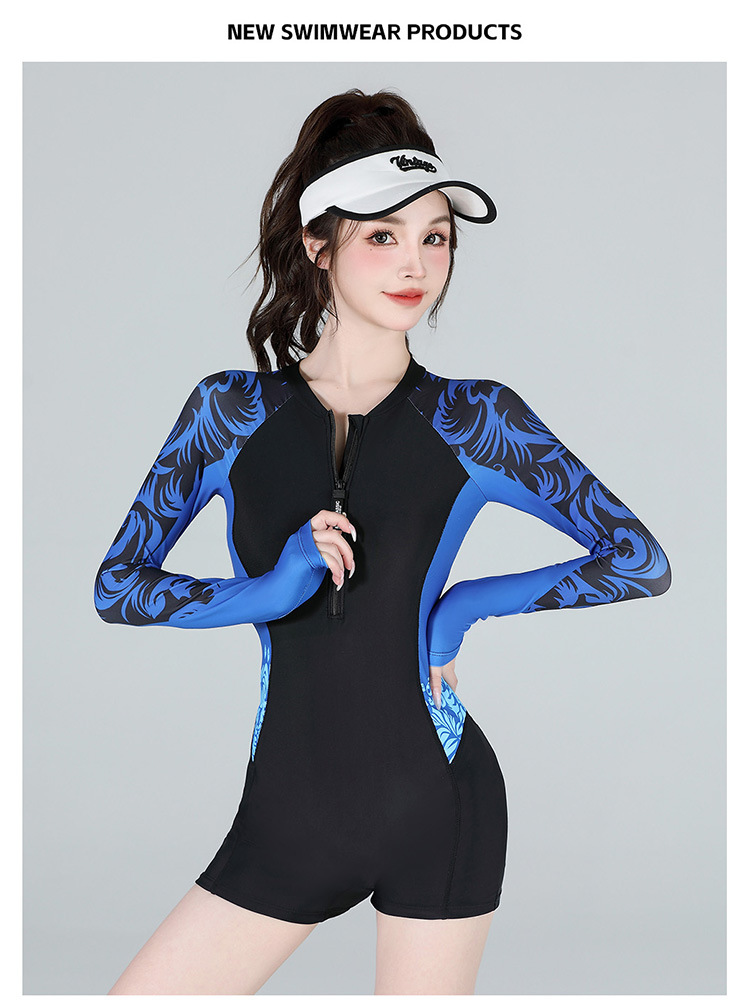 25 년 새로운 긴 소매 원피스 수영복 여성 전문 플랫 앵글 선 스크린 수영복 보수적 인 서핑 잠수복 수영복