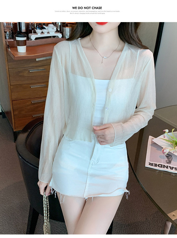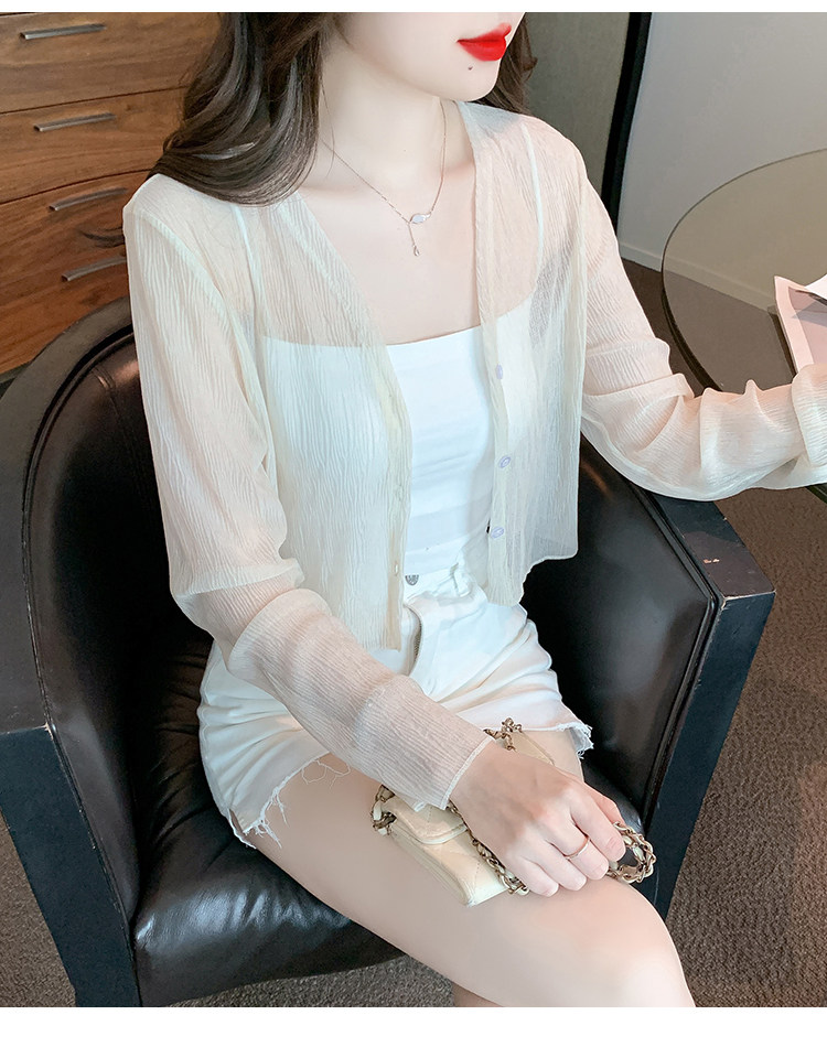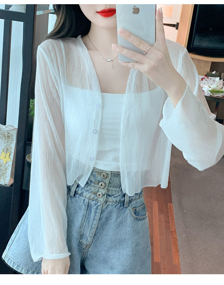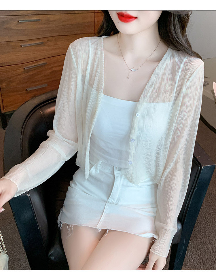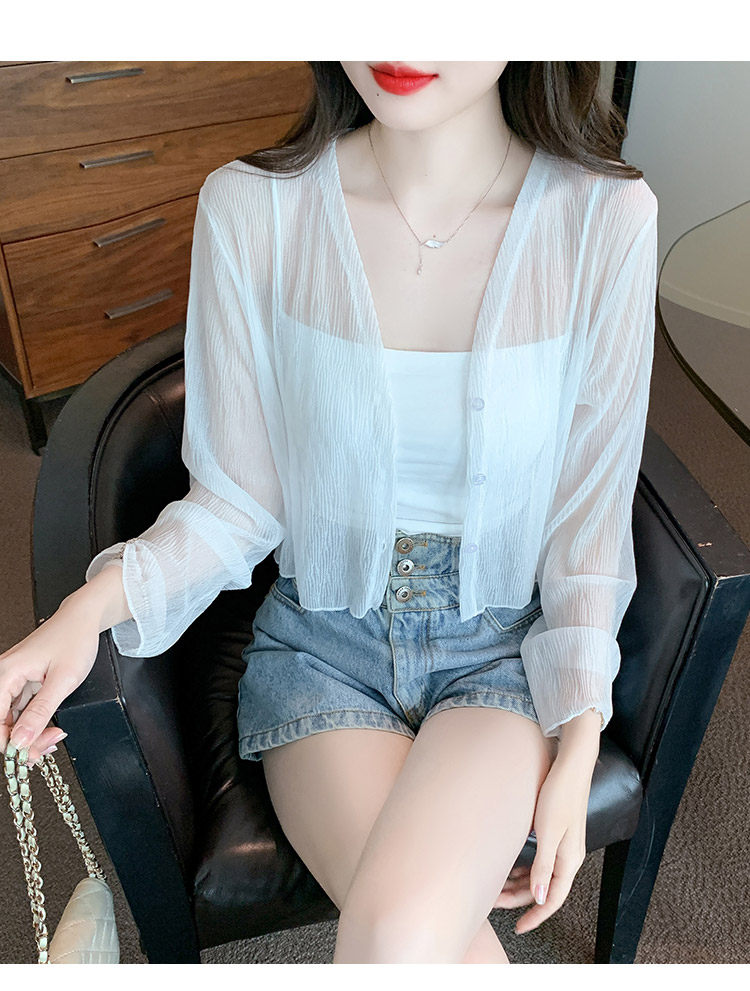 여름 여성용 화이트 아이스 실크 자외선 차단 의류, 얇은 쉬폰 가디건, 서스펜더 스커트, 블라우스, 숄, 숏 코트스토어 가기