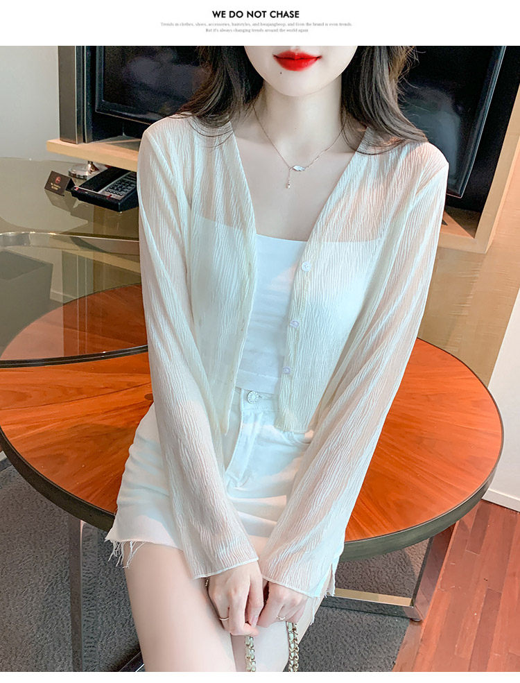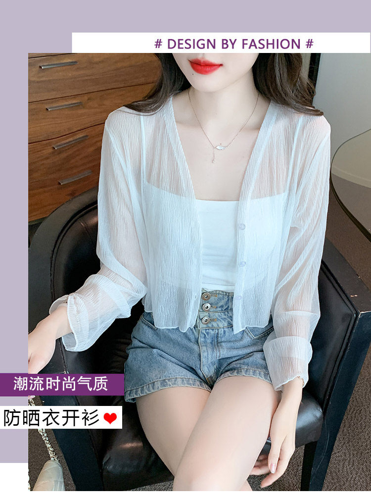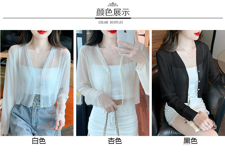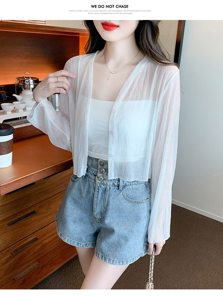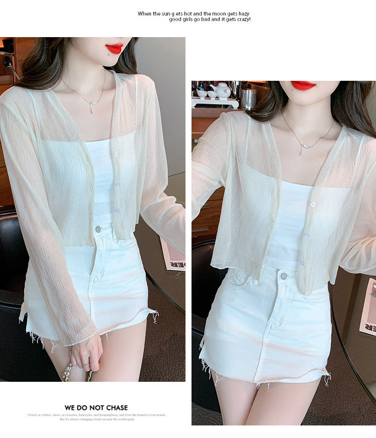여름 여성용 화이트 아이스 실크 자외선 차단 의류, 얇은 쉬폰 가디건, 서스펜더 스커트, 블라우스, 숄, 숏 코트스토어 가기
