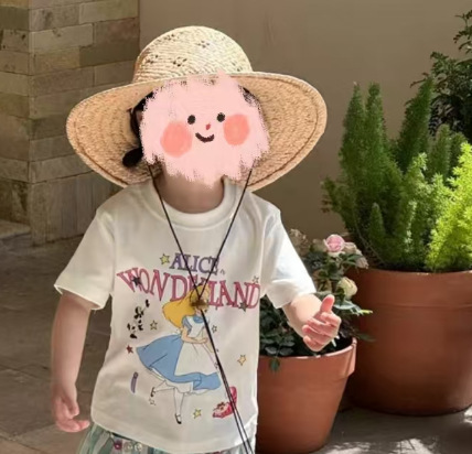 [클리어아웃 특가! 반품 불가] 한국 스타일 아동복 소녀 만화 프린트 흰색 반팔 티셔츠 탑 스트라이프스토어 가기