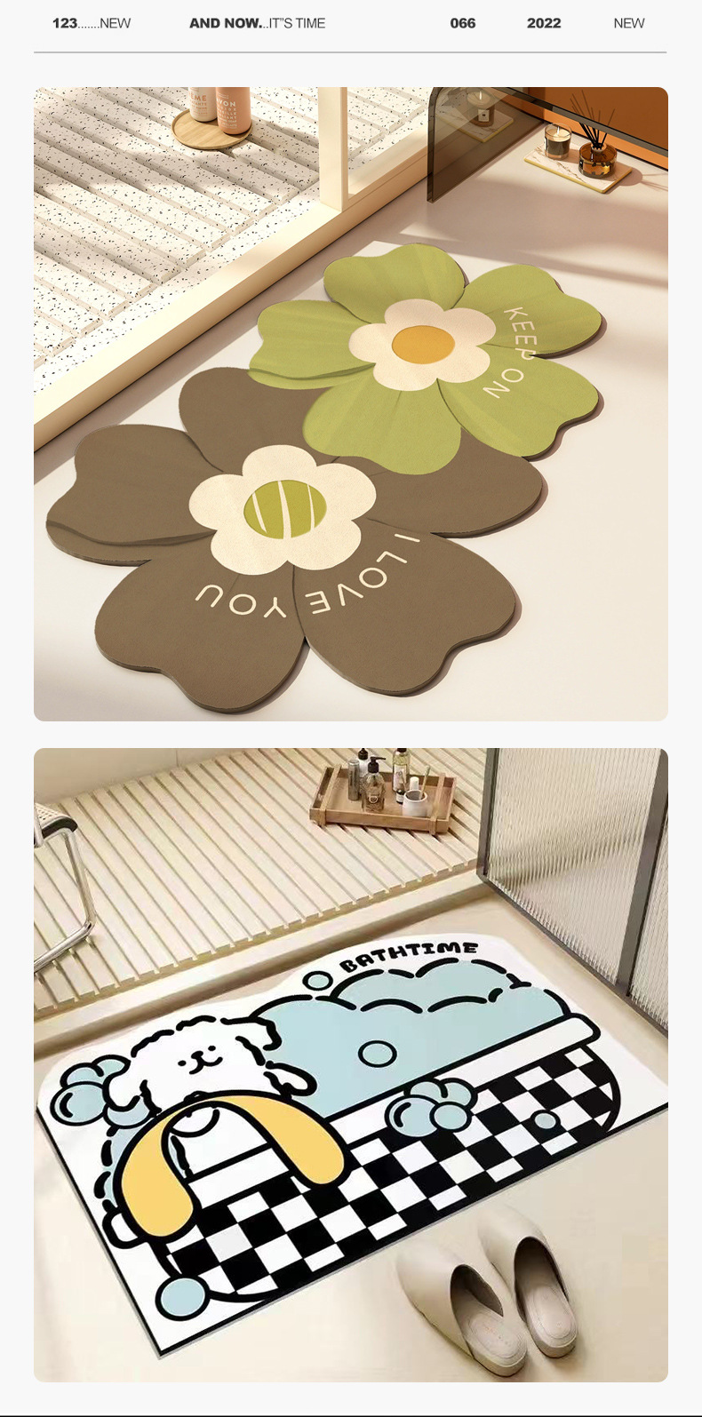 새로운 다중 사양 특수 모양의 바닥 매트, 세척 가능하고 관리가 쉬운 만화 욕실 바닥 매트, 미끄럼 방지 부드러운 규조토 진흙 바닥 매트
