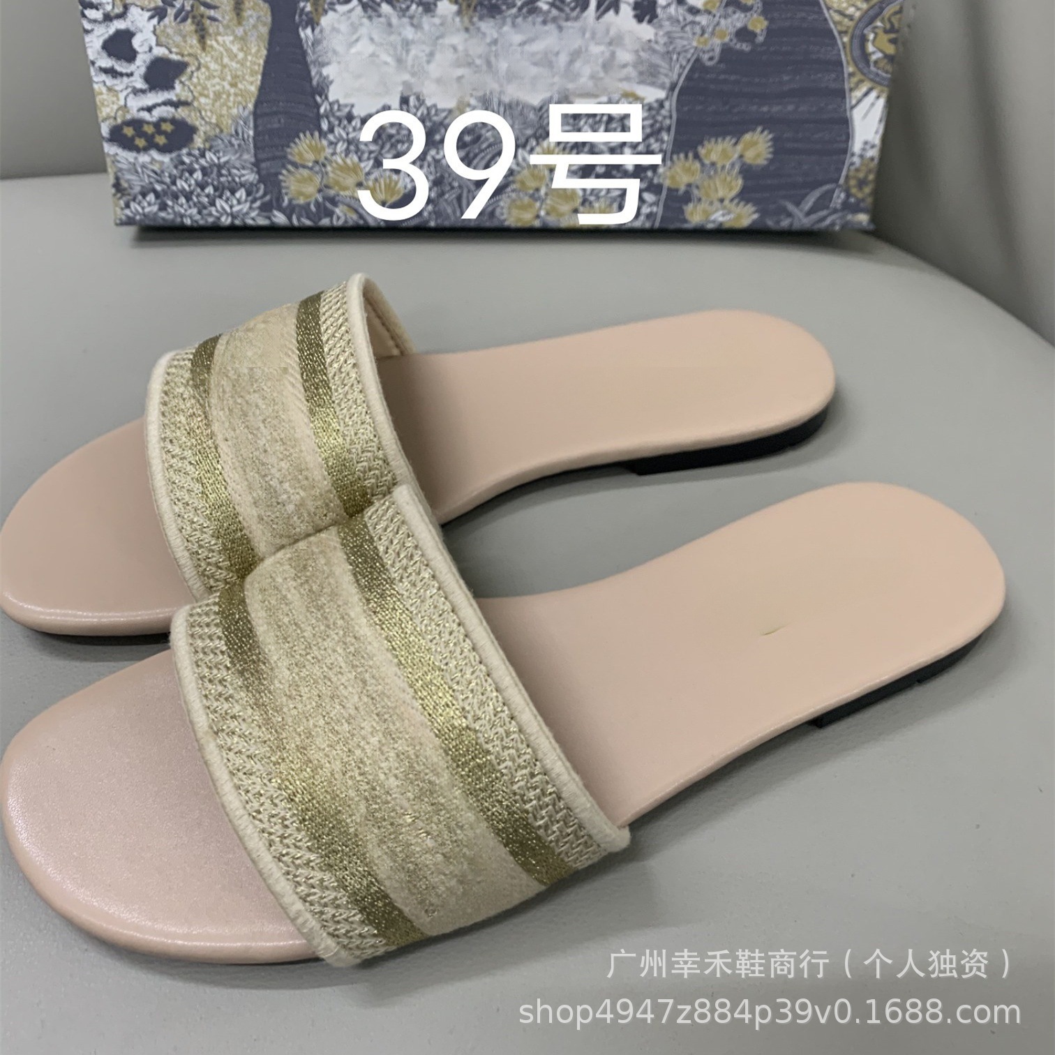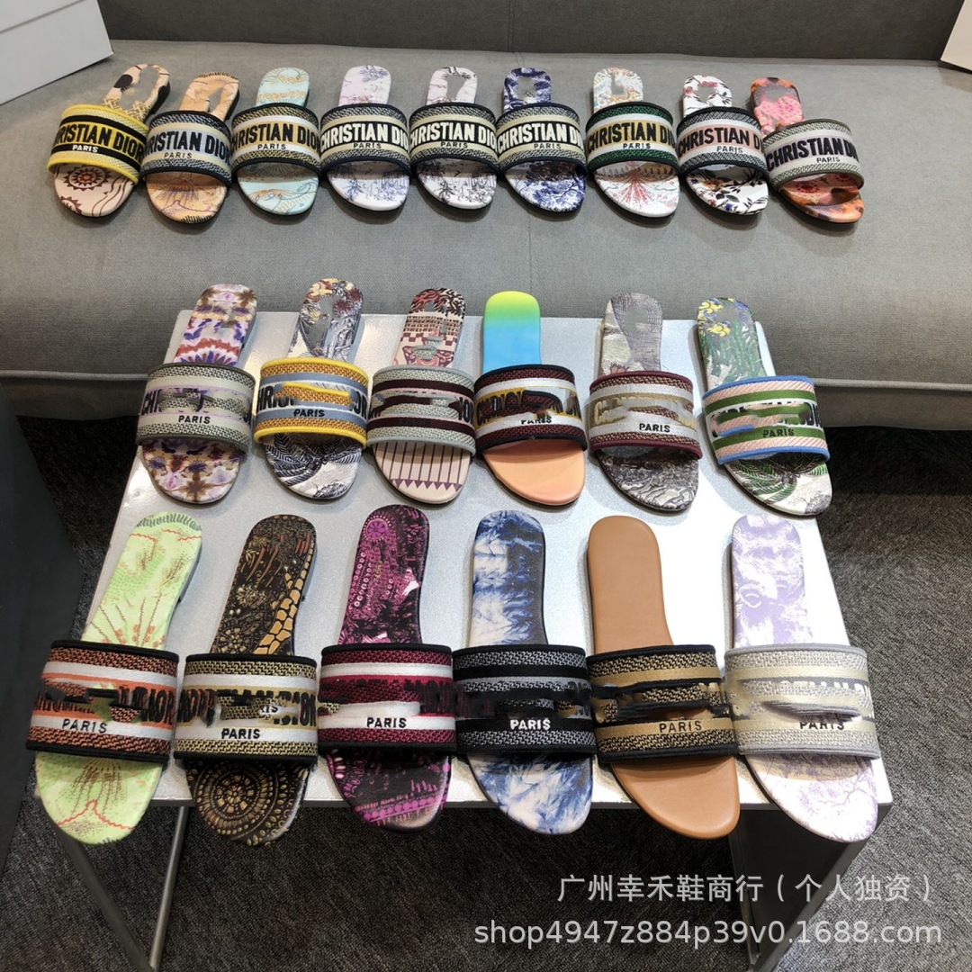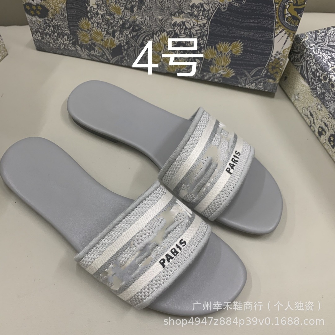 D 브랜드 슬리퍼 자수 비치 슬리퍼 여성용 플랫 슬리퍼 캐주얼 패션 자수 스타일 플랫힐스토어 가기
