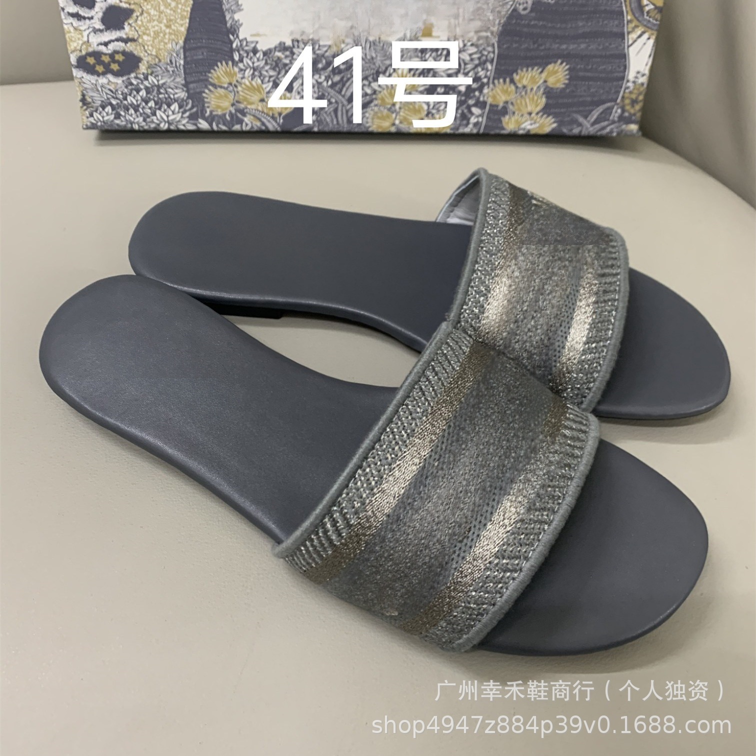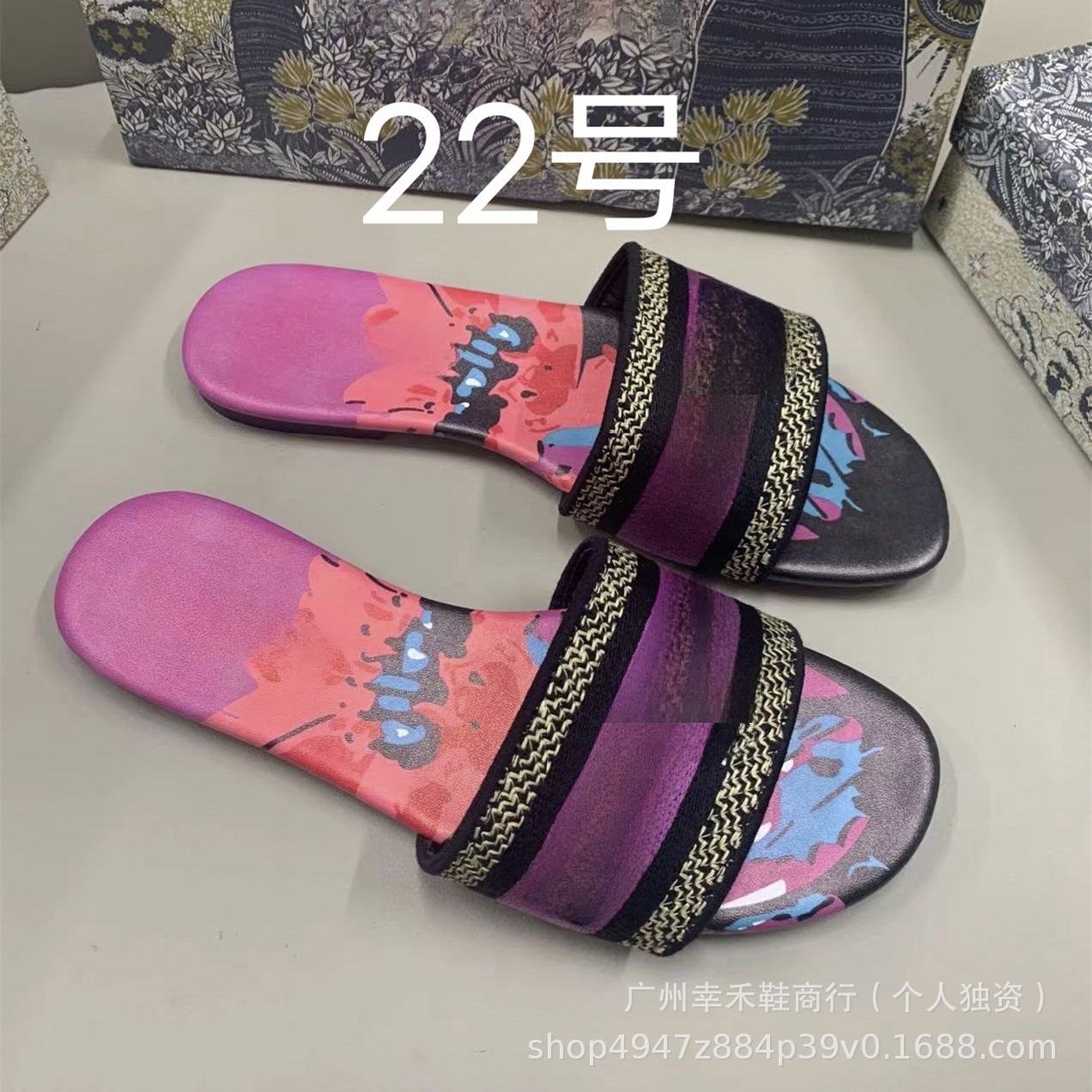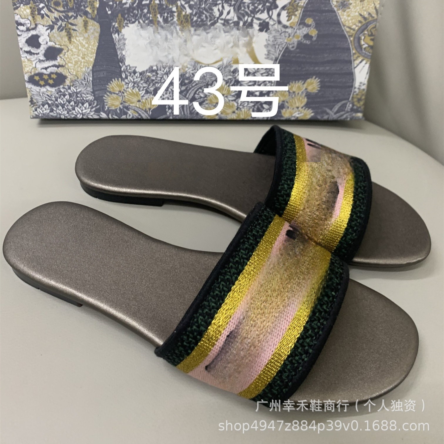 D 브랜드 슬리퍼 자수 비치 슬리퍼 여성용 플랫 슬리퍼 캐주얼 패션 자수 스타일 플랫힐스토어 가기
