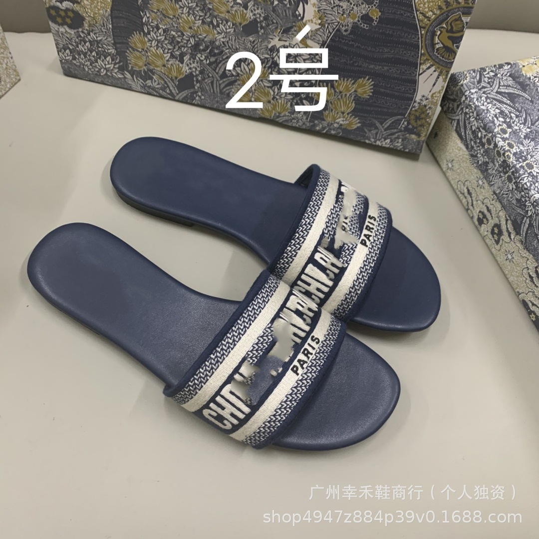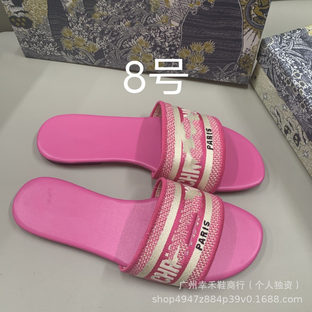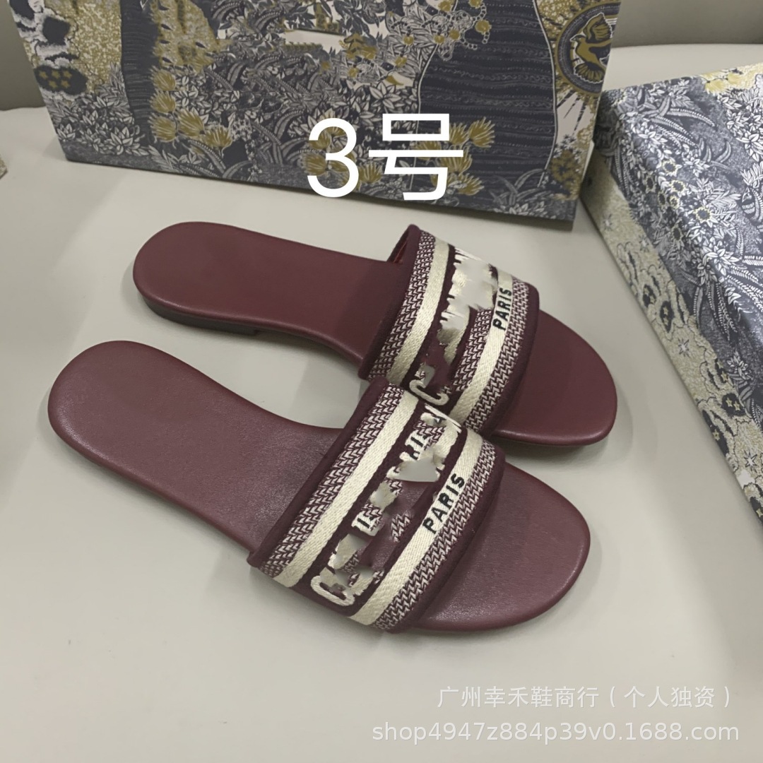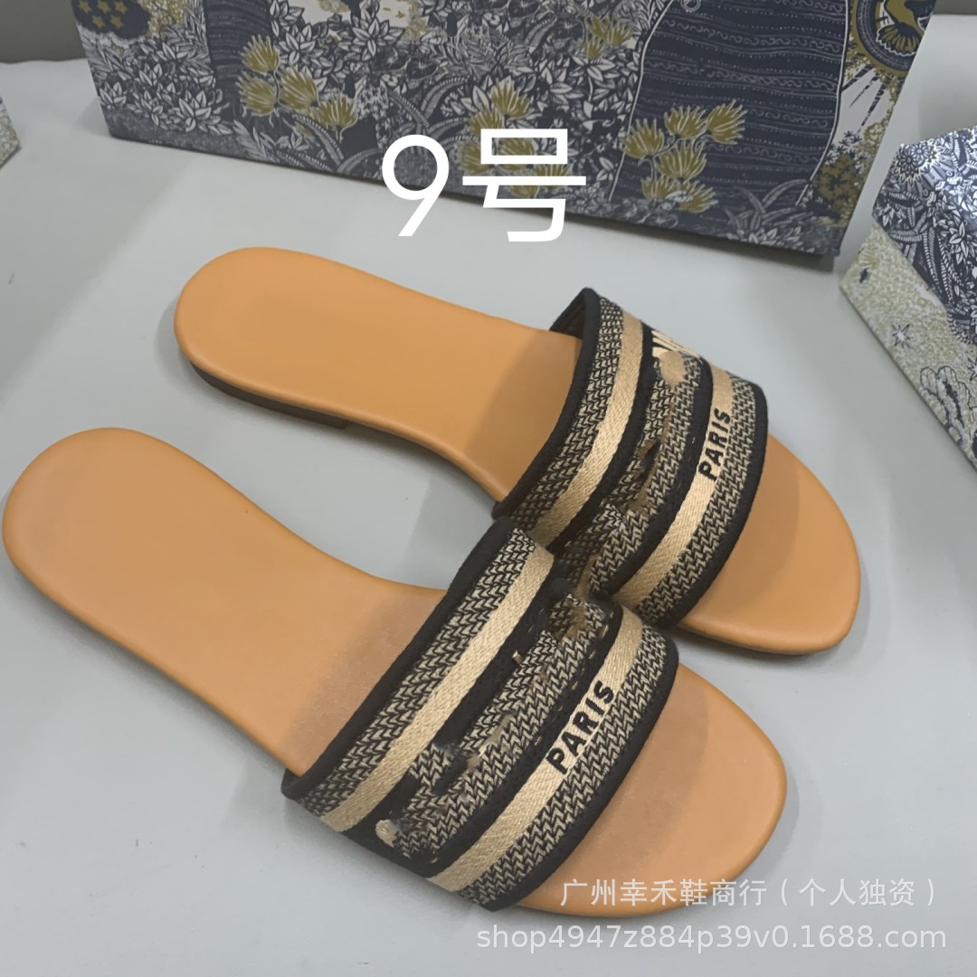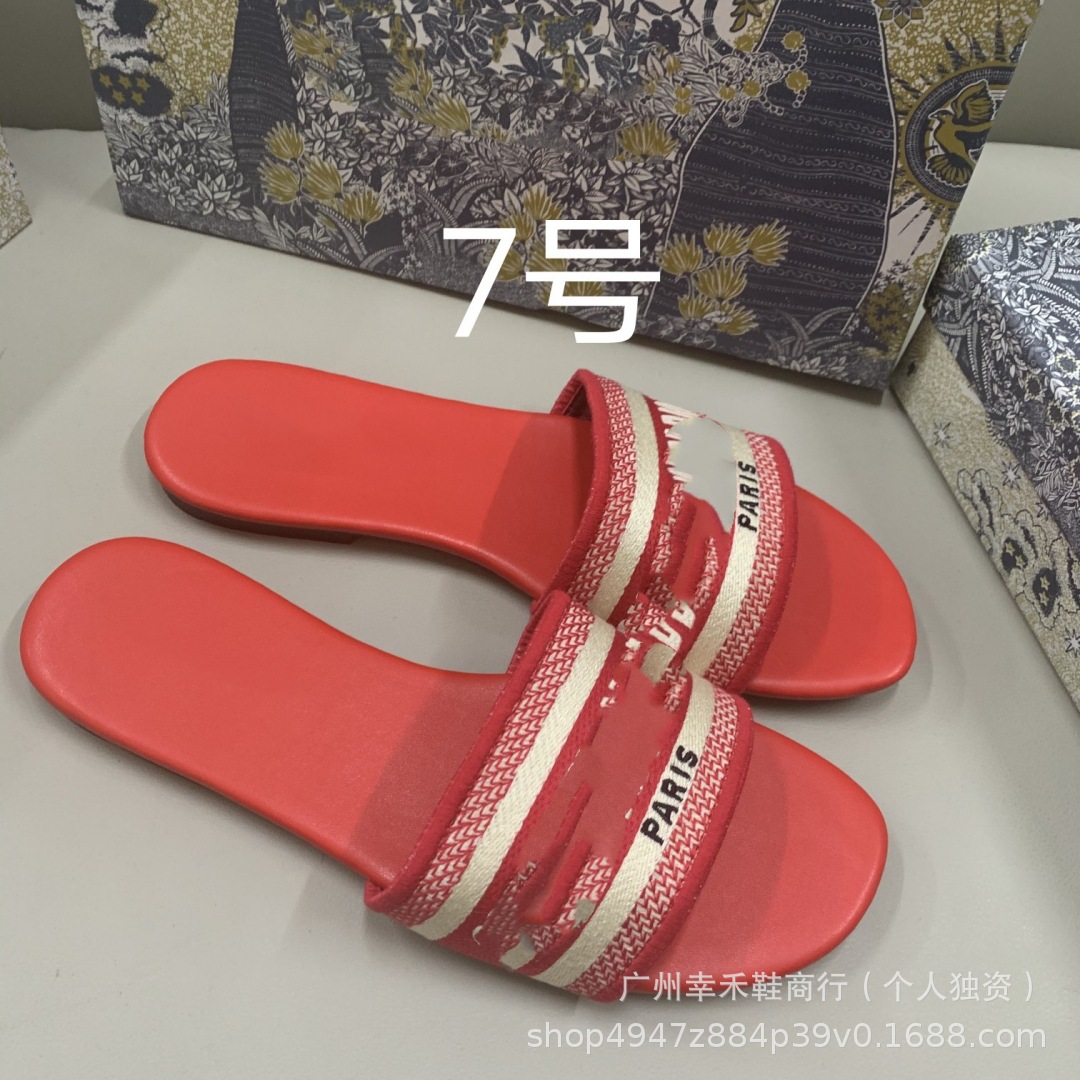 D 브랜드 슬리퍼 자수 비치 슬리퍼 여성용 플랫 슬리퍼 캐주얼 패션 자수 스타일 플랫힐
