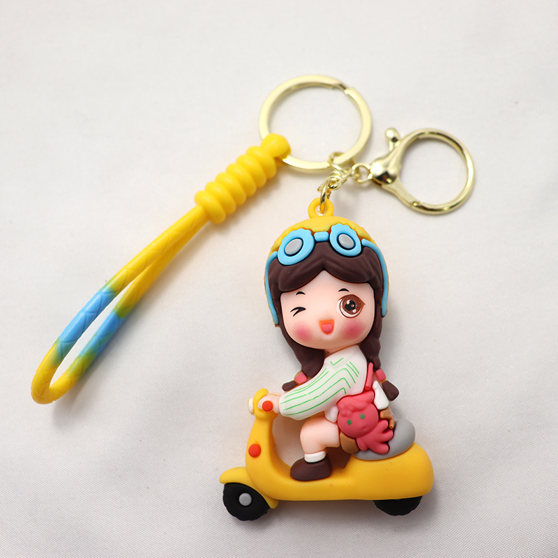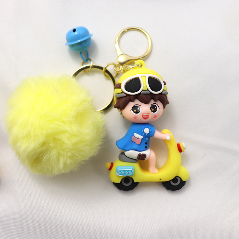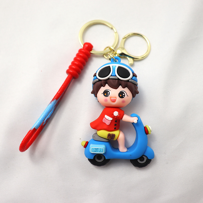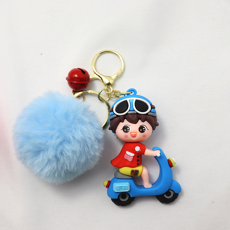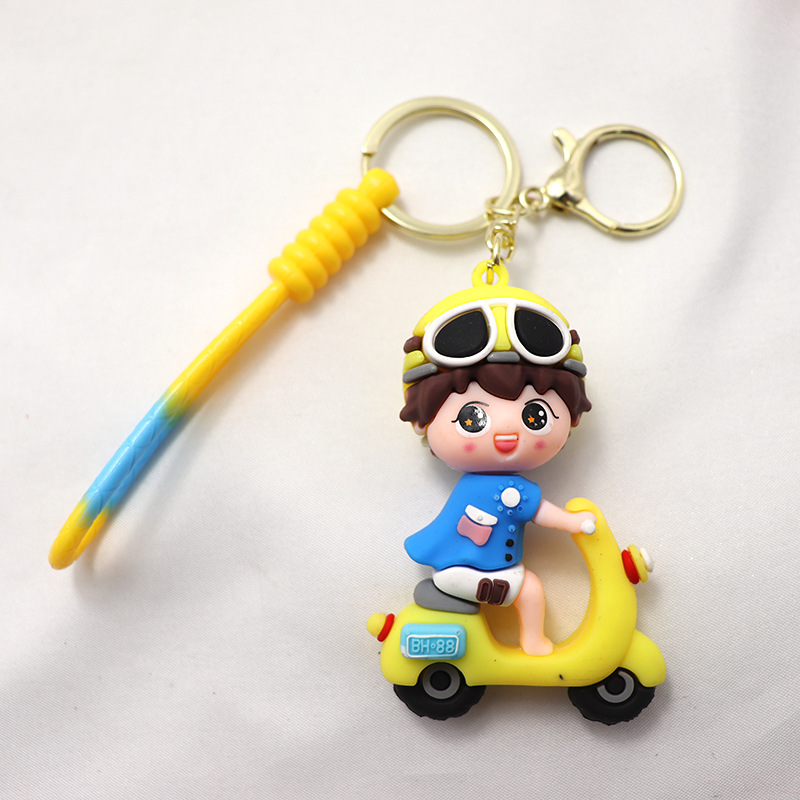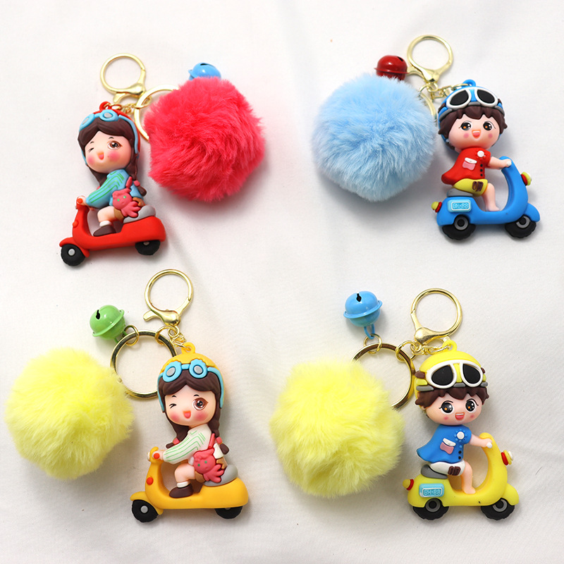 전기 자동차 소년 소녀 키 체인 만화 커플 오토바이 Schoolbag 펜던트 자동차 인형 키 인터넷 레드 크리에이티브
