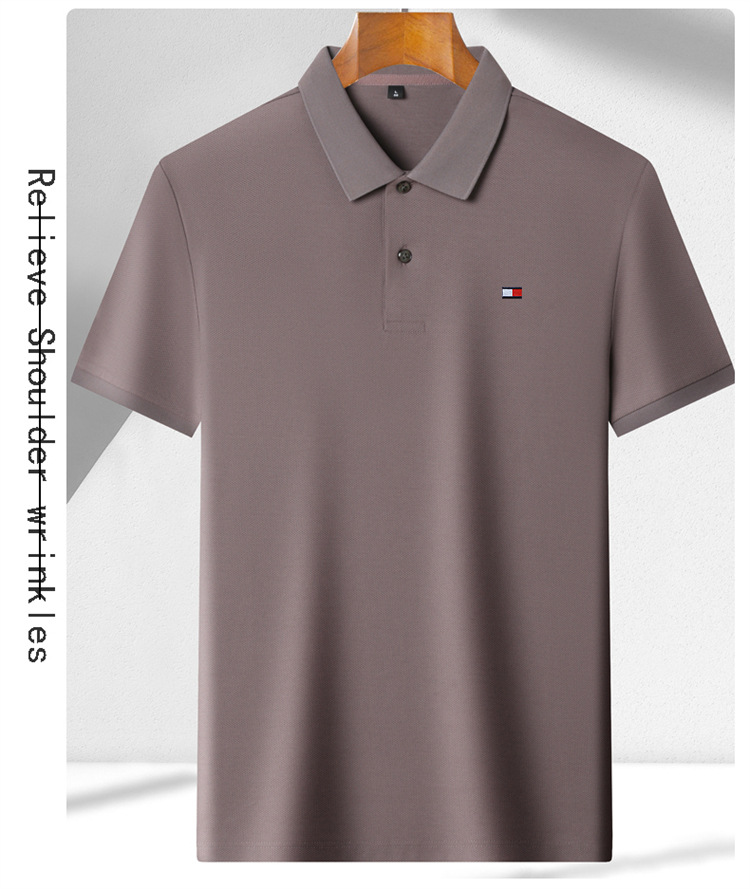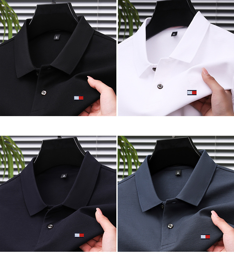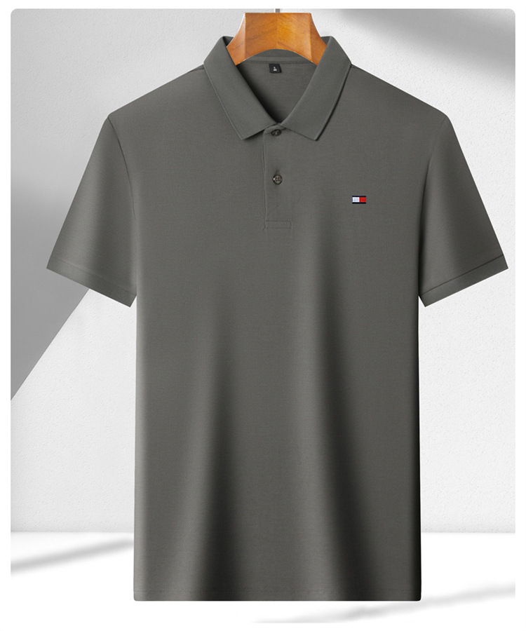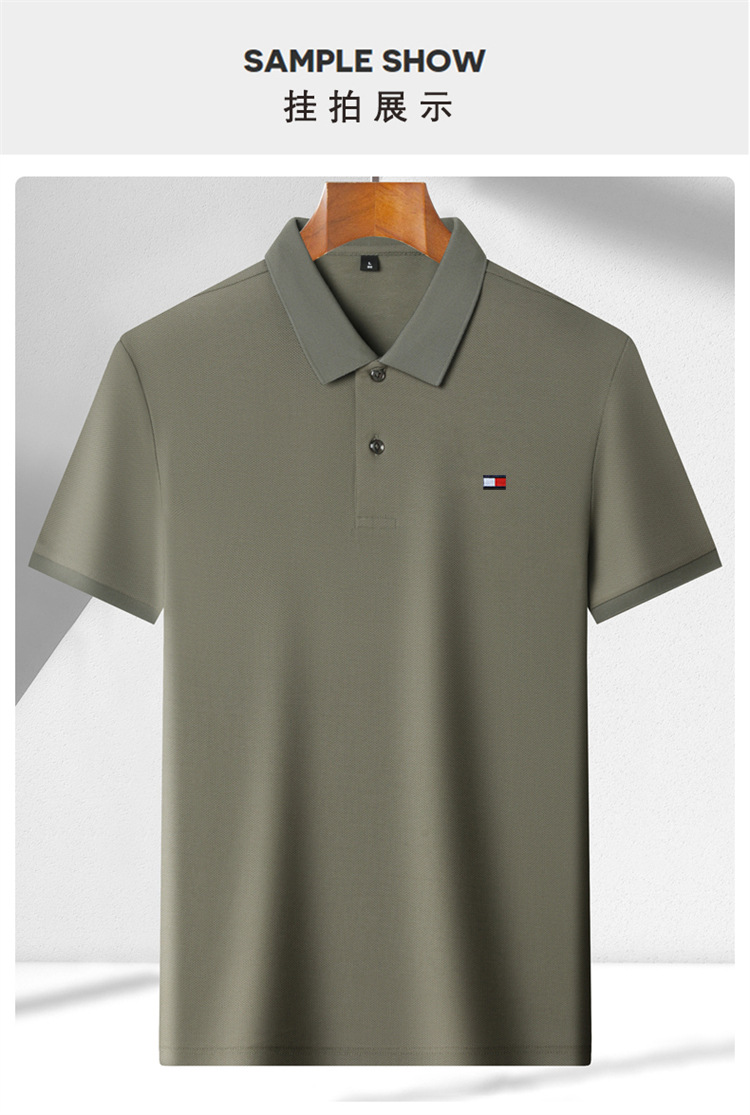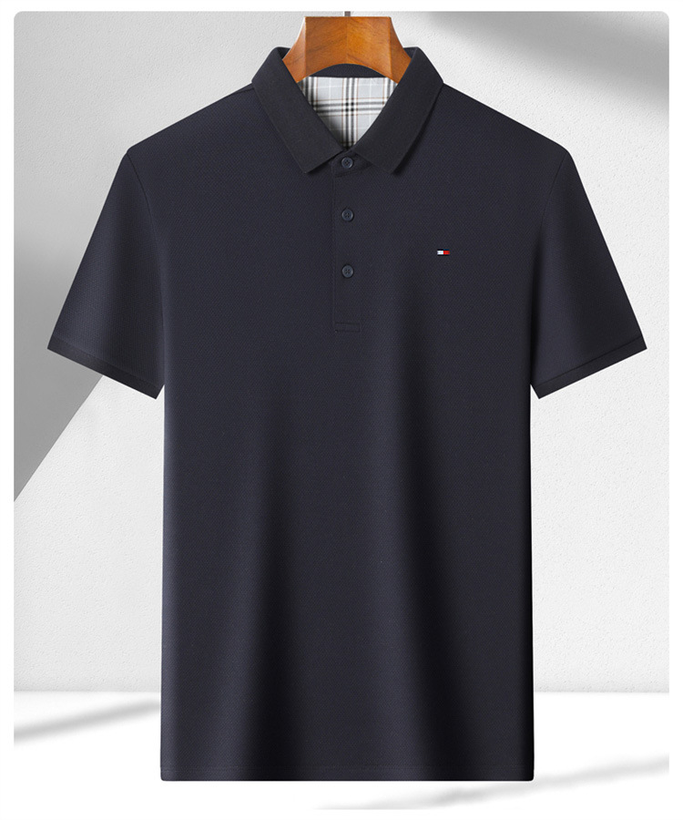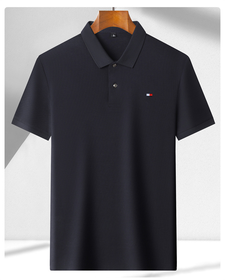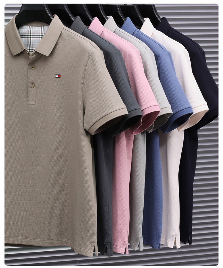 미국 정통 토미 토미 반팔 티셔츠 비즈니스 캐주얼 젊은 및 중년 남성 솔리드 컬러 반팔 폴로 셔츠 트렌디