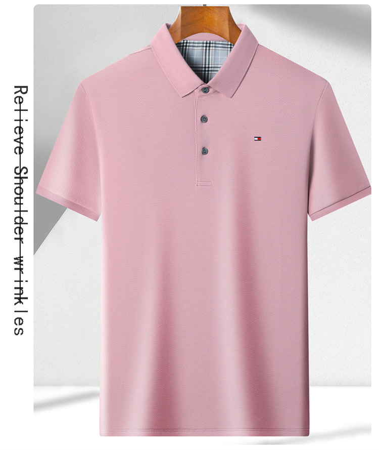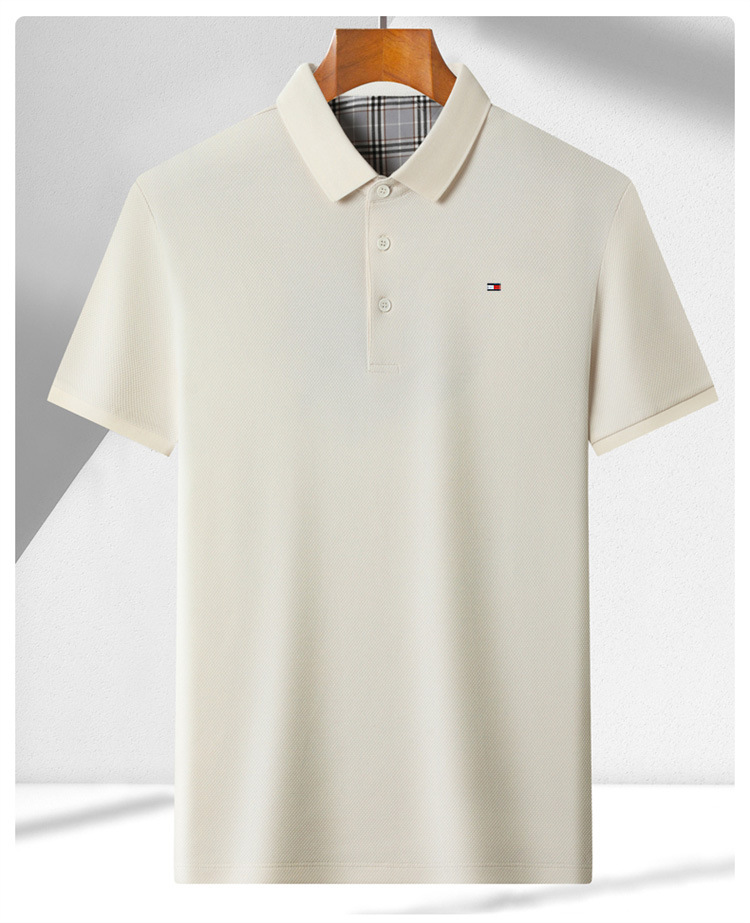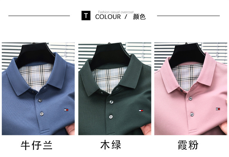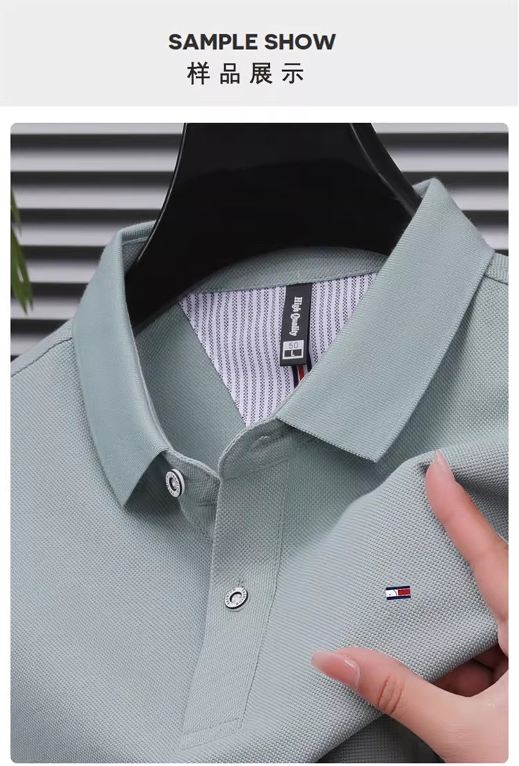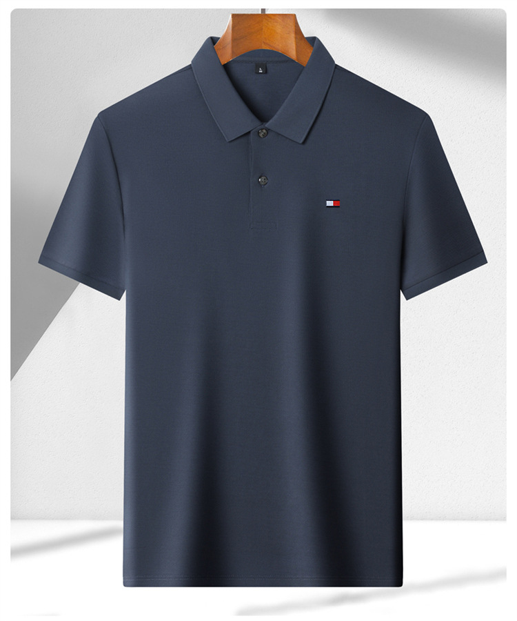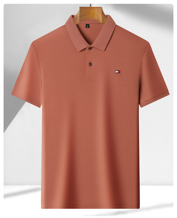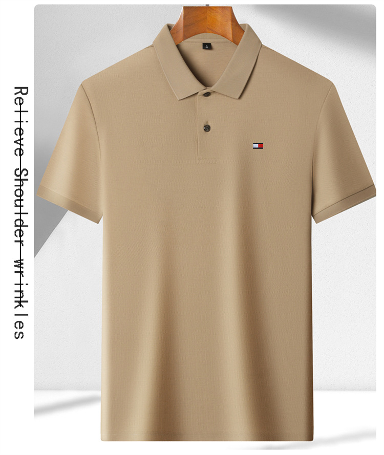 미국 정통 토미 토미 반팔 티셔츠 비즈니스 캐주얼 젊은 및 중년 남성 솔리드 컬러 반팔 폴로 셔츠 트렌디