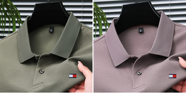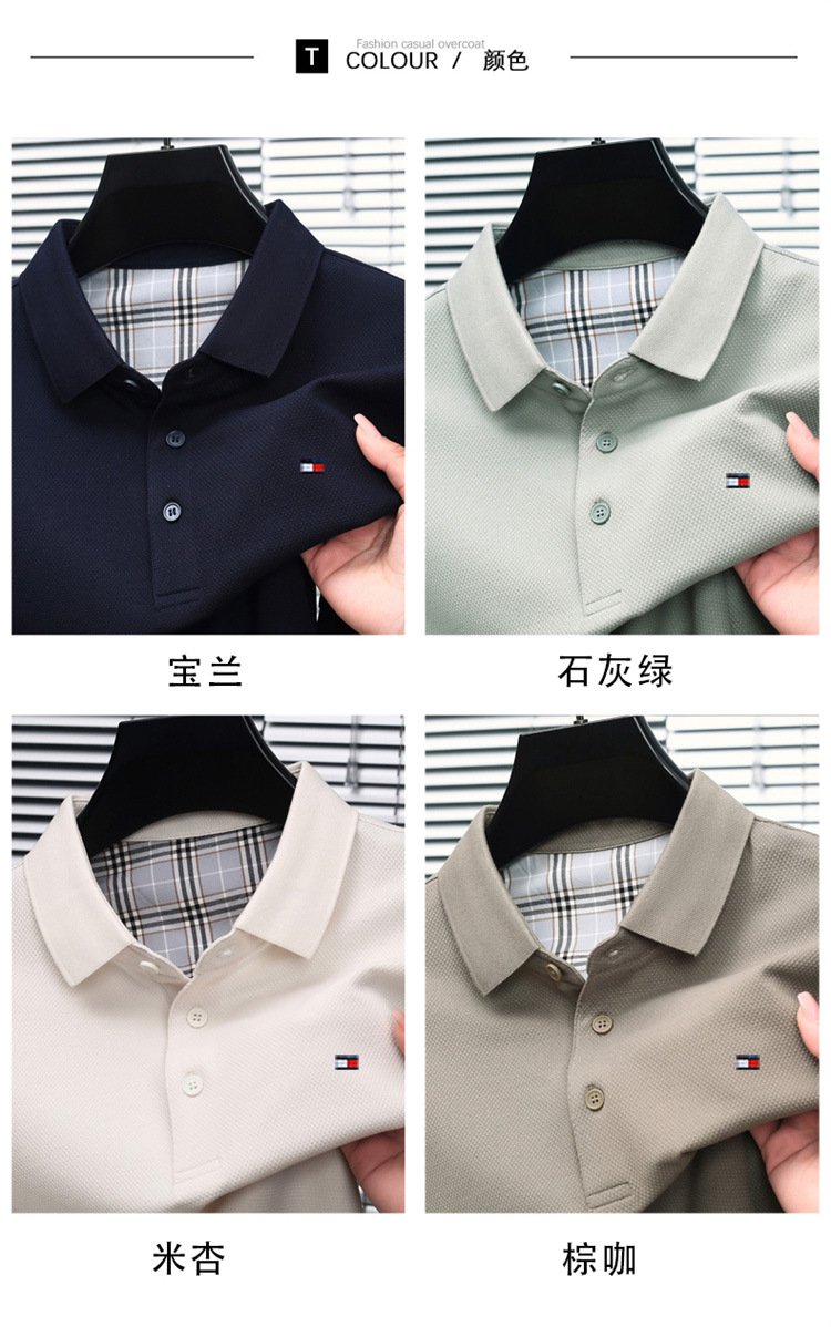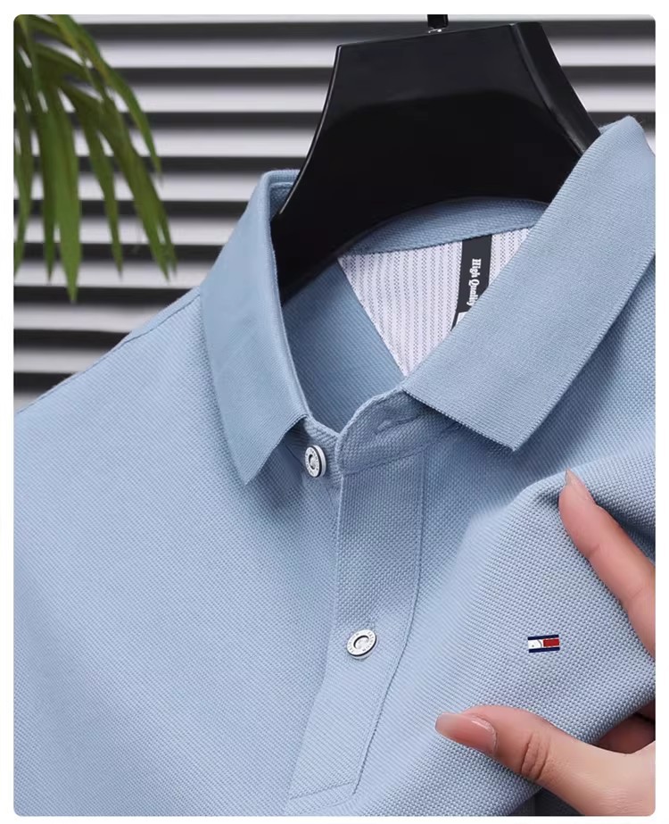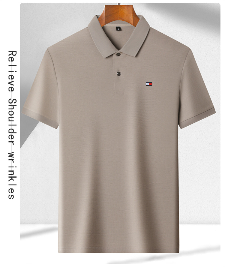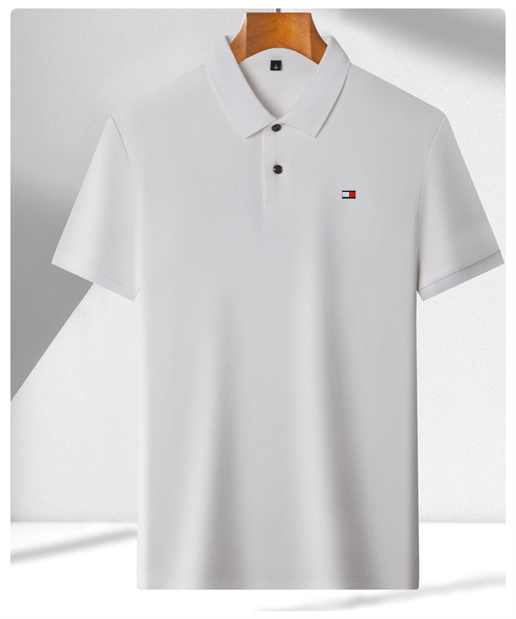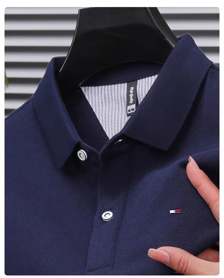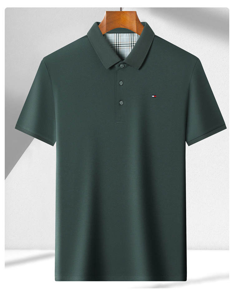 미국 정통 토미 토미 반팔 티셔츠 비즈니스 캐주얼 젊은 및 중년 남성 솔리드 컬러 반팔 폴로 셔츠 트렌디