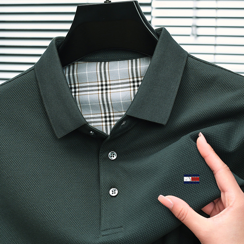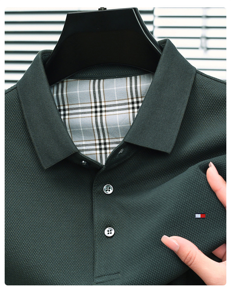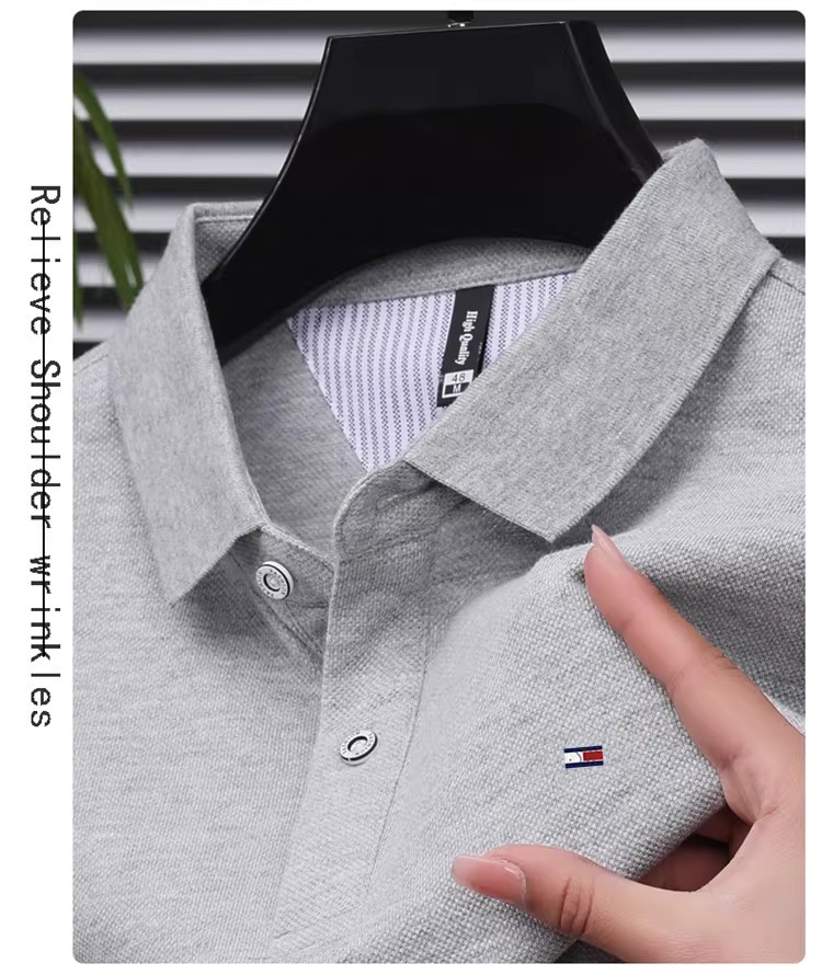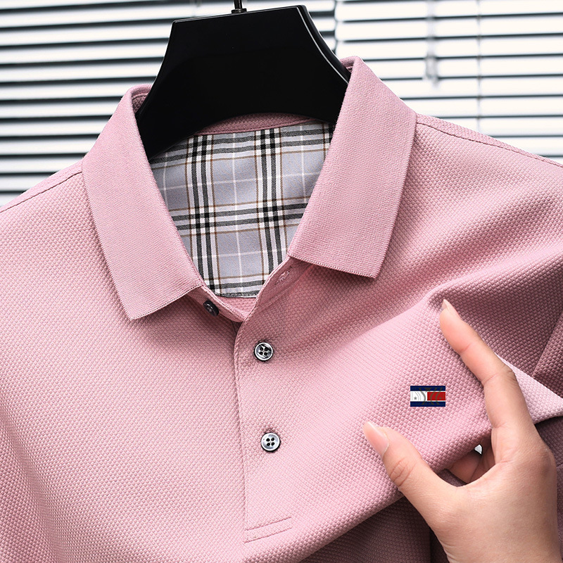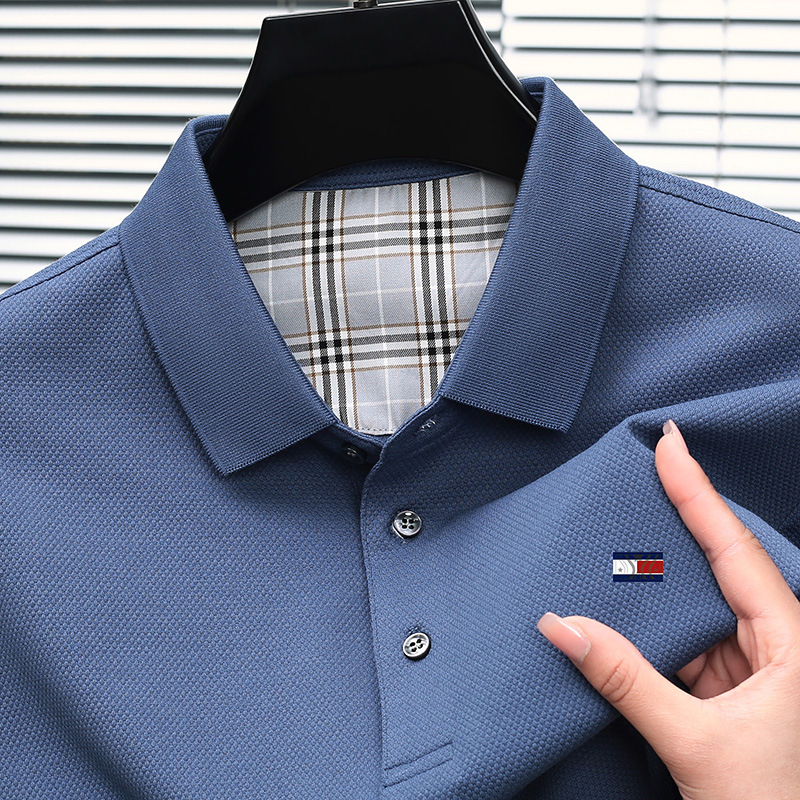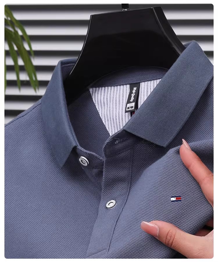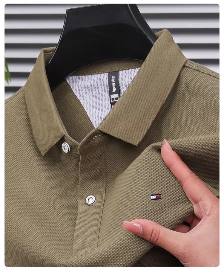미국 정통 토미 토미 반팔 티셔츠 비즈니스 캐주얼 젊은 및 중년 남성 솔리드 컬러 반팔 폴로 셔츠 트렌디