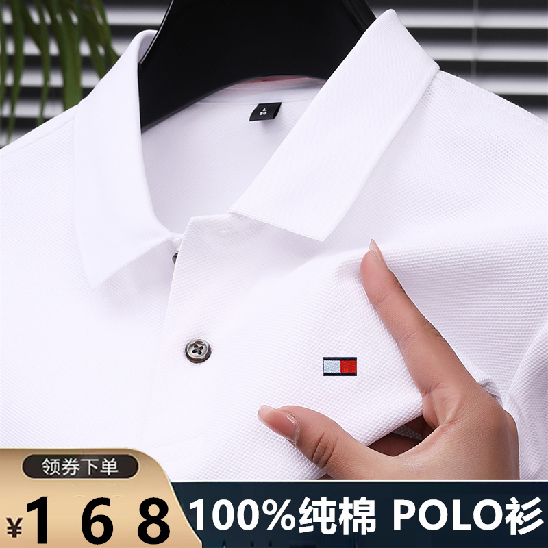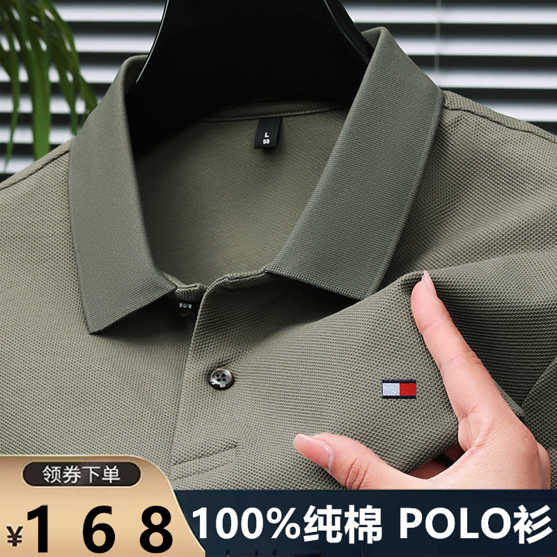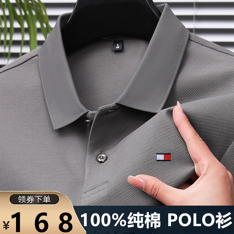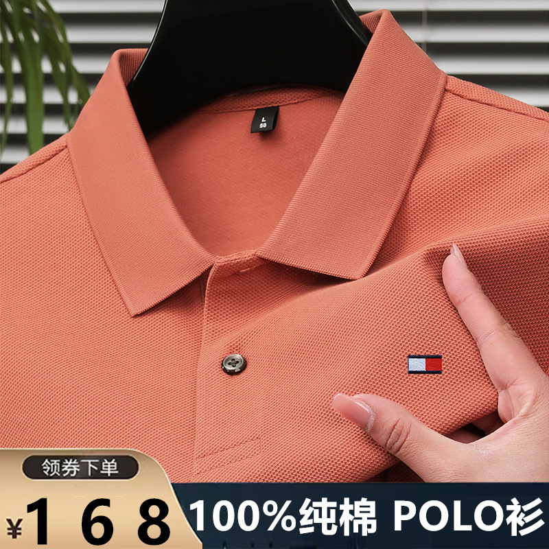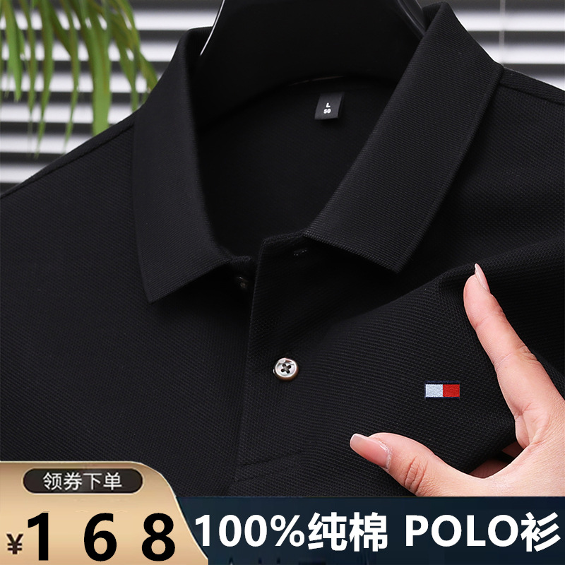 미국 정통 토미 토미 반팔 티셔츠 비즈니스 캐주얼 젊은 및 중년 남성 솔리드 컬러 반팔 폴로 셔츠 트렌디스토어 가기