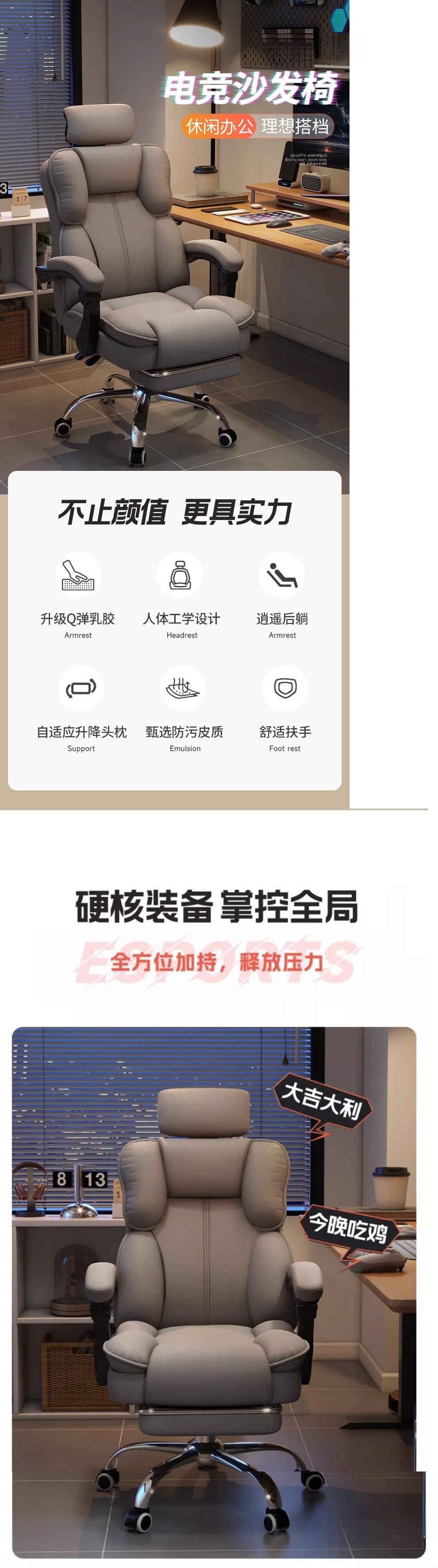 • 그레이 극세사 가죽 + 3D 조절식 머리받침 + 발판 + 스펀지 쿠션