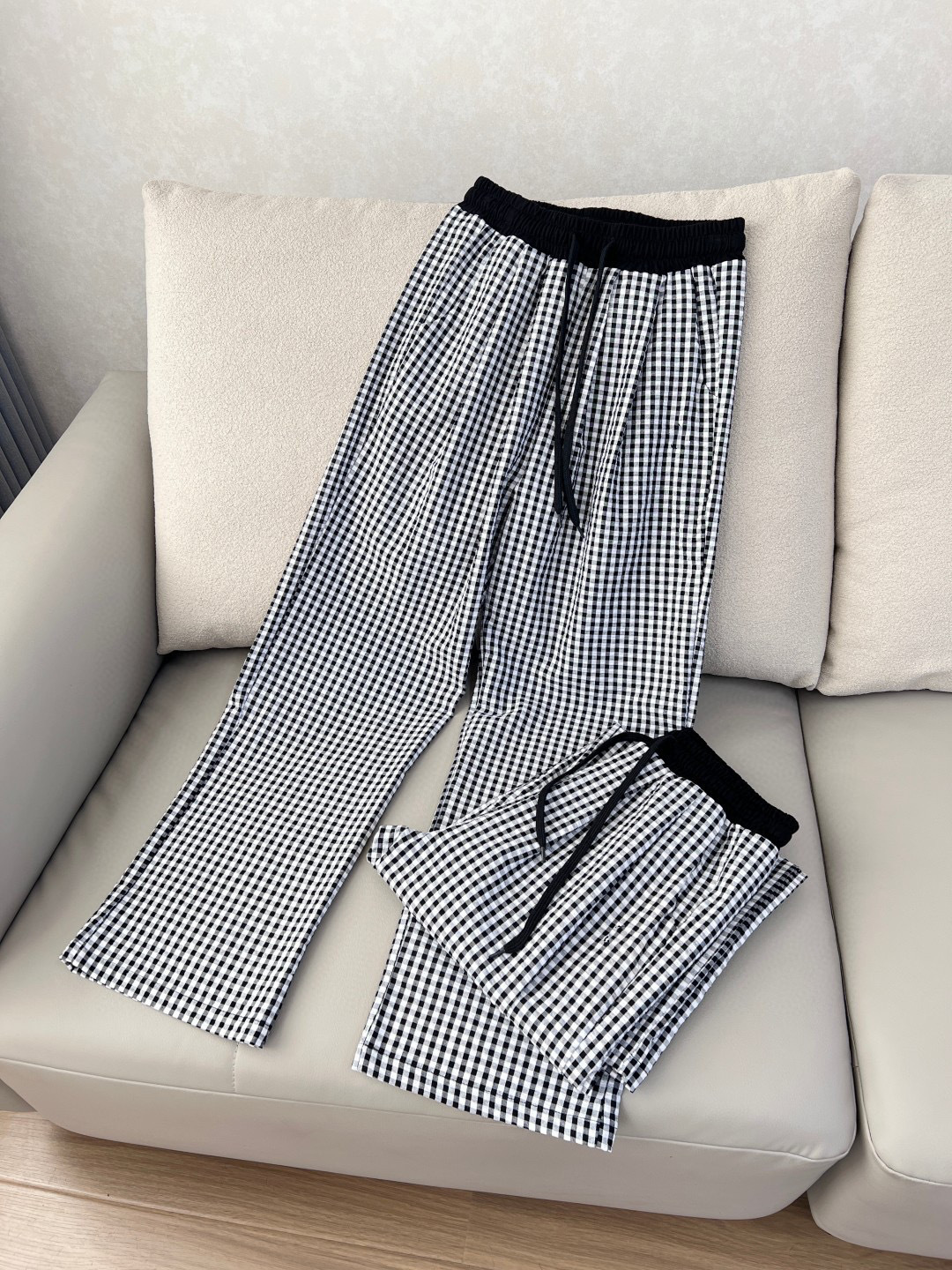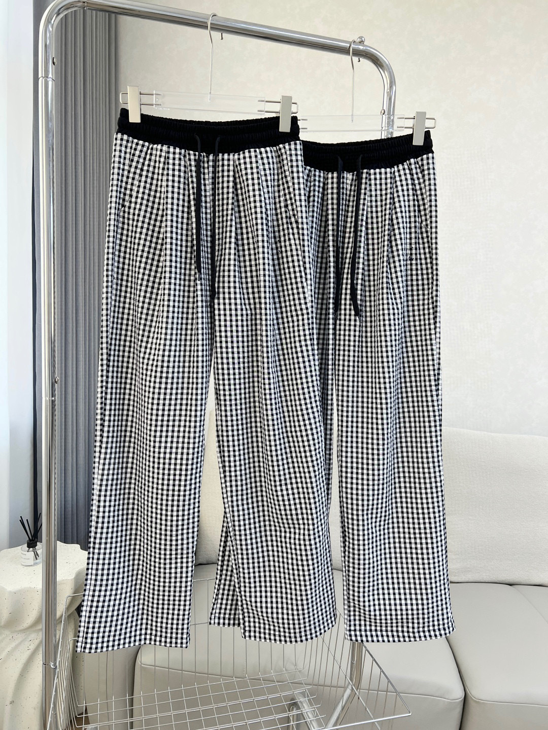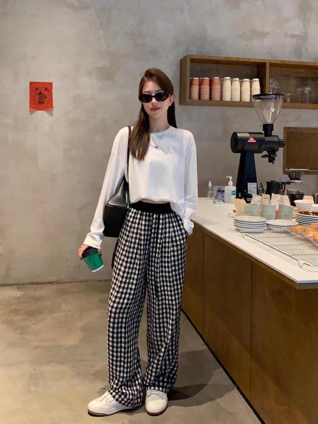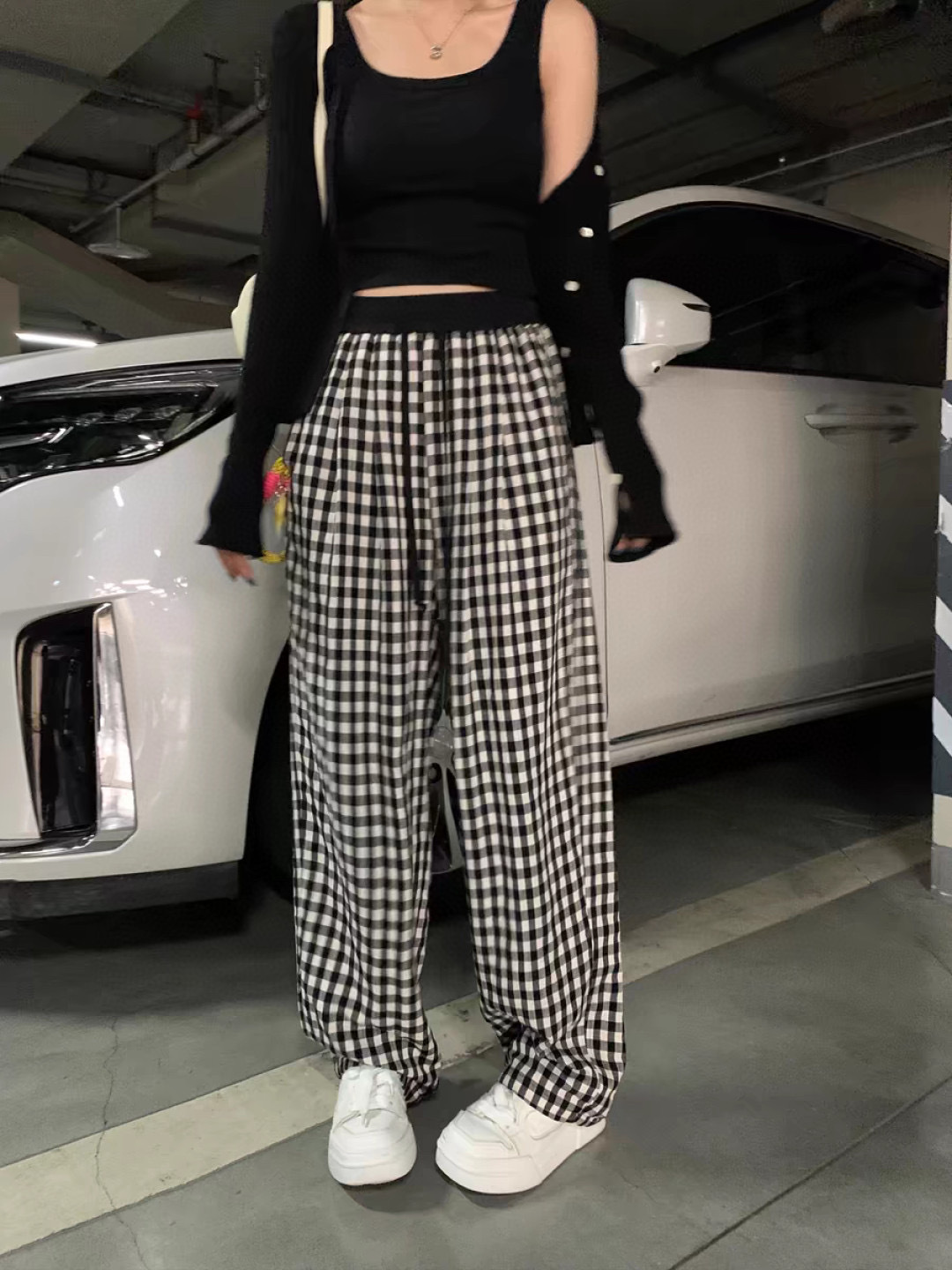 얇은 신축성있는 허리 캐주얼 미국 복고풍 스트레이트 팬츠 느슨한 크로스 보더 세대 헤어 F 자수 말 체크 무늬 바지를 당겨스토어 가기