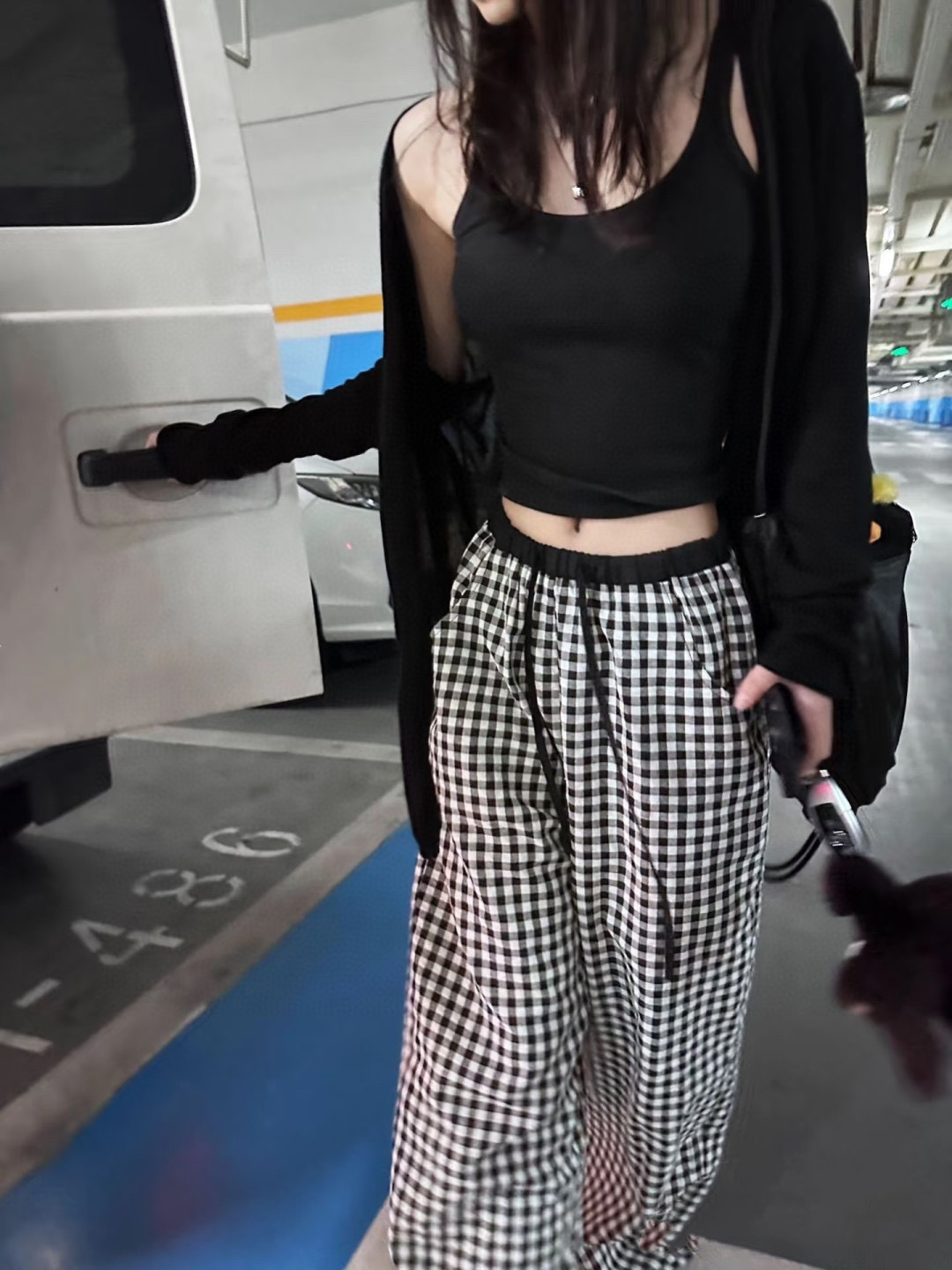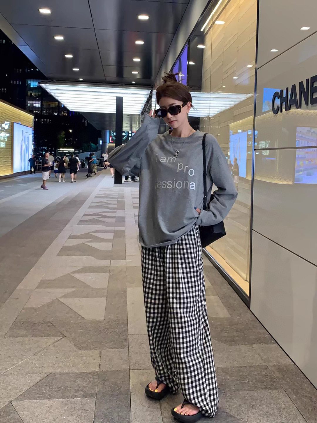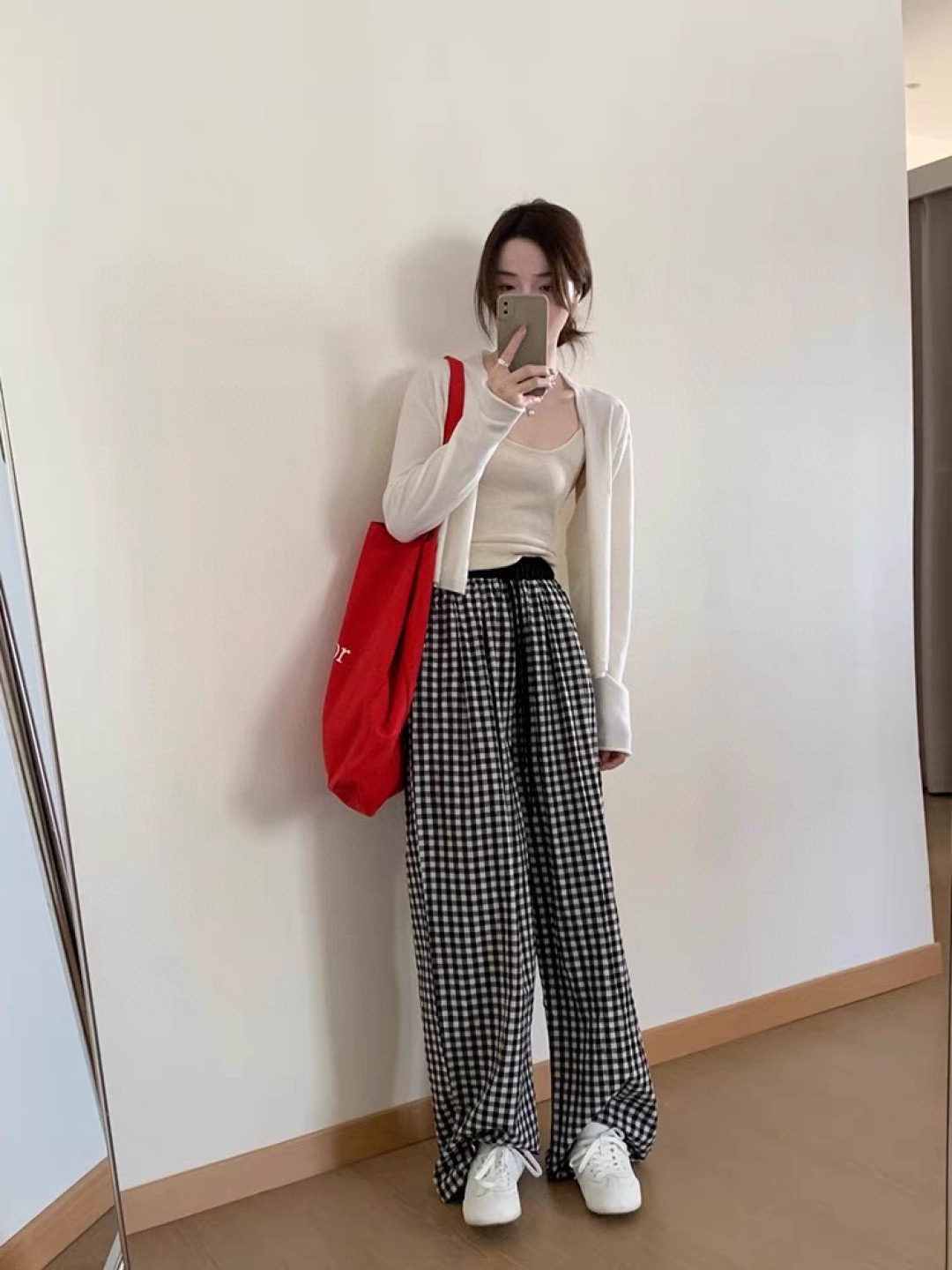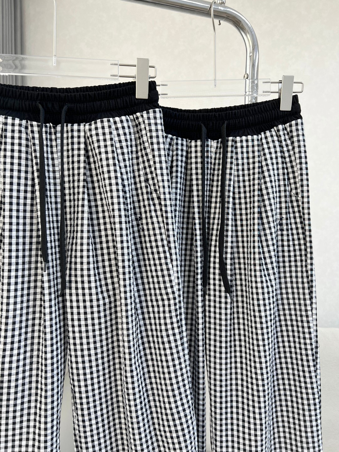 얇은 신축성있는 허리 캐주얼 미국 복고풍 스트레이트 팬츠 느슨한 크로스 보더 세대 헤어 F 자수 말 체크 무늬 바지를 당겨스토어 가기