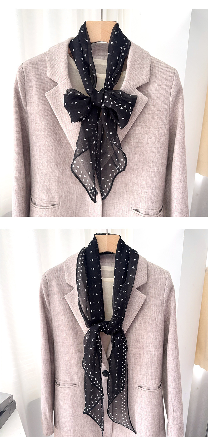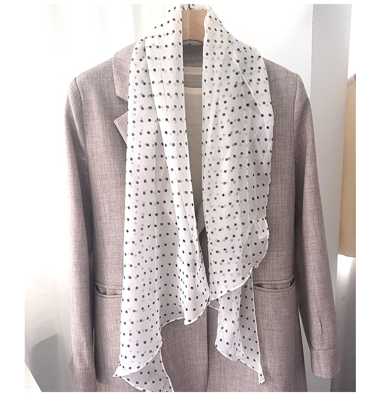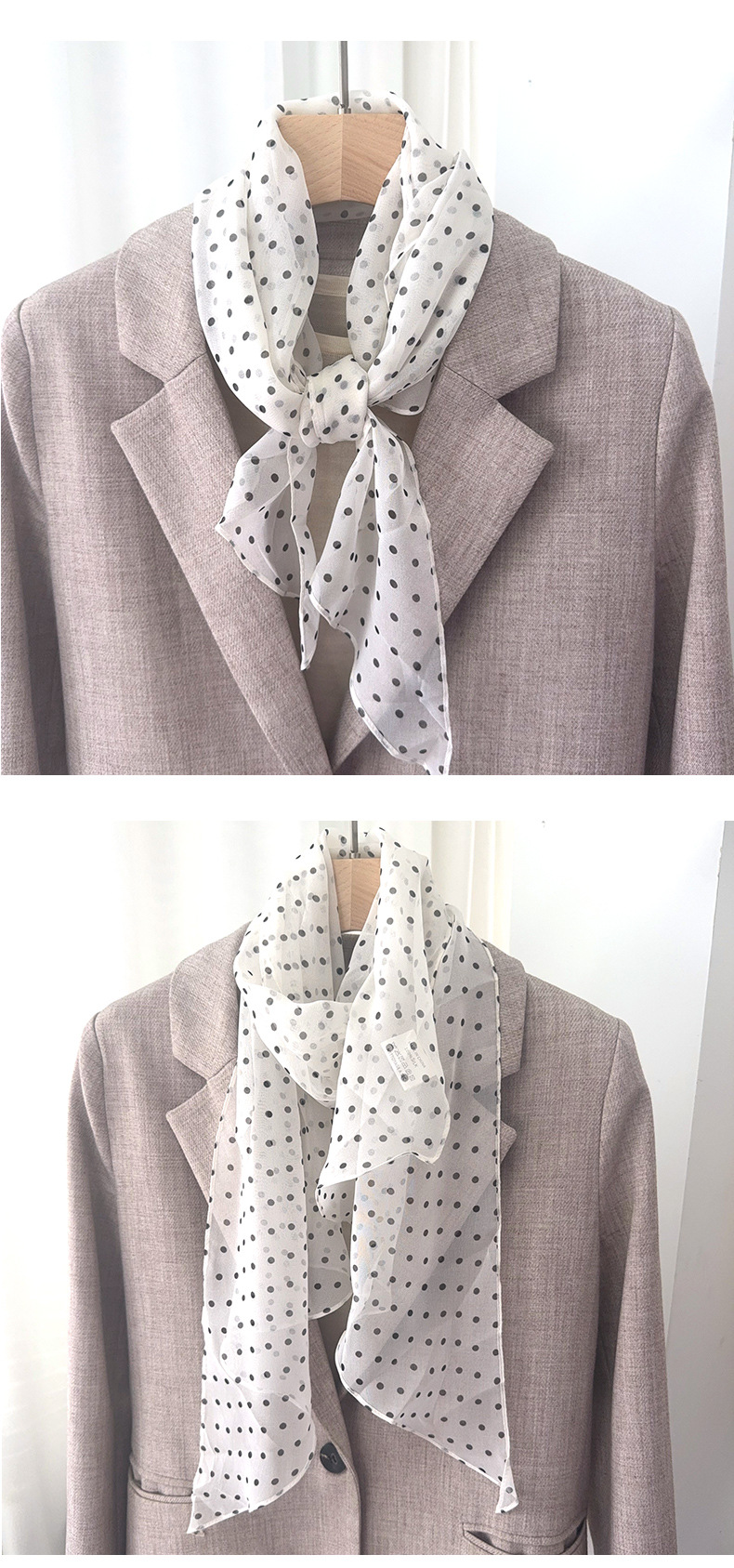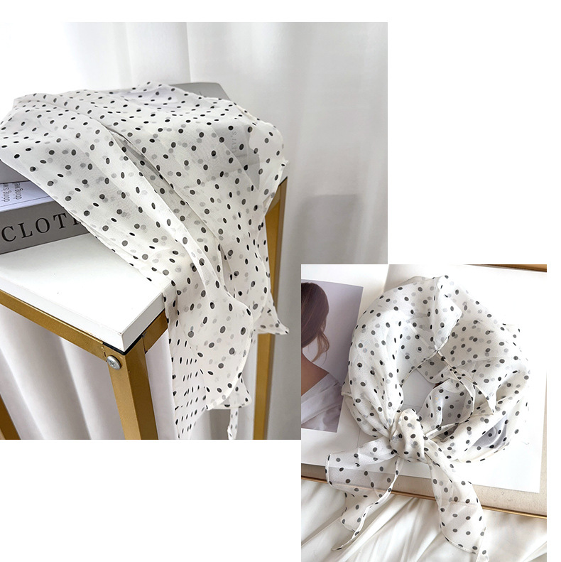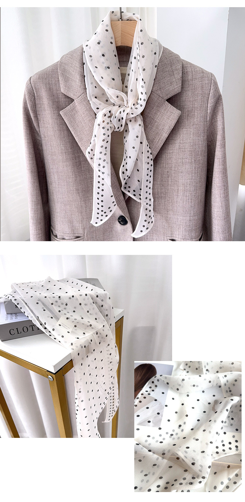 클래식 폴카 도트 1호 실크 조젯 롱 스카프 여름용 얇은 스타일 2026년 신상 실크 스카프 리본스토어 가기