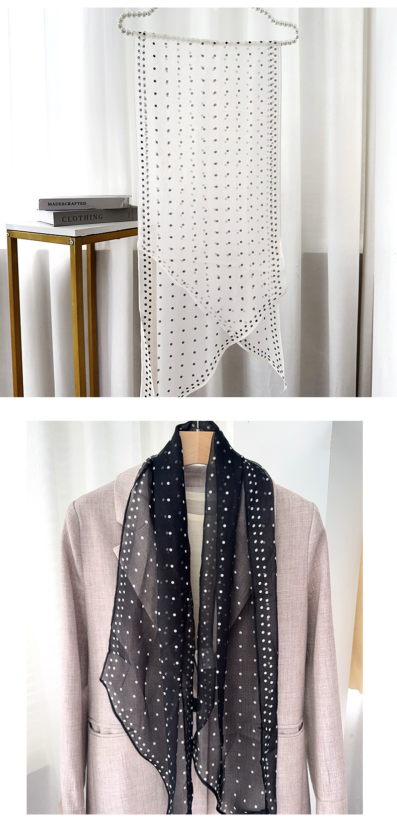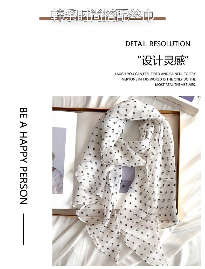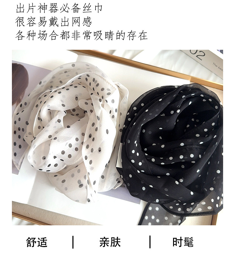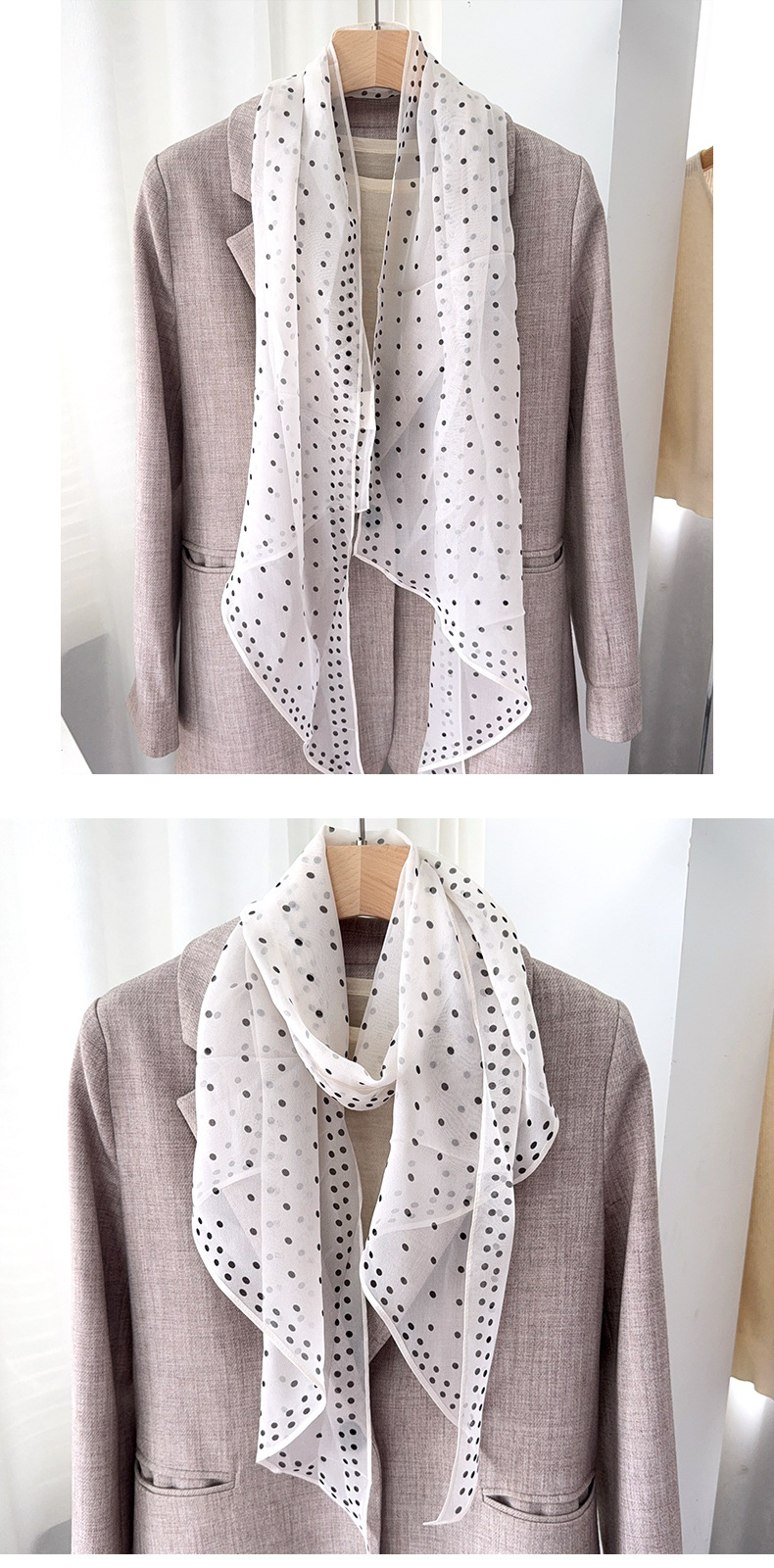 클래식 폴카 도트 1호 실크 조젯 롱 스카프 여름용 얇은 스타일 2026년 신상 실크 스카프 리본스토어 가기
