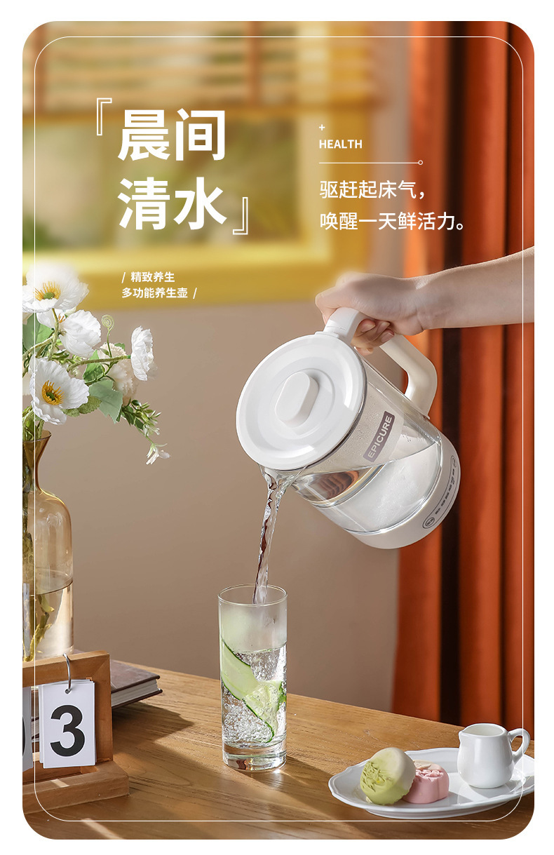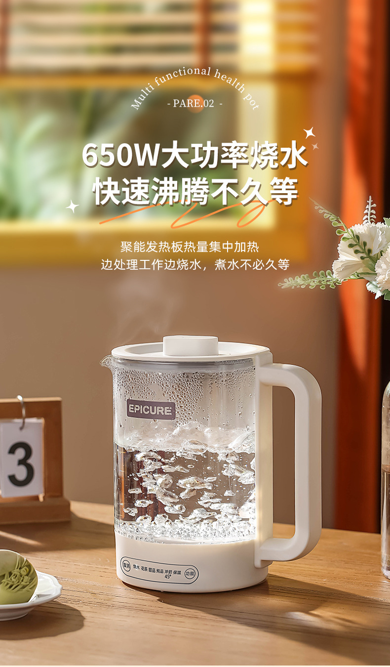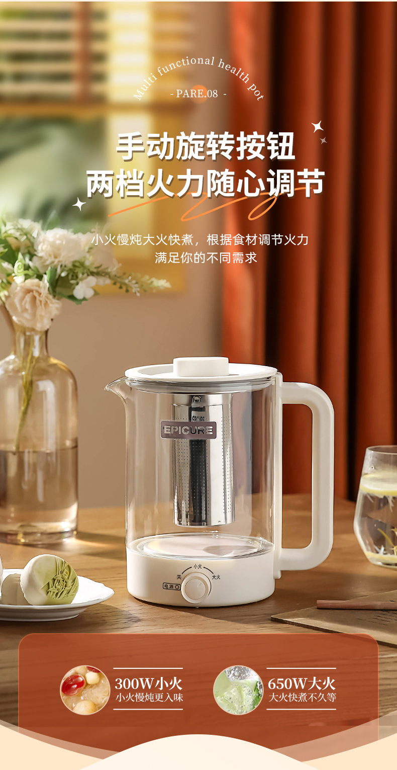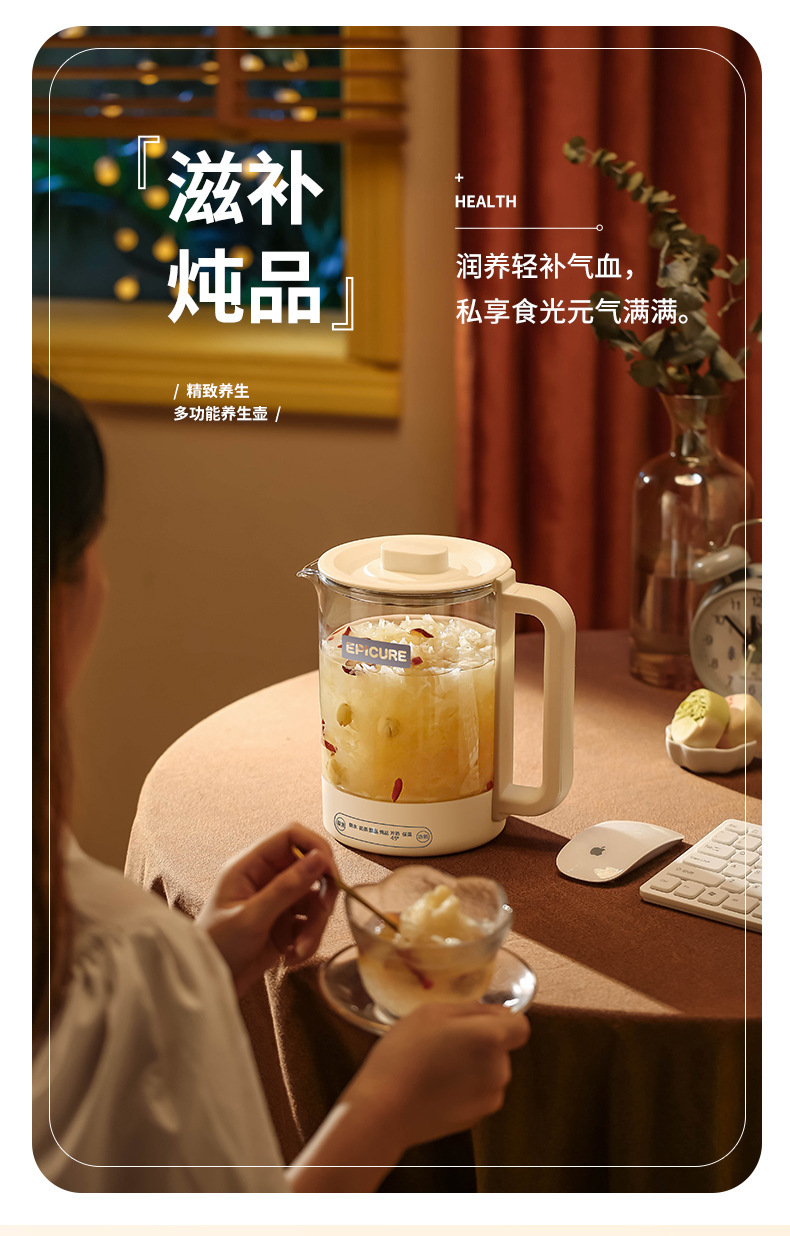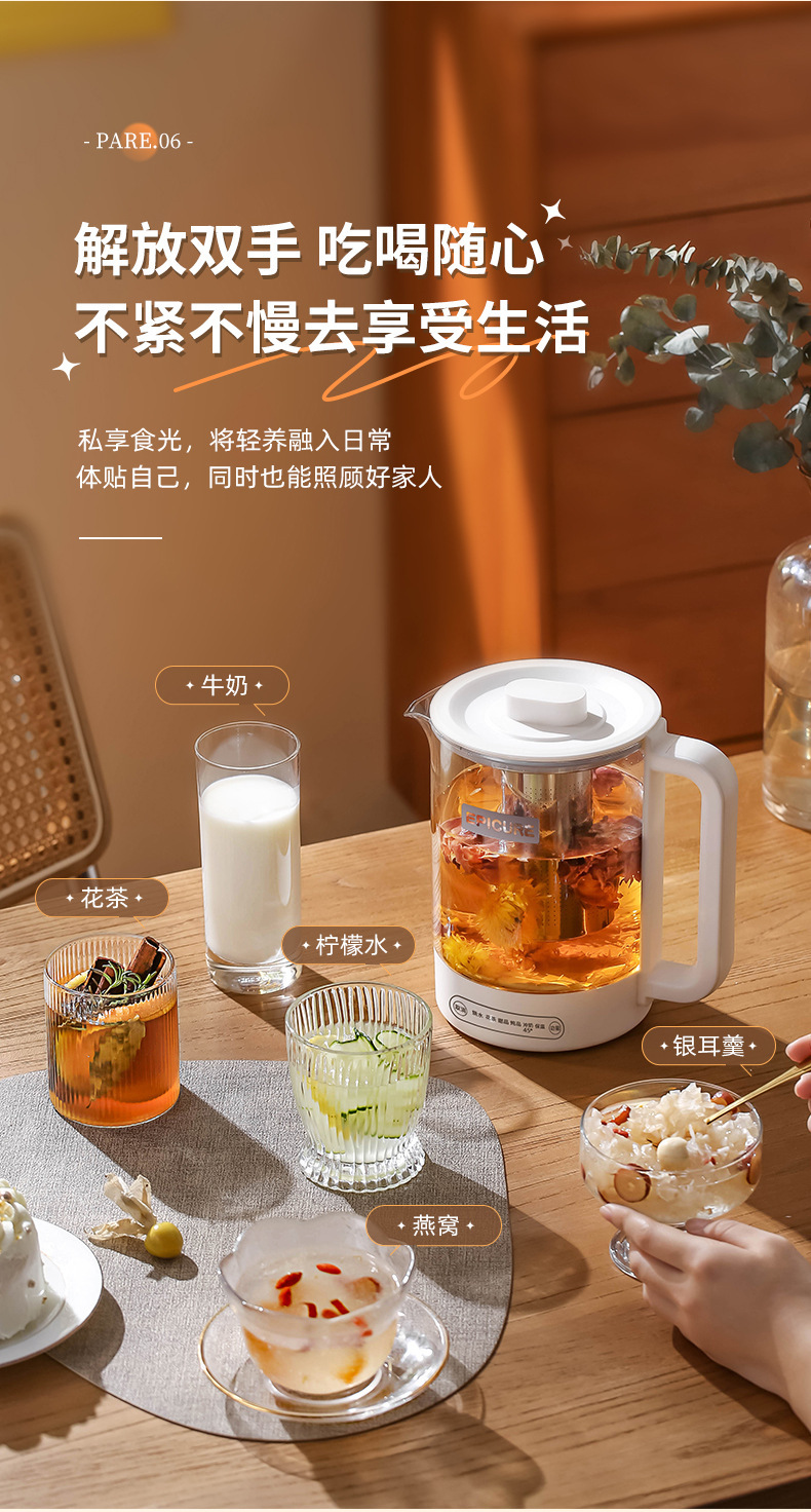 두꺼운 유리 건강 냄비, 보온, 차 및 제비집 요리, 항온 및 보온, 올인원 대용량 간이 주전자