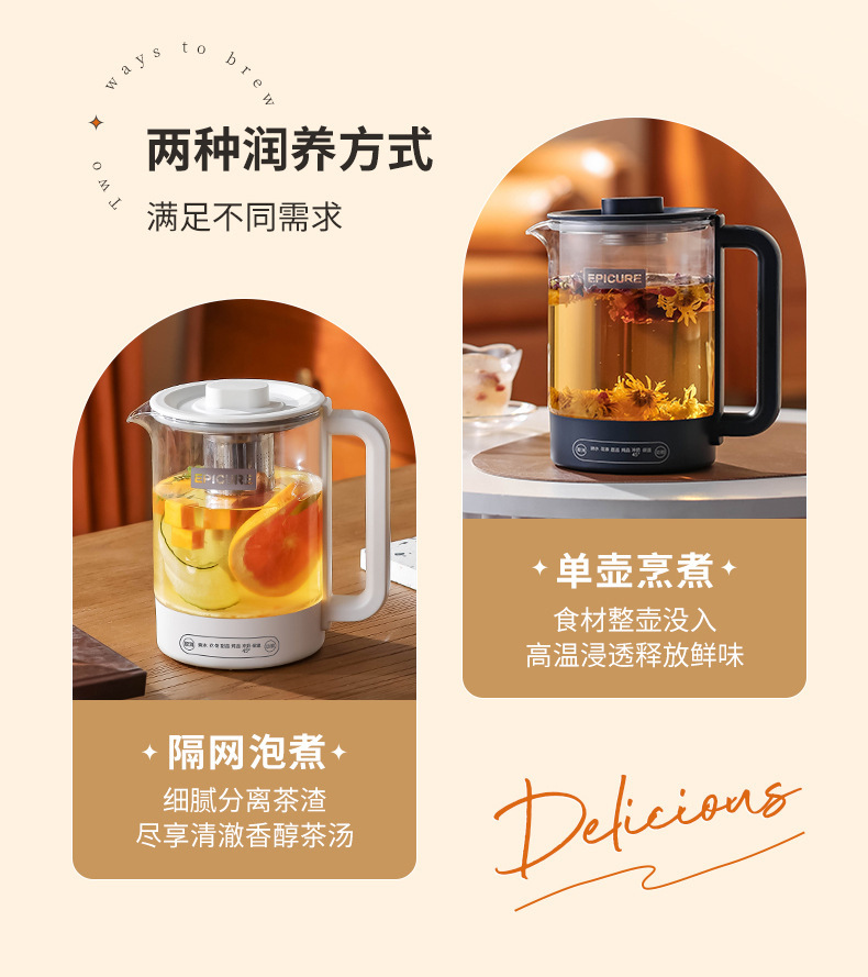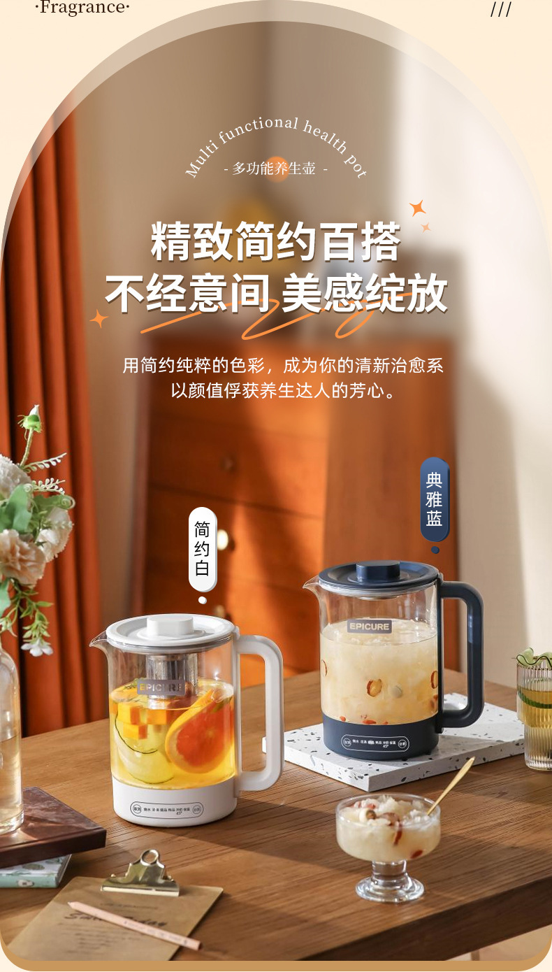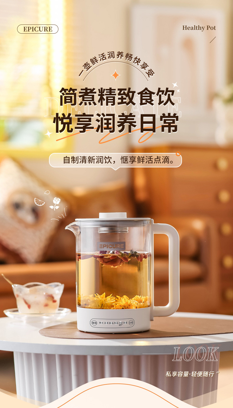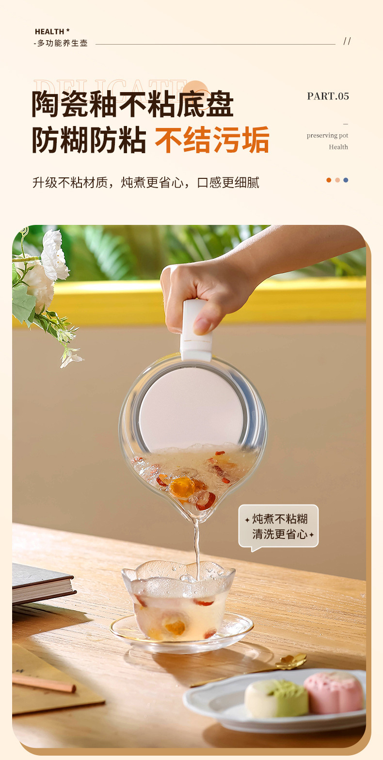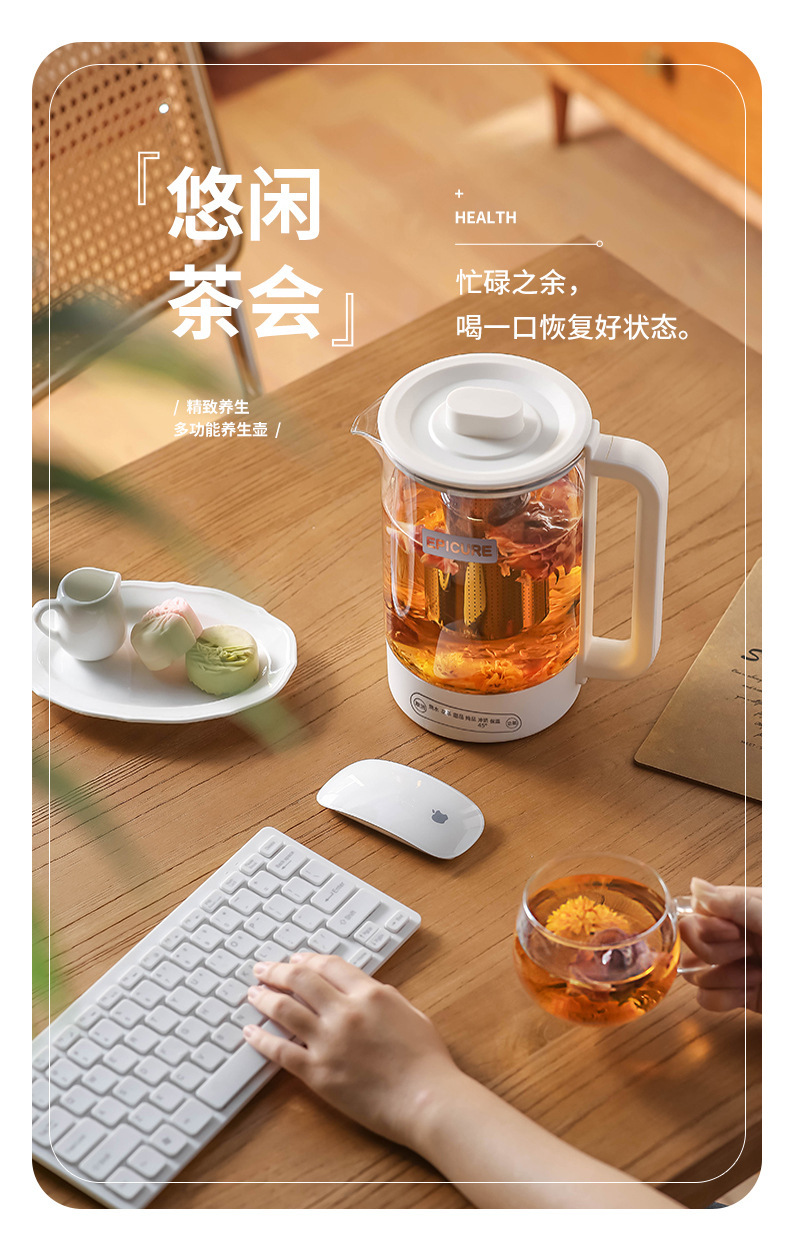 두꺼운 유리 건강 냄비, 보온, 차 및 제비집 요리, 항온 및 보온, 올인원 대용량 간이 주전자
