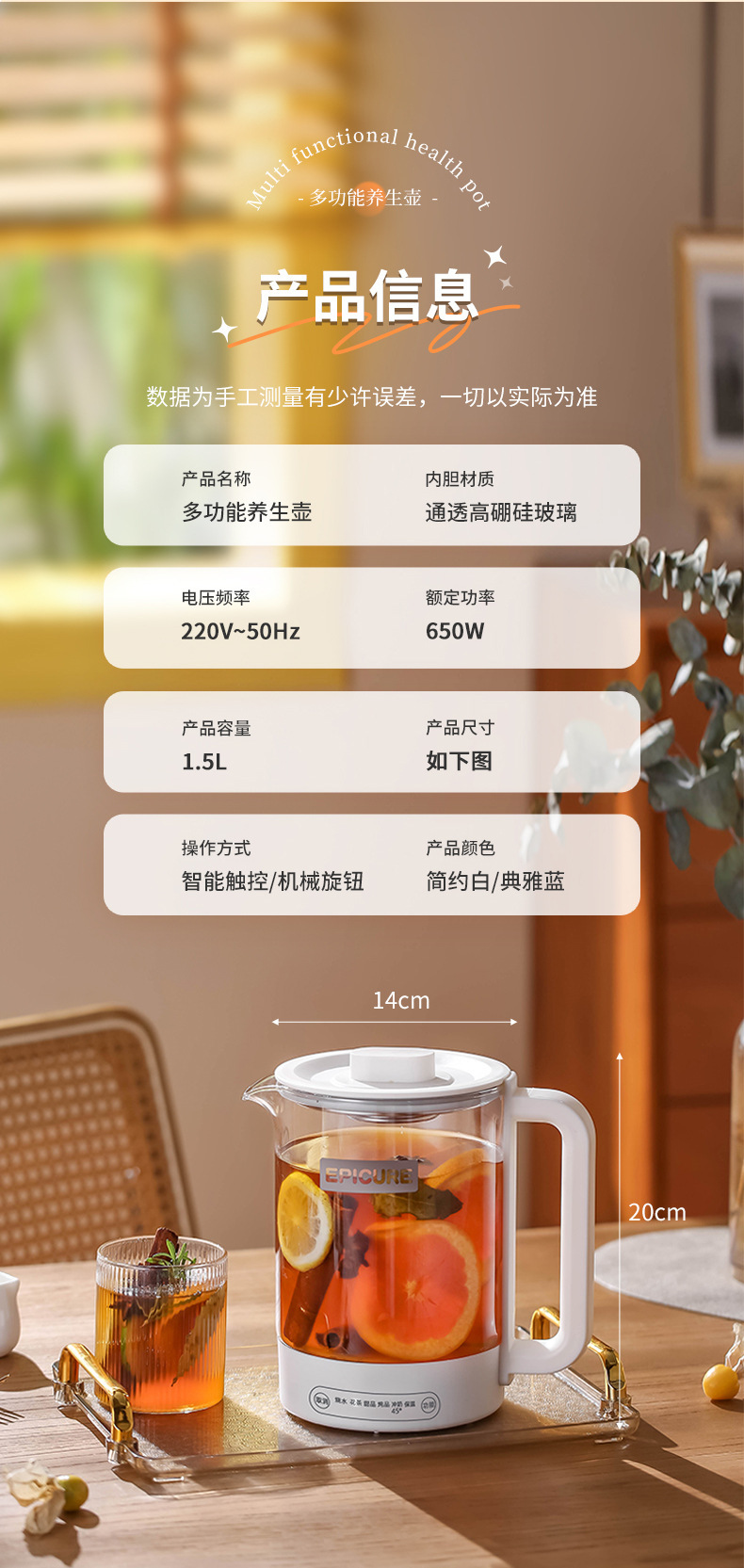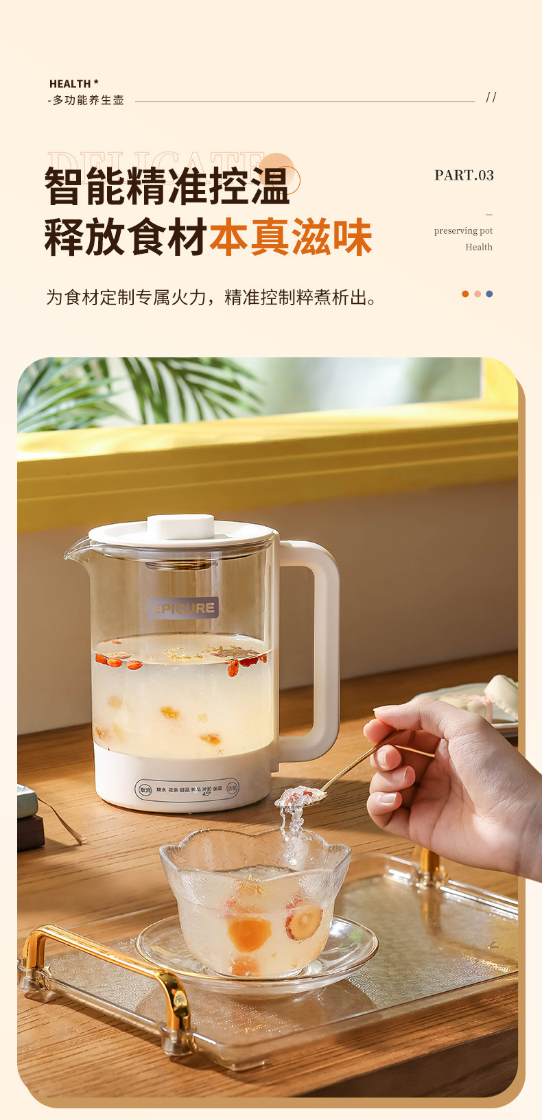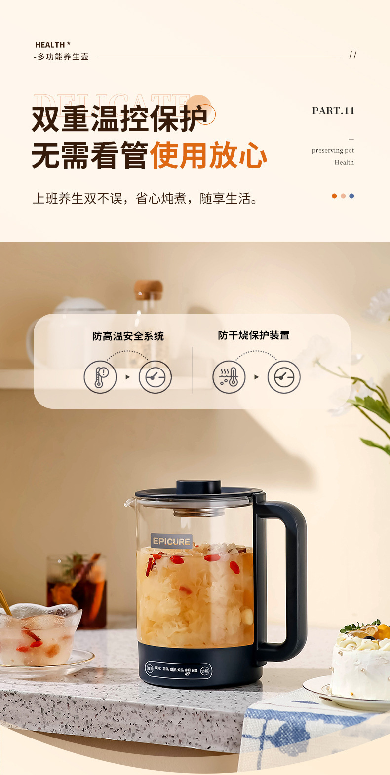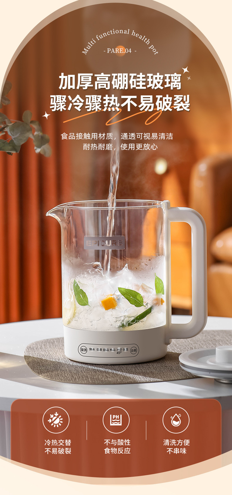 두꺼운 유리 건강 냄비, 보온, 차 및 제비집 요리, 항온 및 보온, 올인원 대용량 간이 주전자