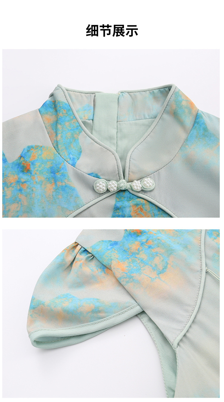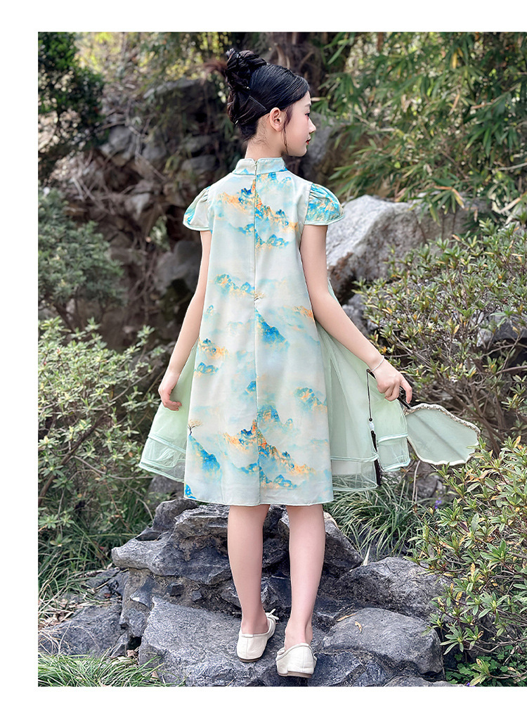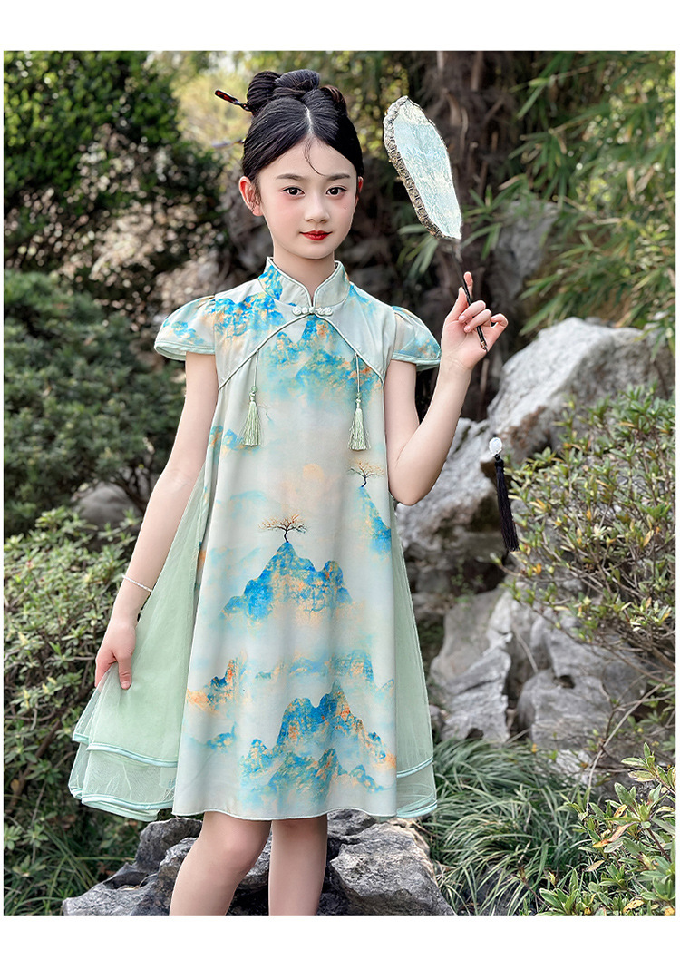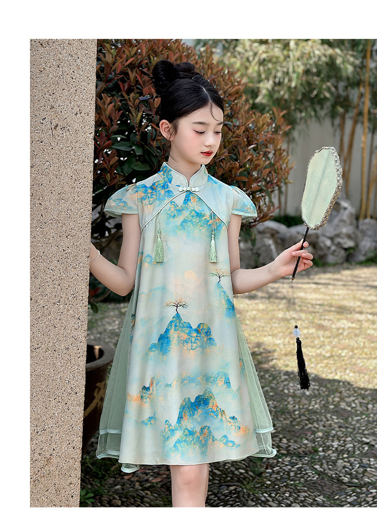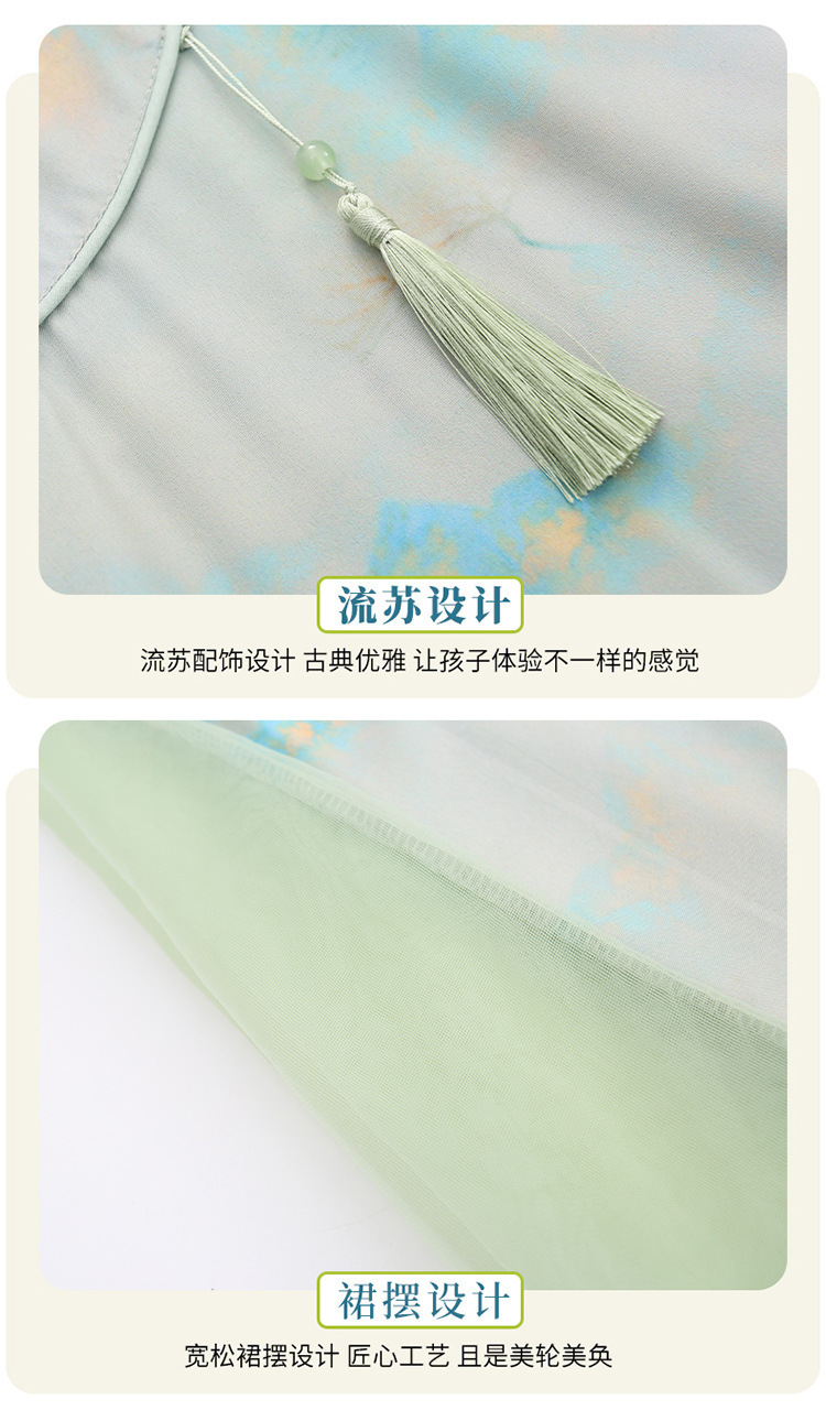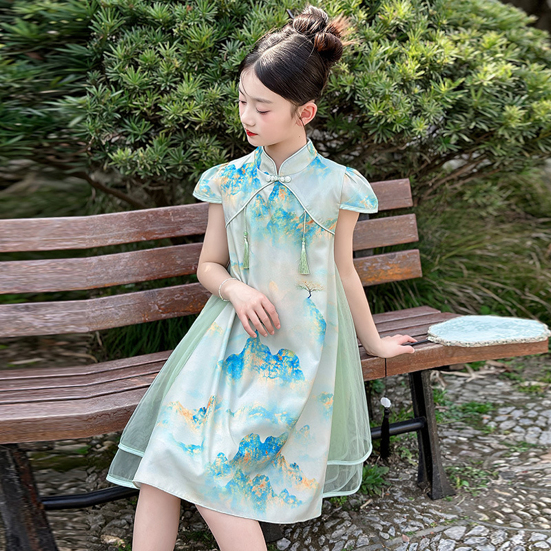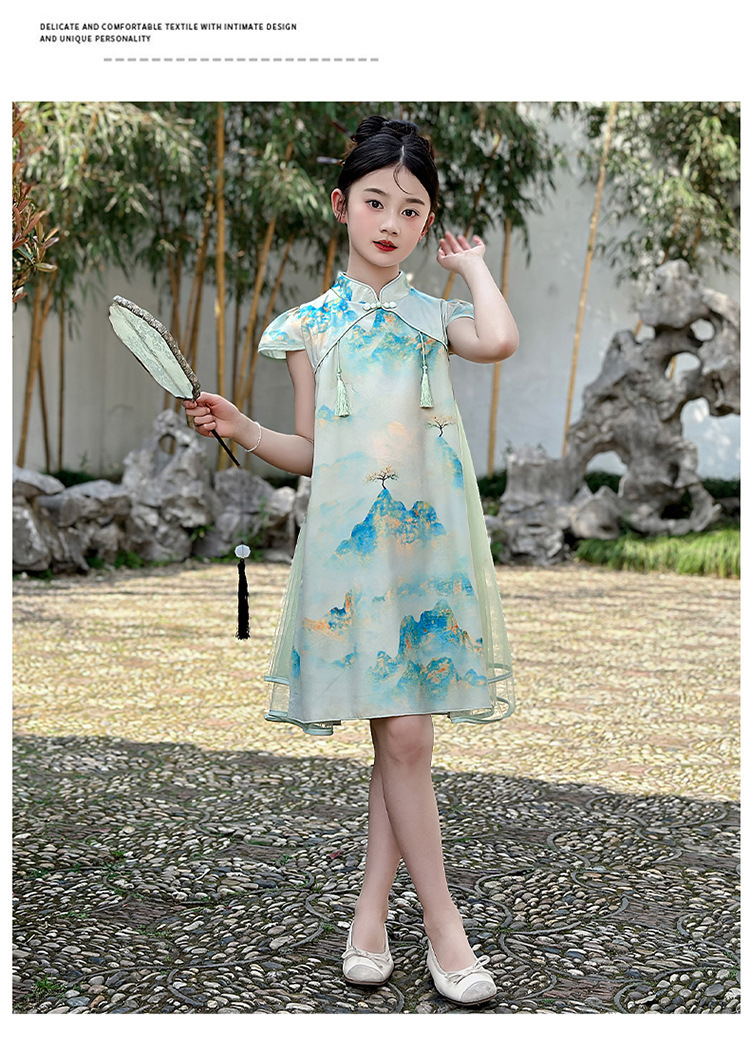 한푸 공주 원피스 베일 원피스 클래식 소녀의 새 스타일 중국 스타일 원피스 소녀의 원피스 여름 원피스 청삼 중국 스타일