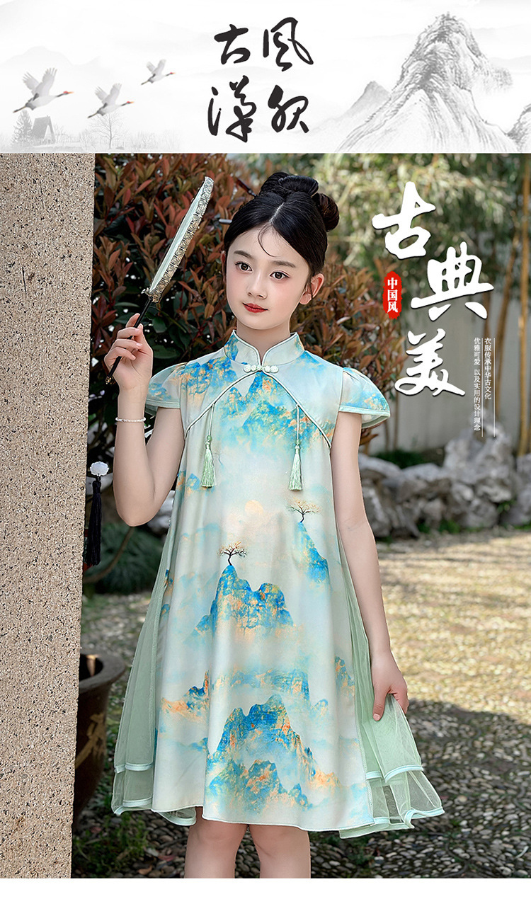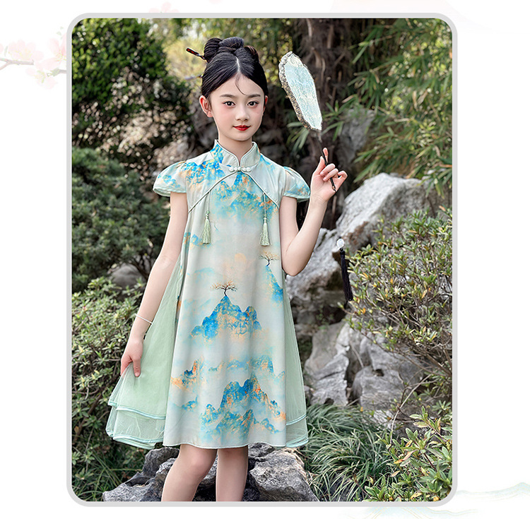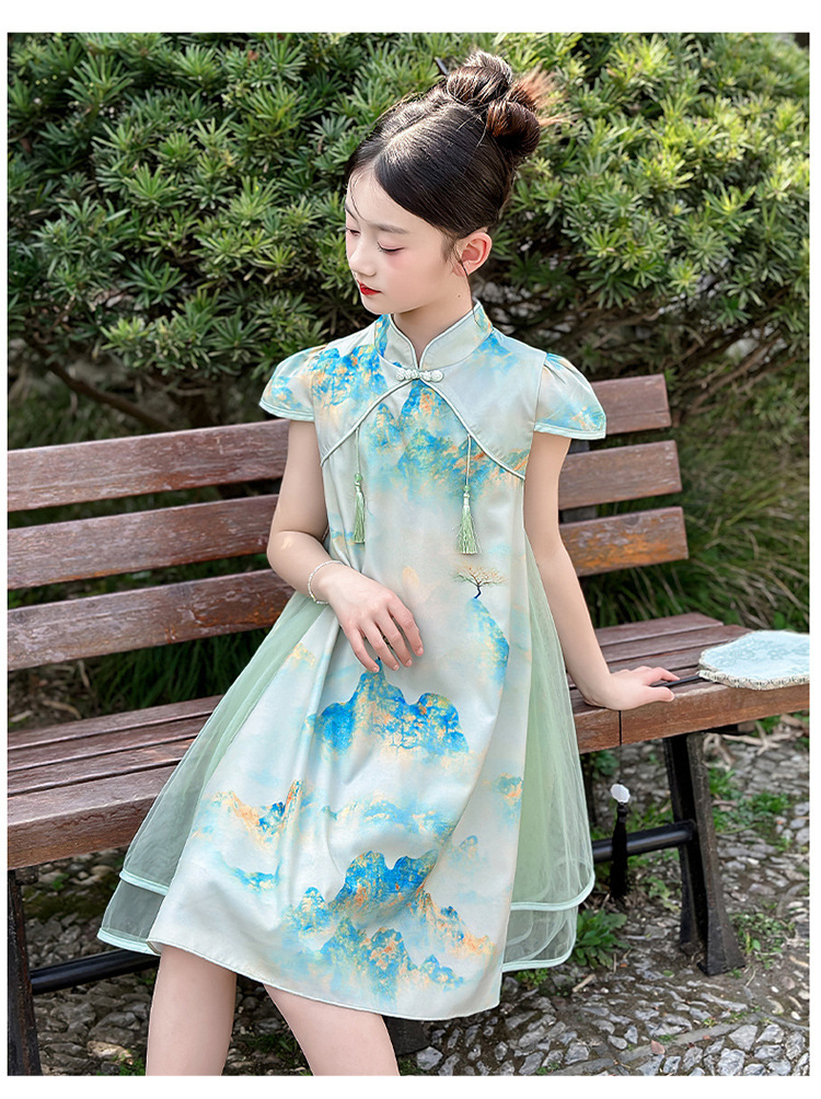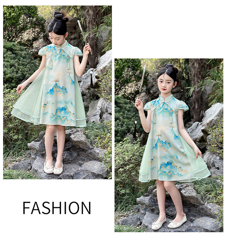 한푸 공주 원피스 베일 원피스 클래식 소녀의 새 스타일 중국 스타일 원피스 소녀의 원피스 여름 원피스 청삼 중국 스타일스토어 가기