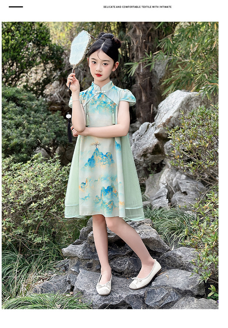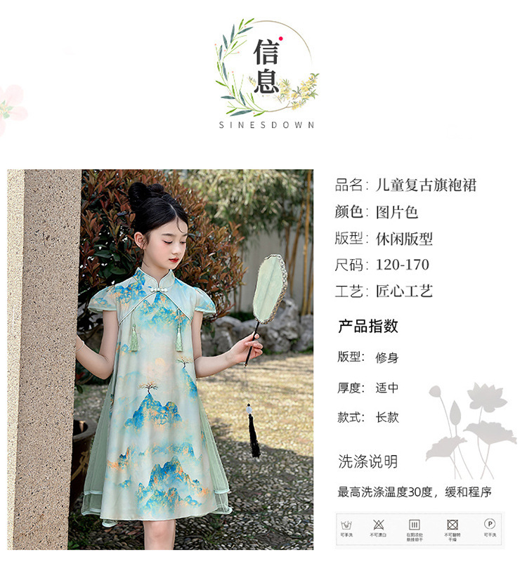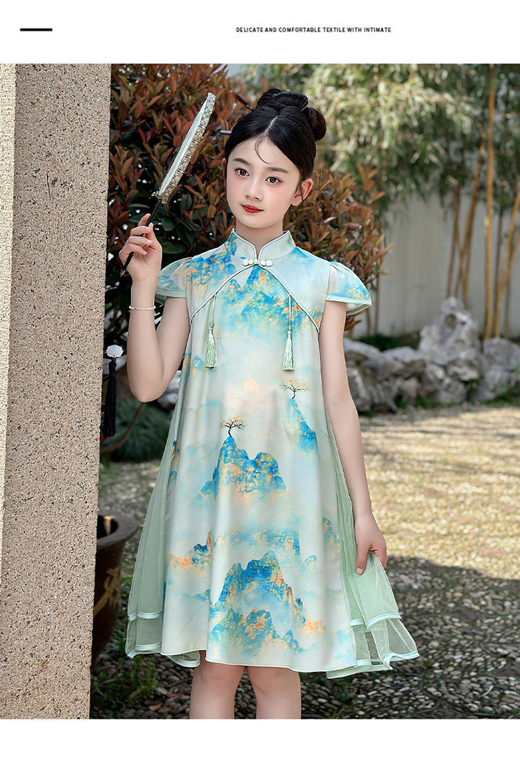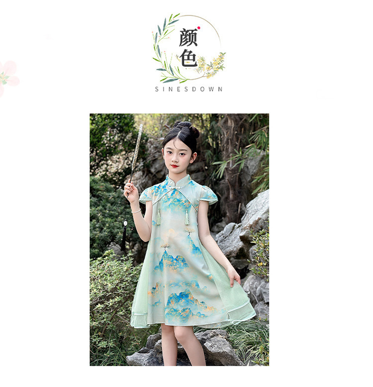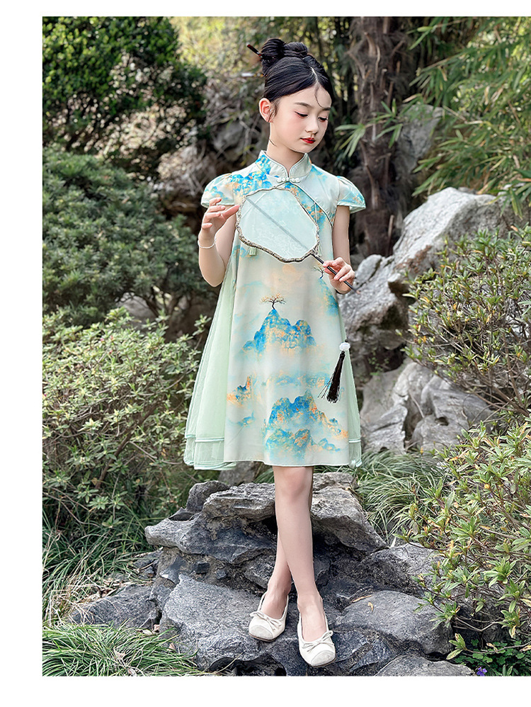 한푸 공주 원피스 베일 원피스 클래식 소녀의 새 스타일 중국 스타일 원피스 소녀의 원피스 여름 원피스 청삼 중국 스타일스토어 가기