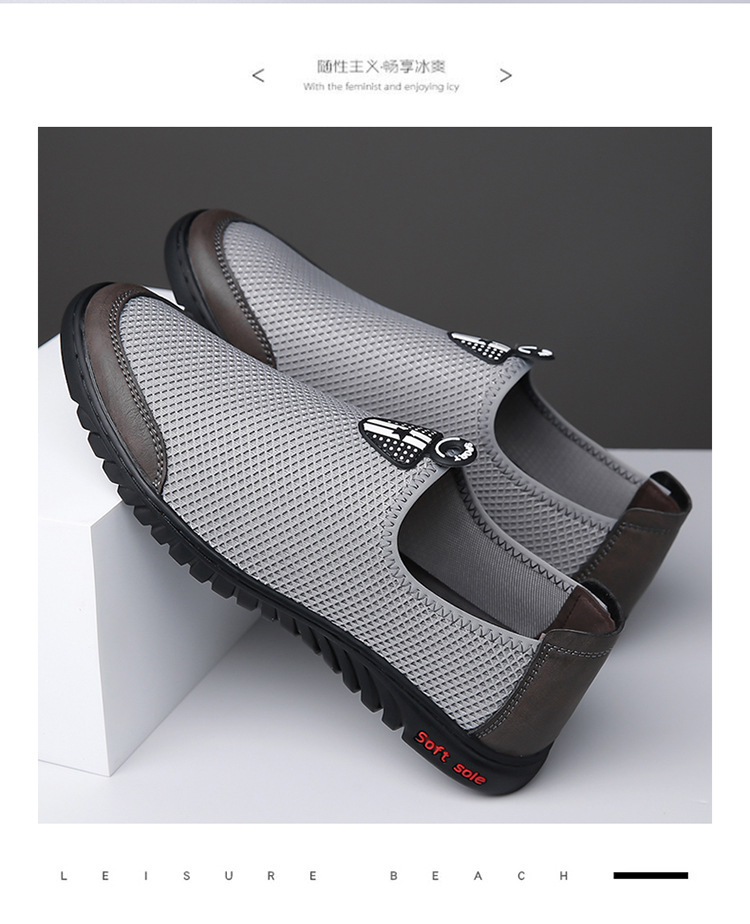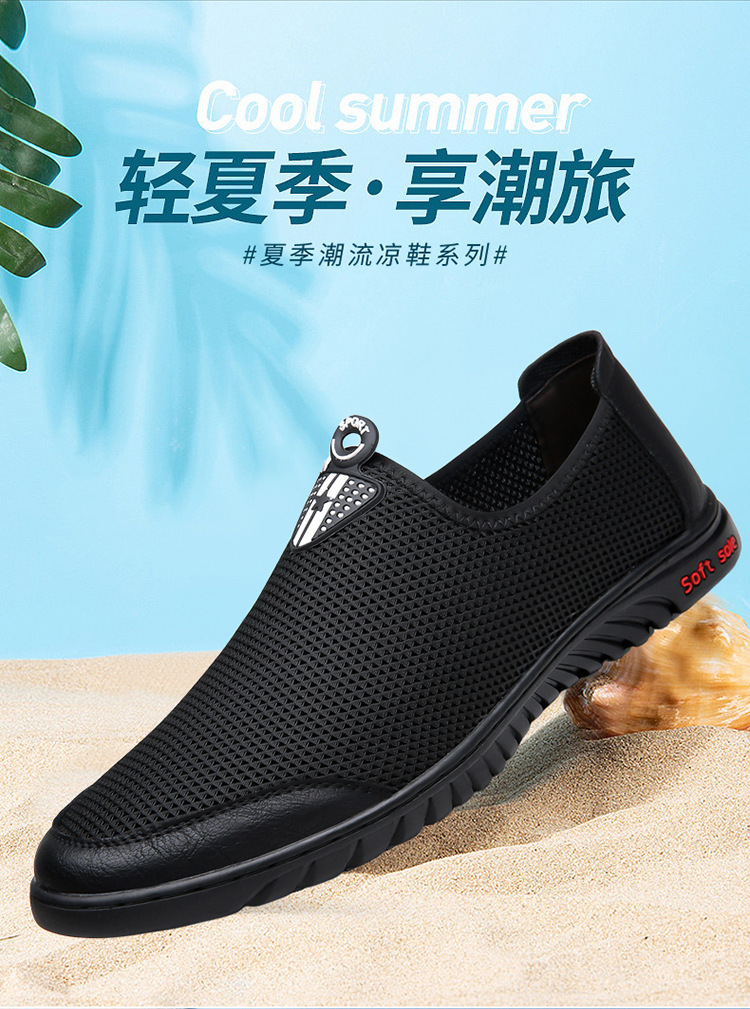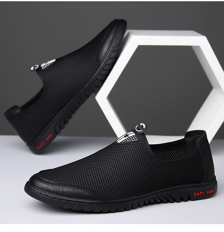 중년 및 노인 파라 신발 2025 새로운 여름 통기성 플라이 짠 메쉬 캐주얼 신발 남성용 부드러운 밑창 미끄럼 방지 운동화스토어 가기