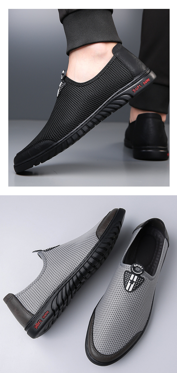 중년 및 노인 파라 신발 2025 새로운 여름 통기성 플라이 짠 메쉬 캐주얼 신발 남성용 부드러운 밑창 미끄럼 방지 운동화