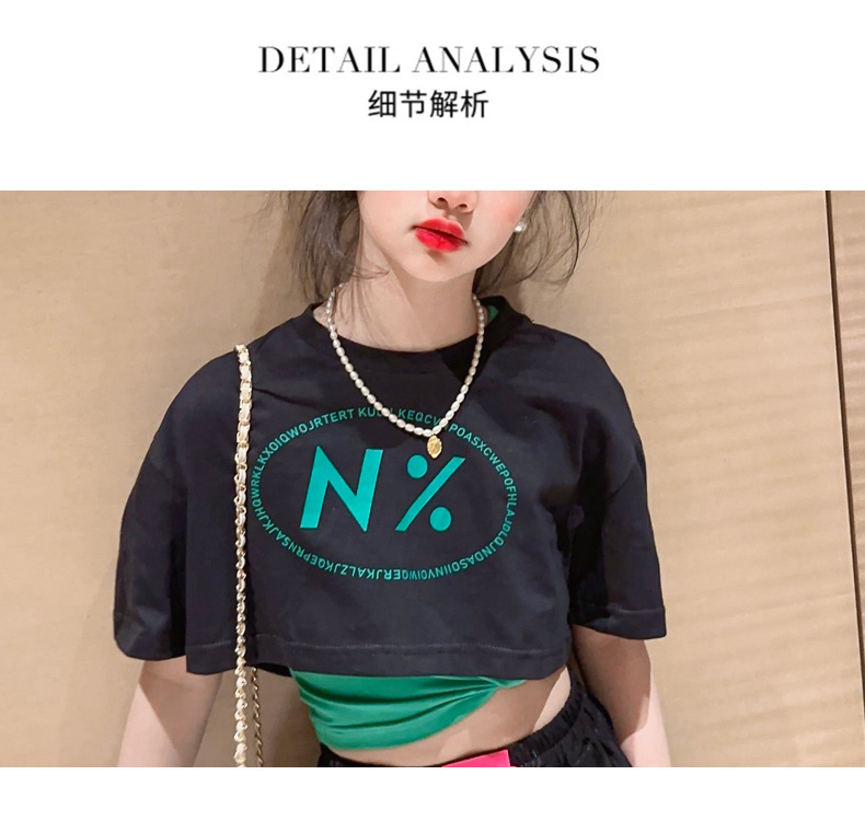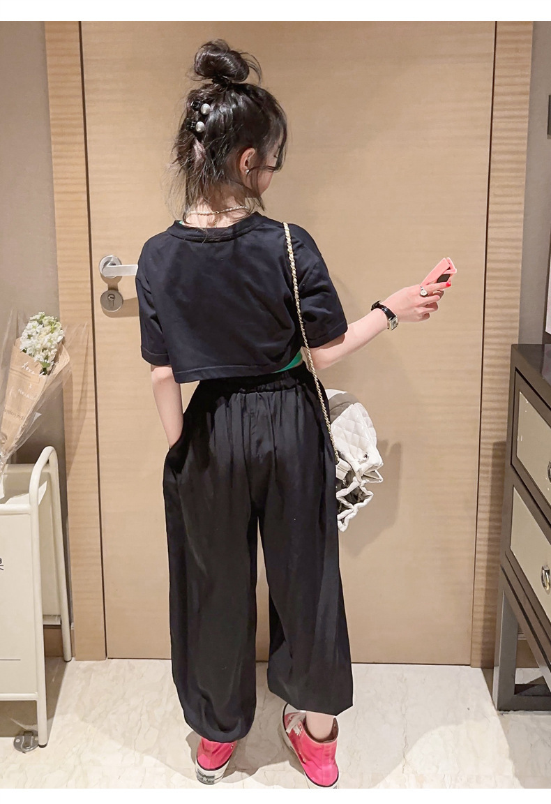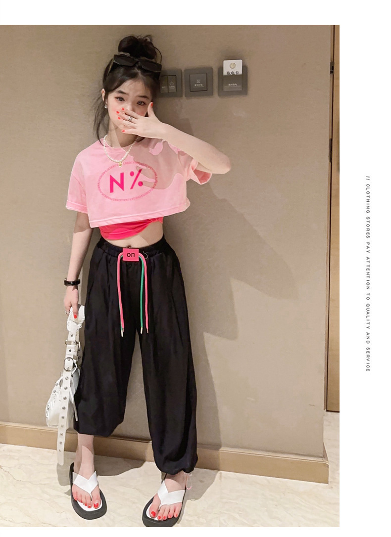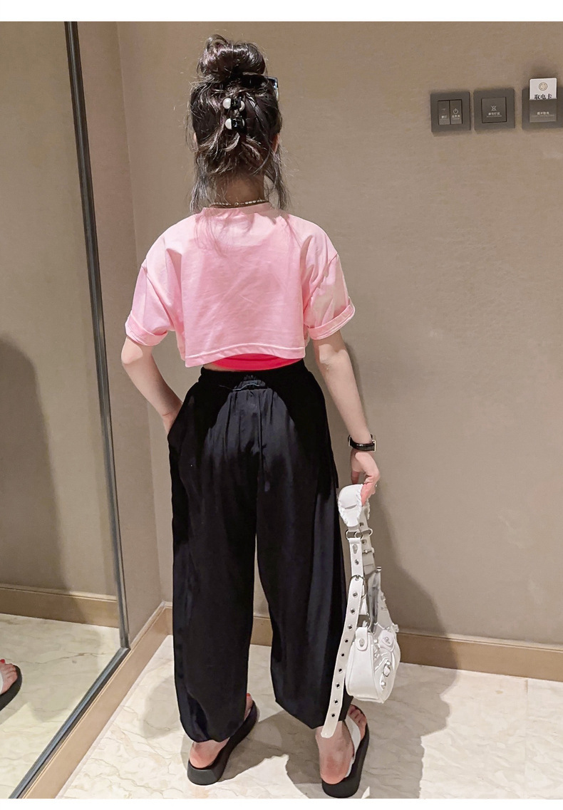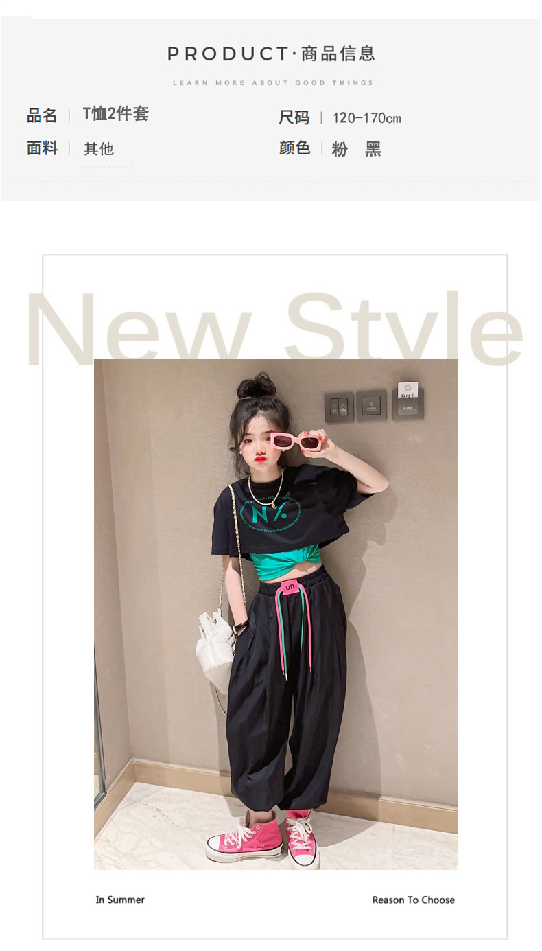 여자 2024 여자 스포츠 세트 트렌디 힙합 트렌디 빅 키즈 세트 아동복 새로운 여름 재고 코튼스토어 가기