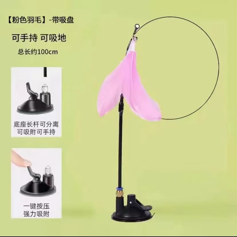 제조업체 고양이 머리 강력한 빨판 고양이 놀리는 스틱 다채로운 깃털 와이어 긴 막대 내구성 벨 고양이 자기 즐거움 장난감스토어 가기