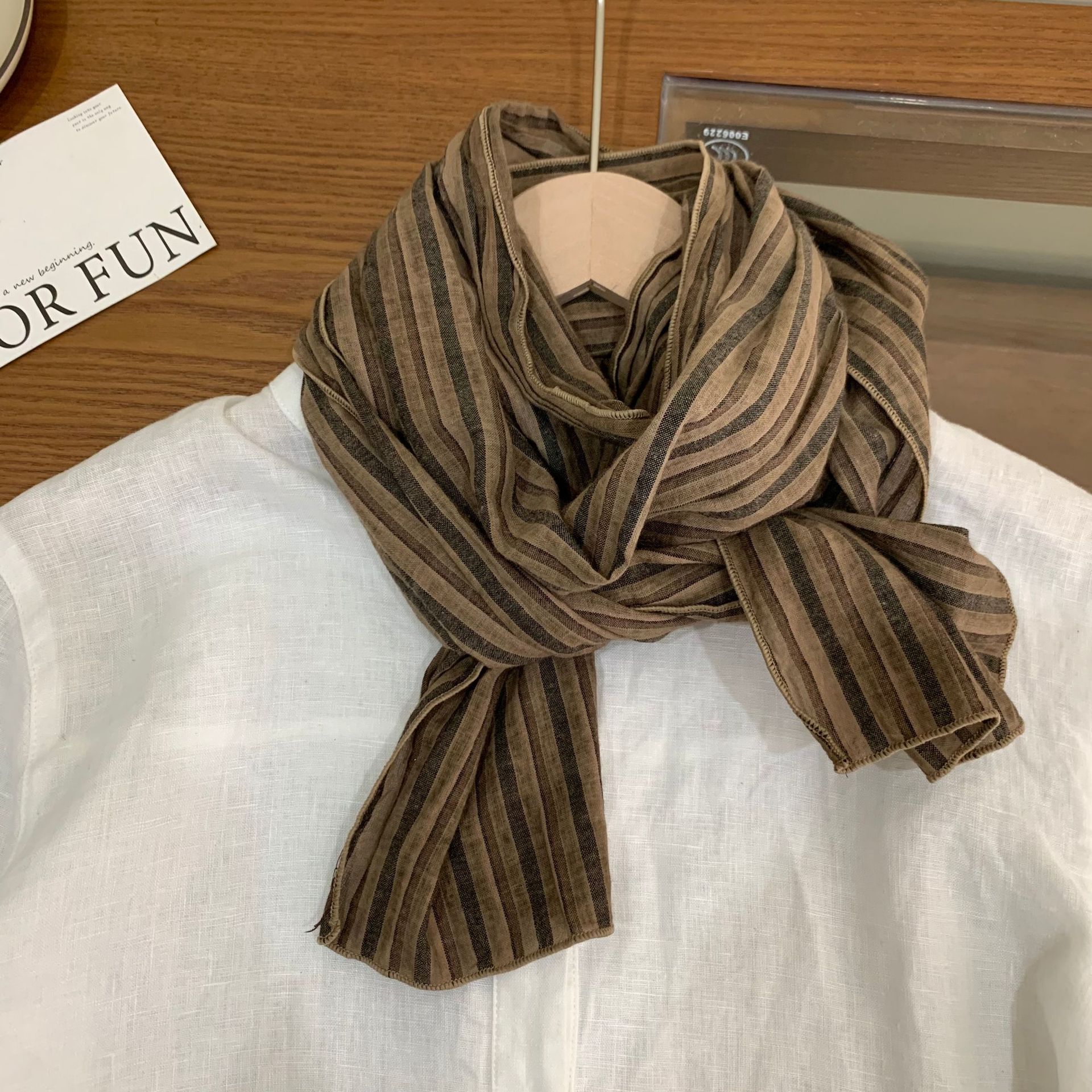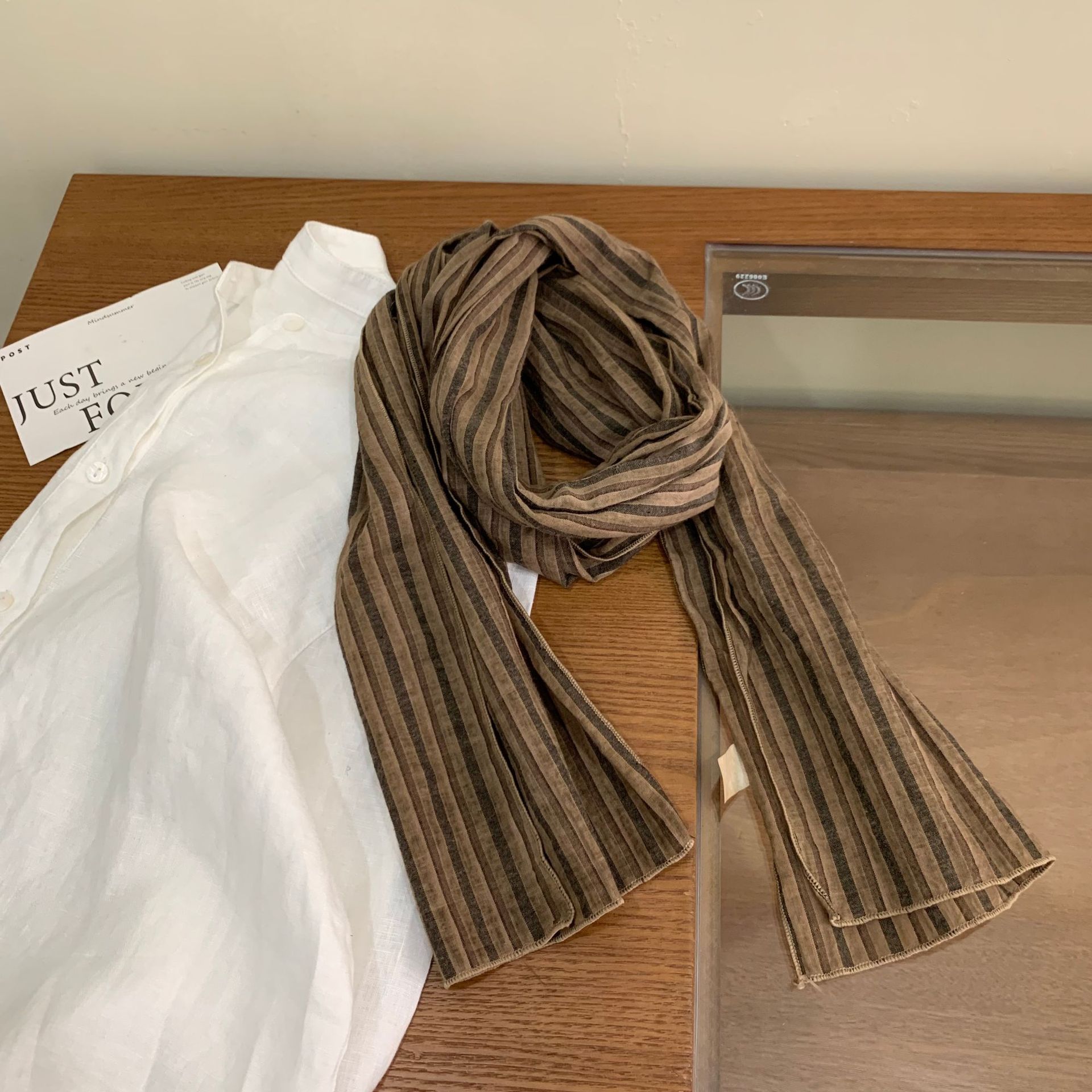 빈티지 레드 커피 체크 무늬 코튼 좁은 스카프 여성의 봄과 여름 얇은 예술적 올매치 긴 목 보호 장식 실크 스카프 남성용