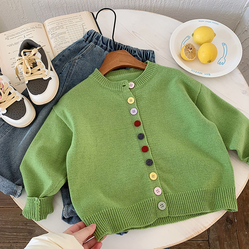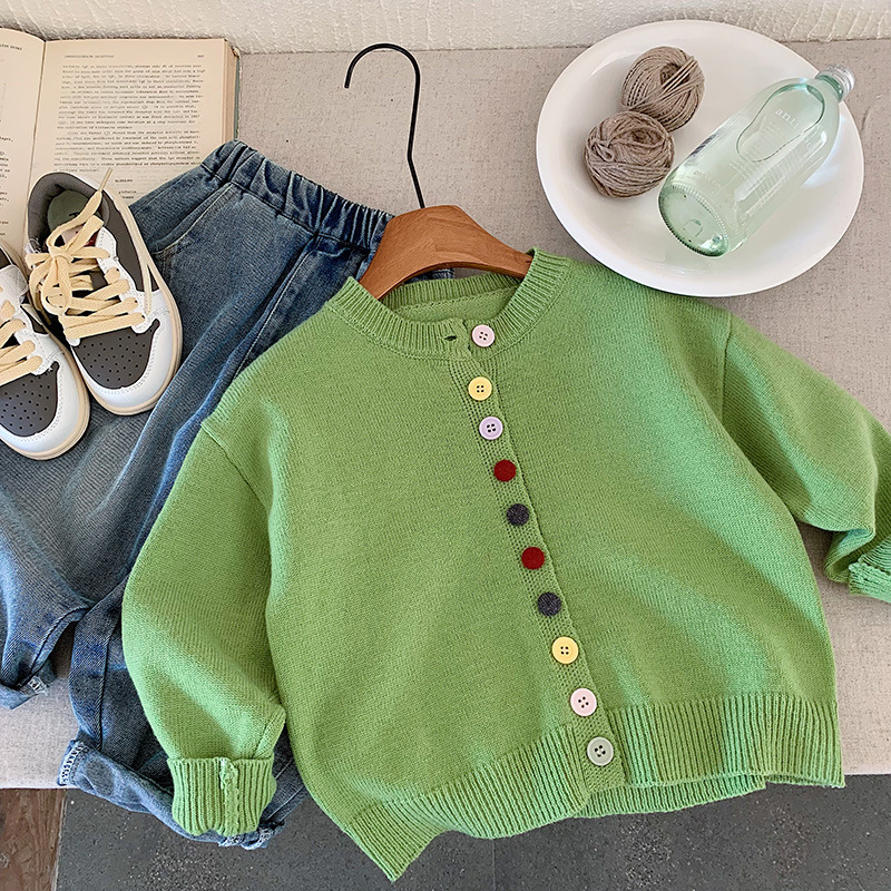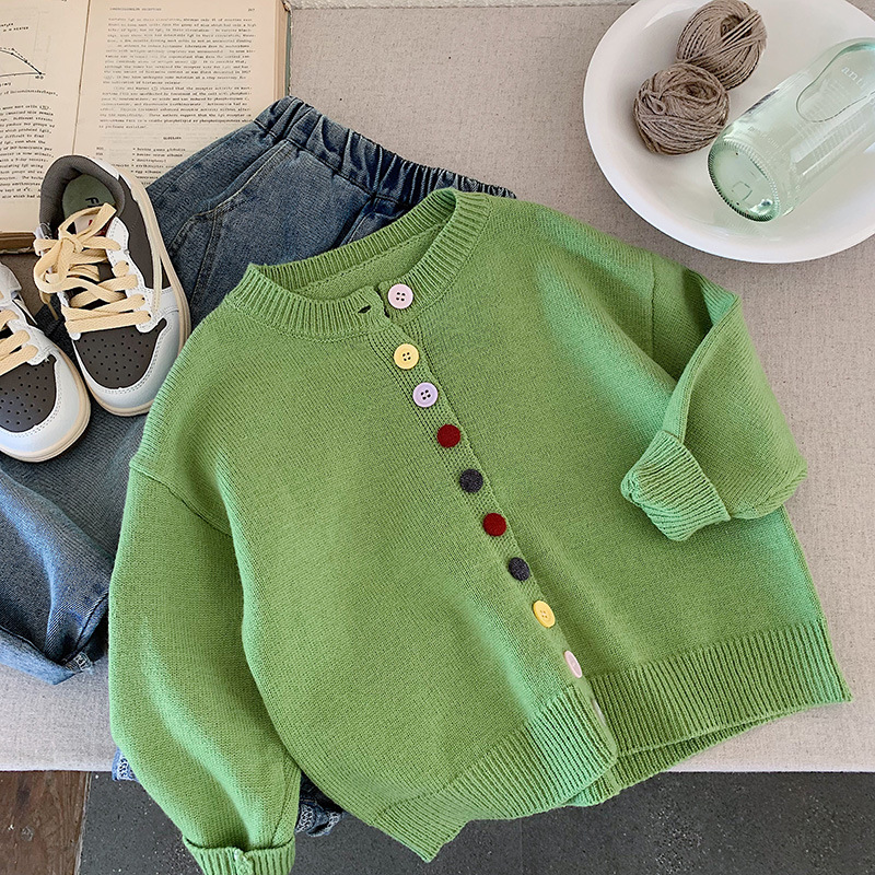 어린이 봄 스웨터 2025 새로운 패션 니트 어린이 의류 소년 한국 라운드 넥 카디건 탑 트렌디 팬스토어 가기