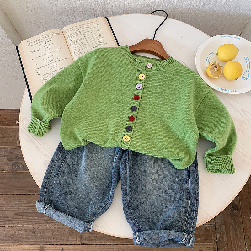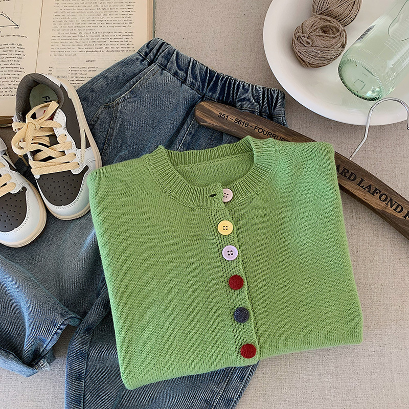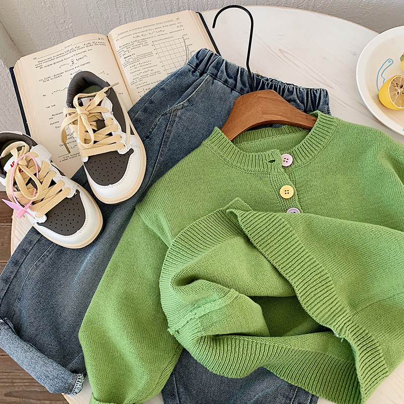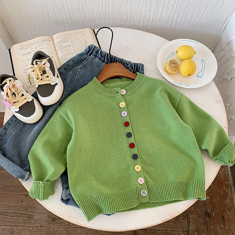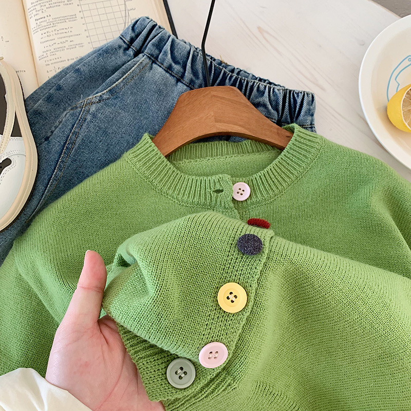 어린이 봄 스웨터 2025 새로운 패션 니트 어린이 의류 소년 한국 라운드 넥 카디건 탑 트렌디 팬