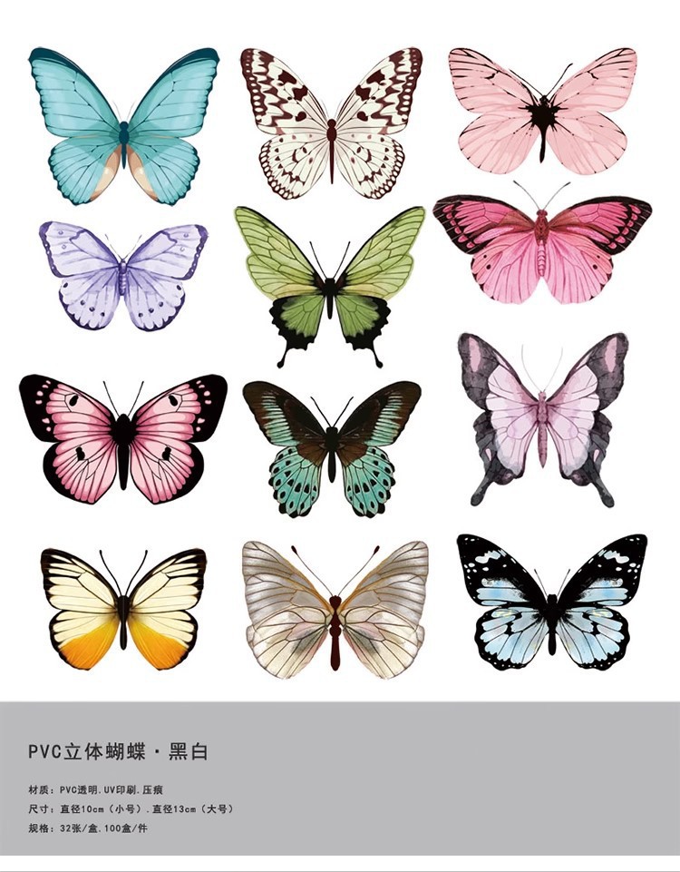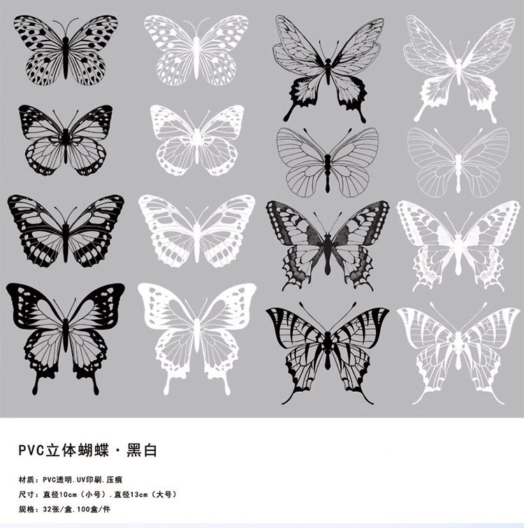3D 입체 PVC 나비 Xiaohongshu 같은 스타일 펠트 보드 나비 벽 액세서리 얼굴 메이크업 스티커 사진 소품스토어 가기