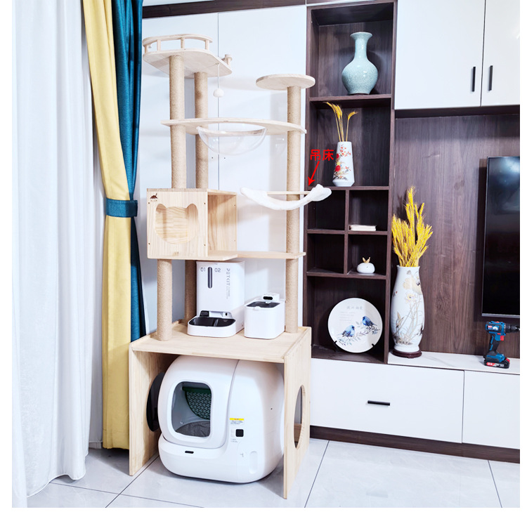 Hexin 브랜드 고양이 쓰레기통 화장실 캐비닛 MAX2는 대형 단단한 나무 고양이 클라이밍 프레임을위한 상단 보관 랙을 갖추고 있습니다.스토어 가기