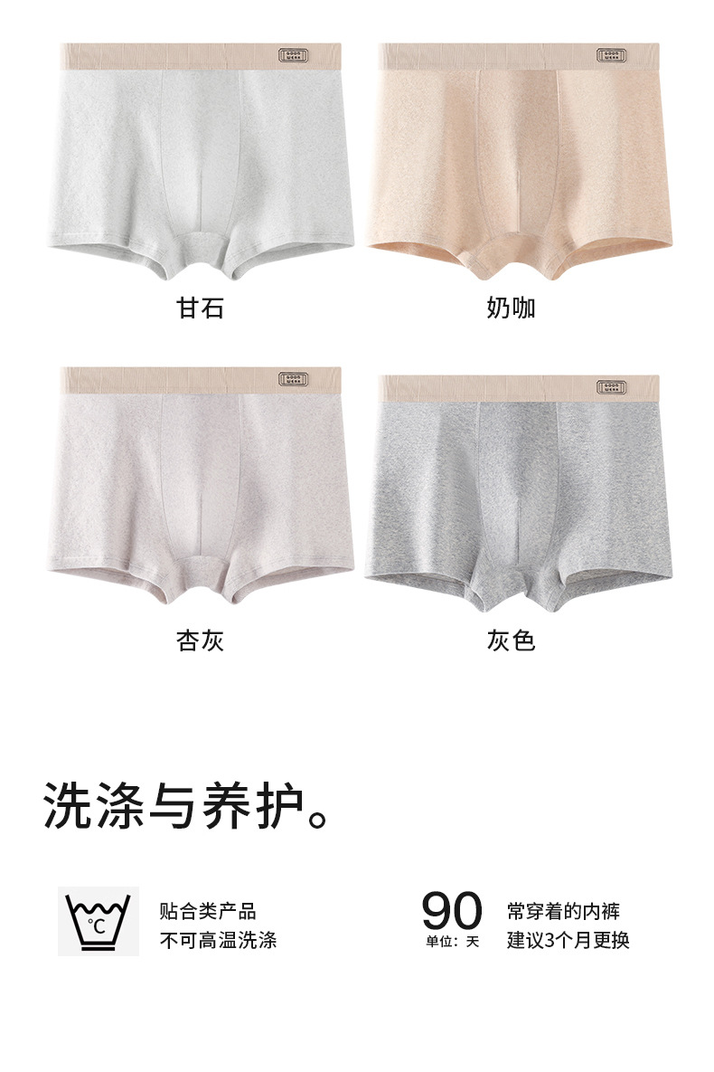 【4개입】순면 남성 사각팬티, 중간 허리, 통기성 좋고 편안한, 청소년용 사각팬티, 남성용 속옷스토어 가기