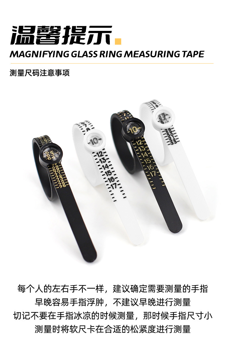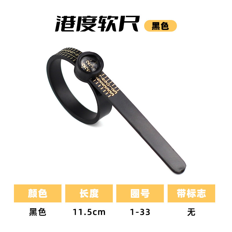 • 거울이 달린 홍콩 반지 측정 링(검은색)