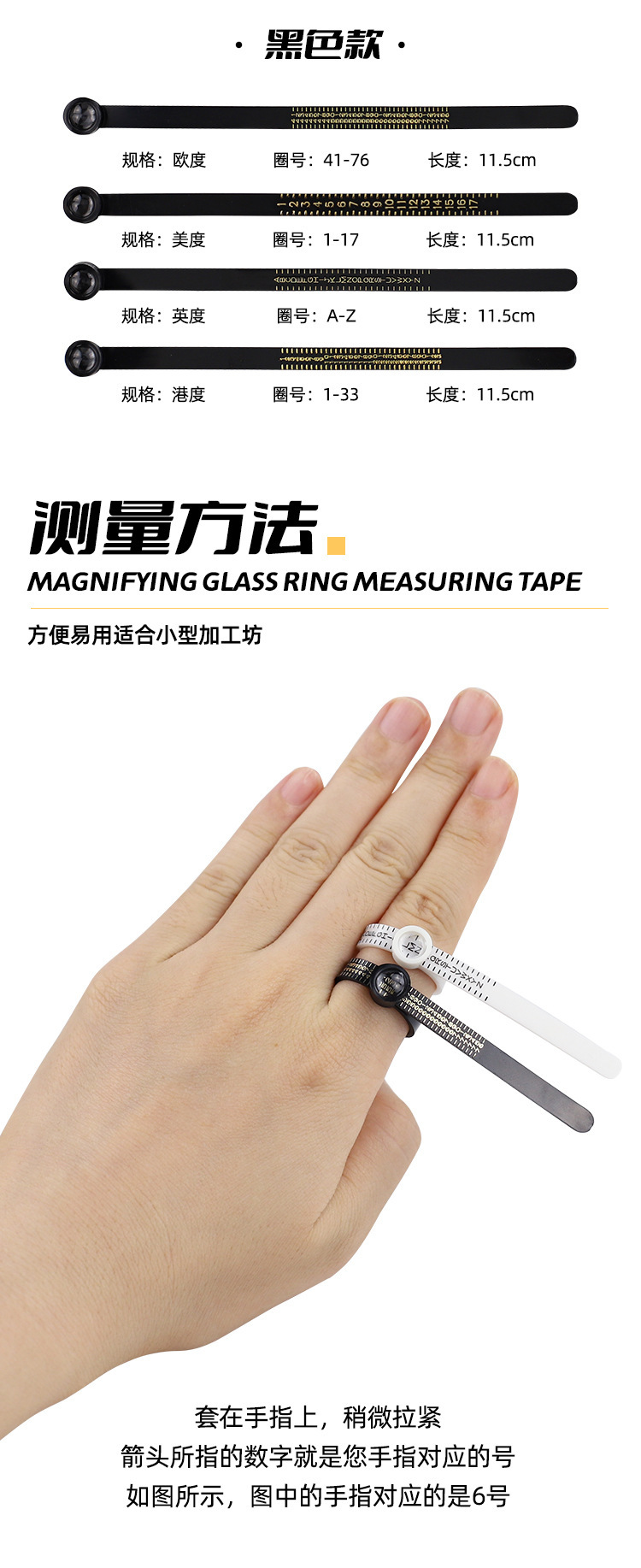 • 거울이 달린 영국식 반지 측정 링(검은색)