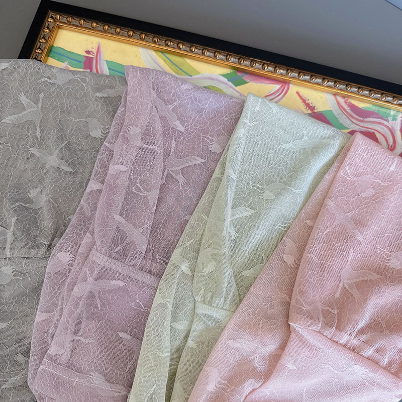 材质是冰感蕾丝,有弹性,宽松、透气、不闷热,上乘品。