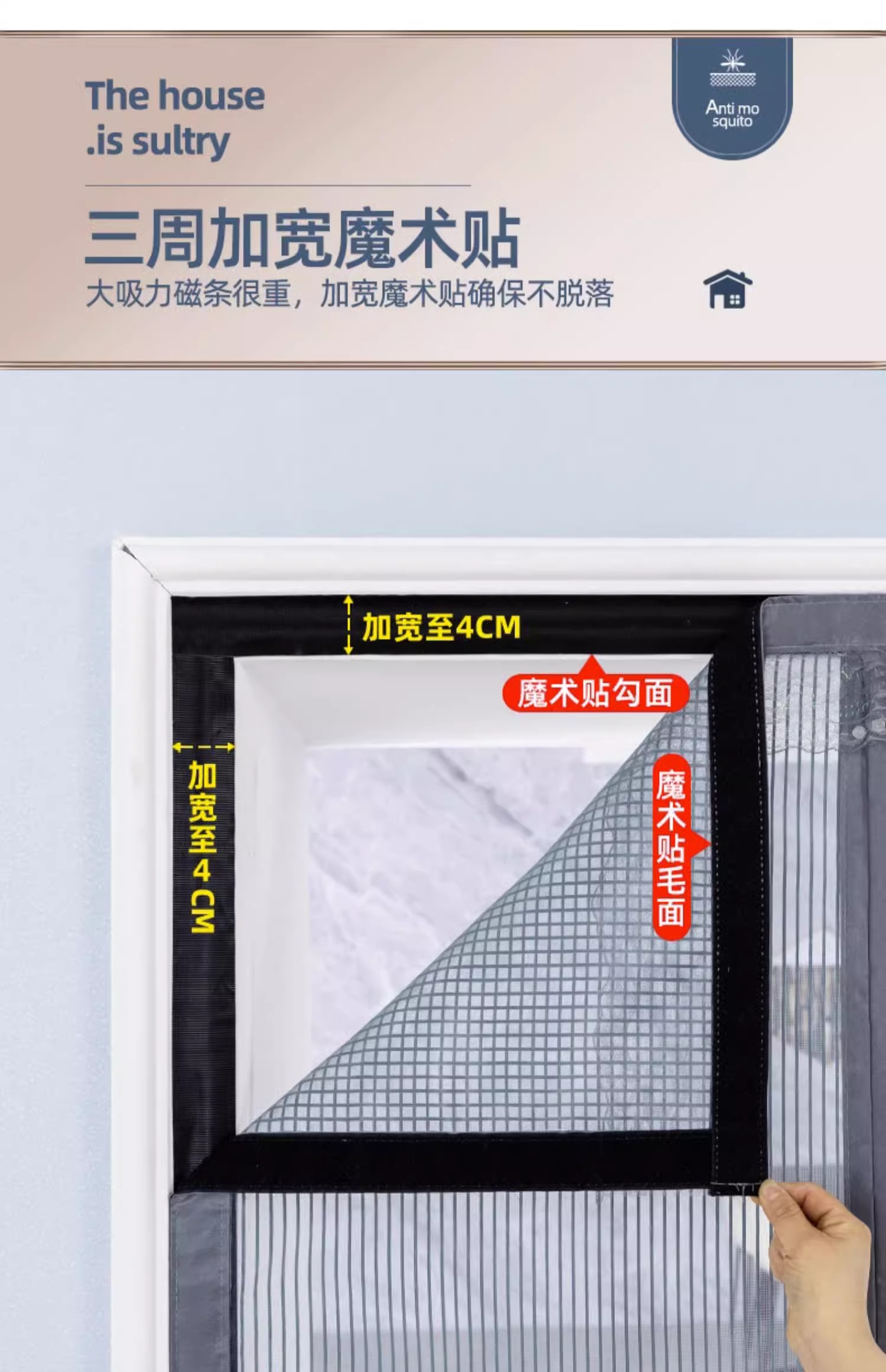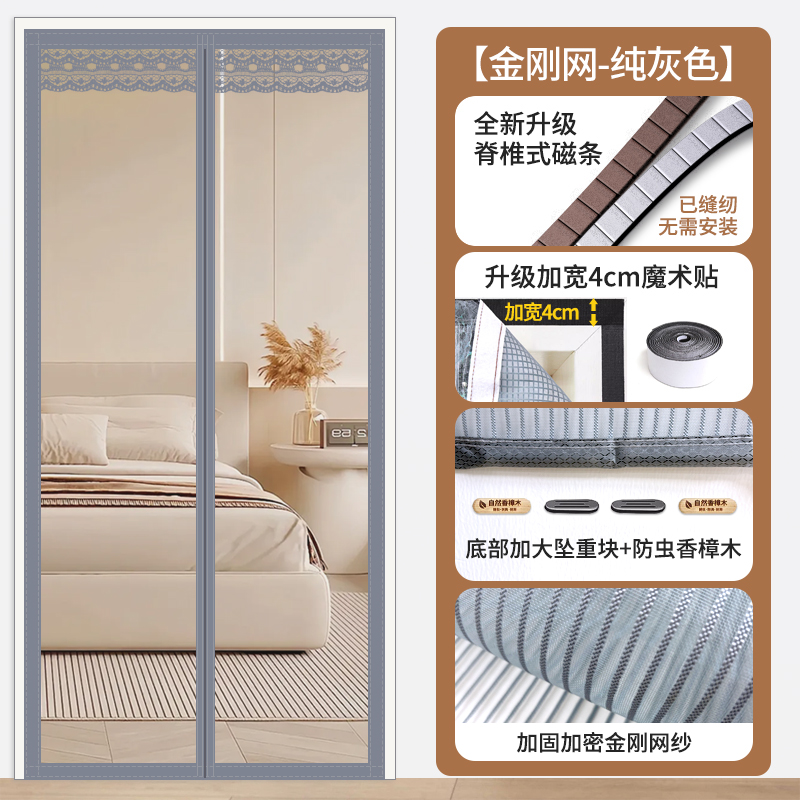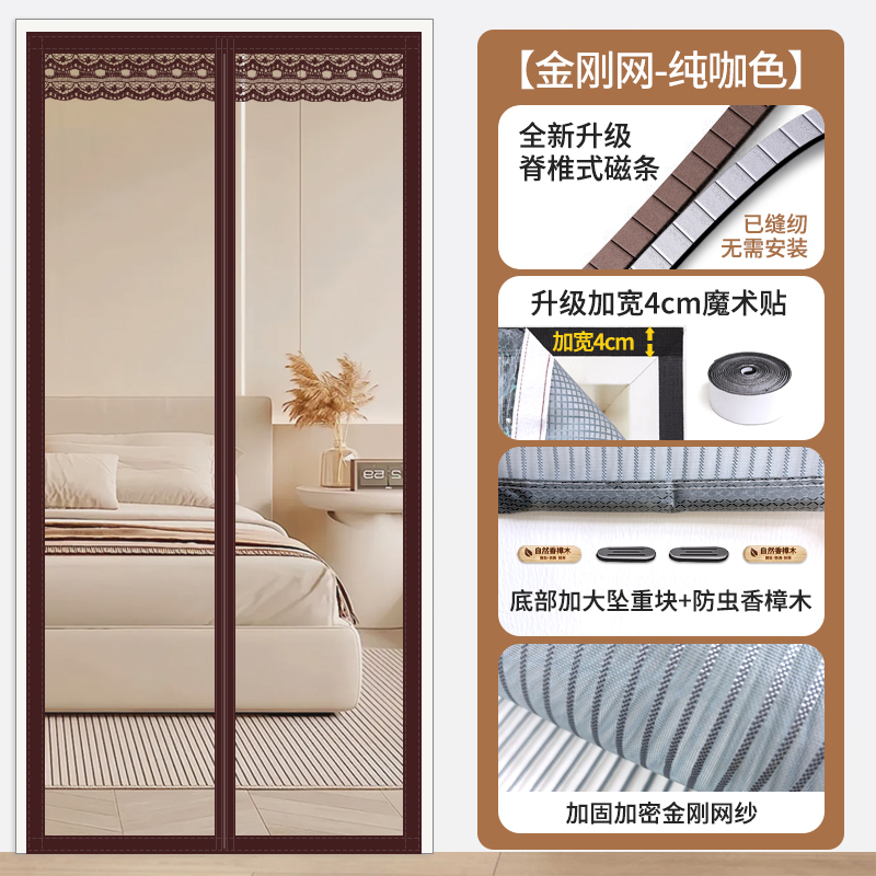 KT 다이아몬드 메쉬 완전 자기 스트립 모기 방지 도어 커튼 벨크로 홈 도어 자기 침실 파티션 커튼 펀치없는 스크린 도어스토어 가기