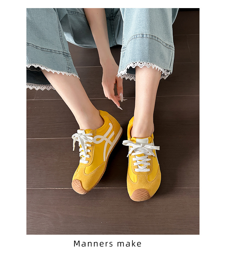 2025 Chunwang Yibo 동일 스타일 독일 훈련 신발 여성 정품 가죽 캐주얼 운동화 높이 증가 화이트 신발 포레스트 검프 신발스토어 가기