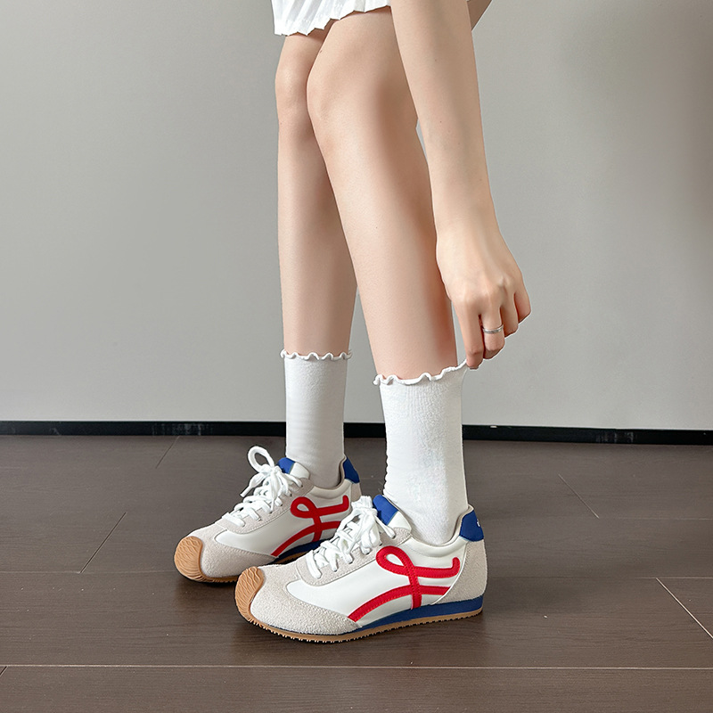 2025 Chunwang Yibo 동일 스타일 독일 훈련 신발 여성 정품 가죽 캐주얼 운동화 높이 증가 화이트 신발 포레스트 검프 신발