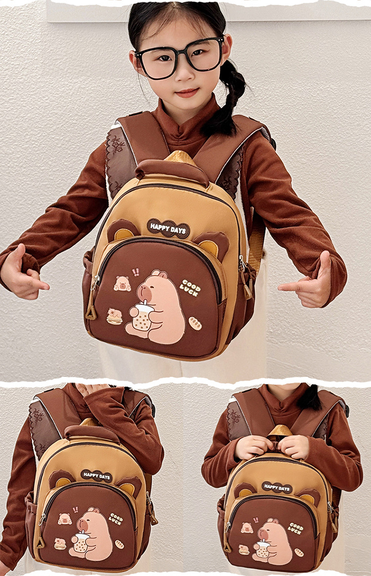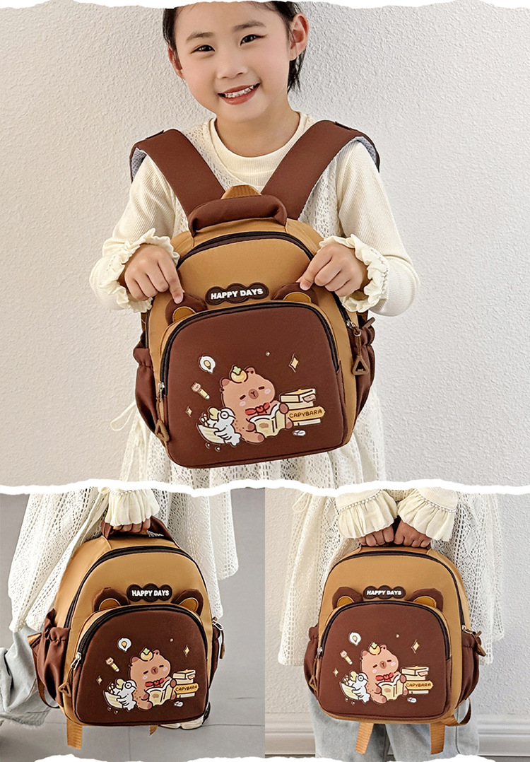 귀여운 Carto Kapibala Capybara 배낭 유치원 어린이 릿지 보호 배낭 초등학생 대용량 Schoolbag